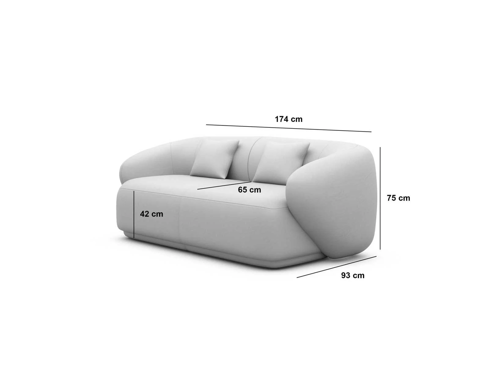 Materiaal Vulling: Schuimdichtheid 30 kg/m³ Structuur: FCS-gecertificeerd massief vurenhout, spaanplaat, vezelplaat met hoge dichtheid (MDF) Poten: Kunststof Laadvermogen Draagvermogen: 150 kg per element Lengte: 174 cm Breedte: 93 cm Hoogte: 75 cm Zithoogte: 42 cm Diepte zitting: 65 cm Non