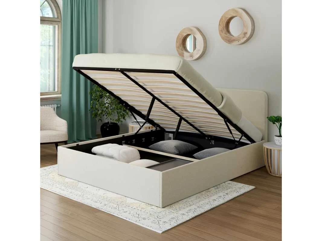 Kenmerken Algemene afmetingen: (L) 201 x (B) 145,5 x (H) 89 cm Materialen: MDF en badstof bekleding Kleur: Crème Wit Overige informatie: Afmetingen hoofdeinde: (L) 145,50 x (B) 7 x (H) 89 cm Hoogte poot: 1,5 cm Standaardafmetingen voor een 2-zitsmatras van 140 x 190 cm Non