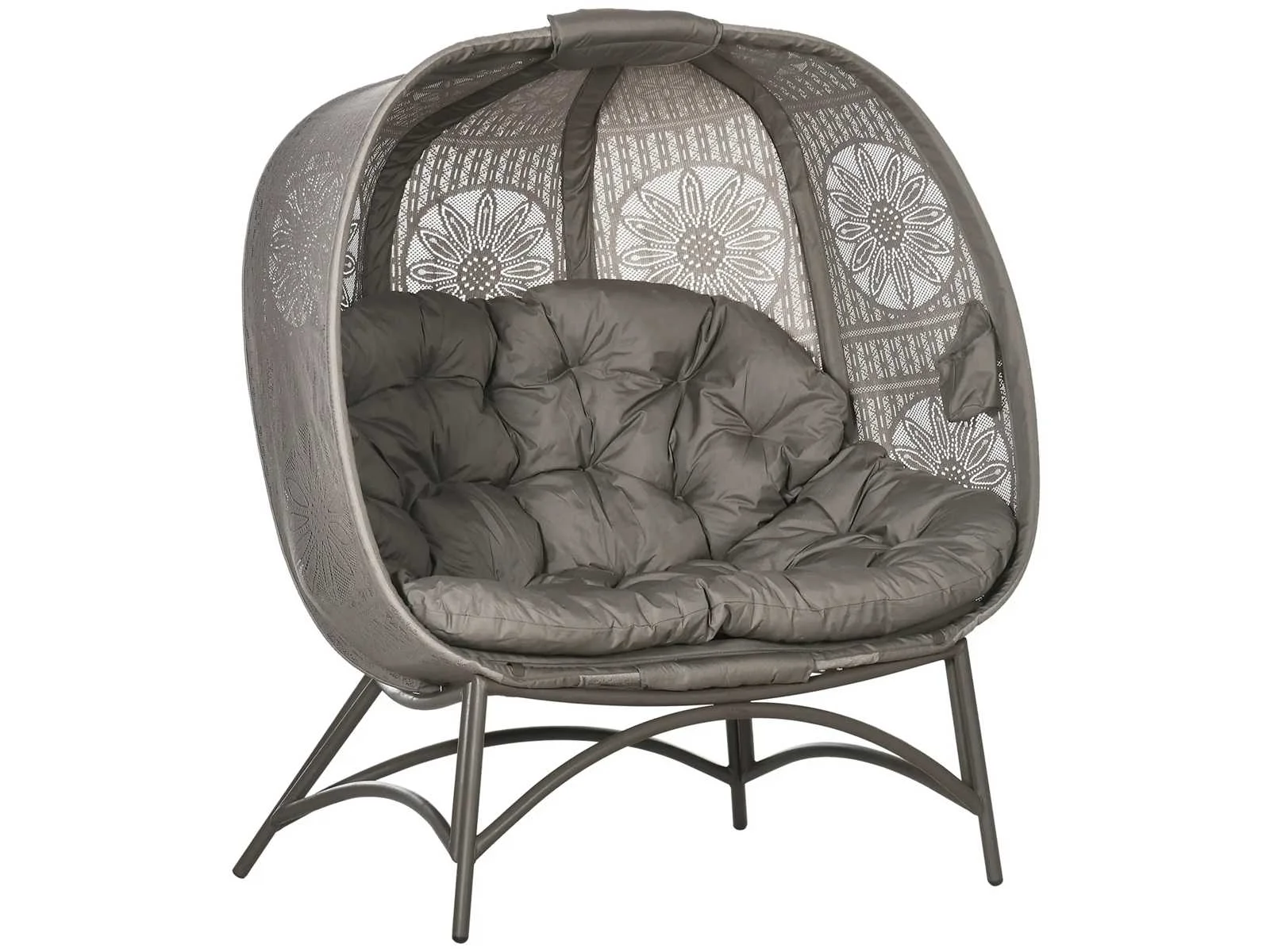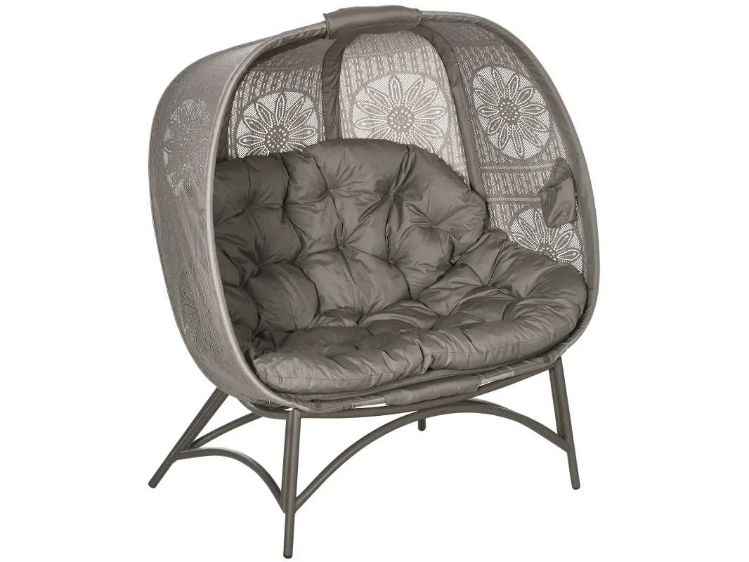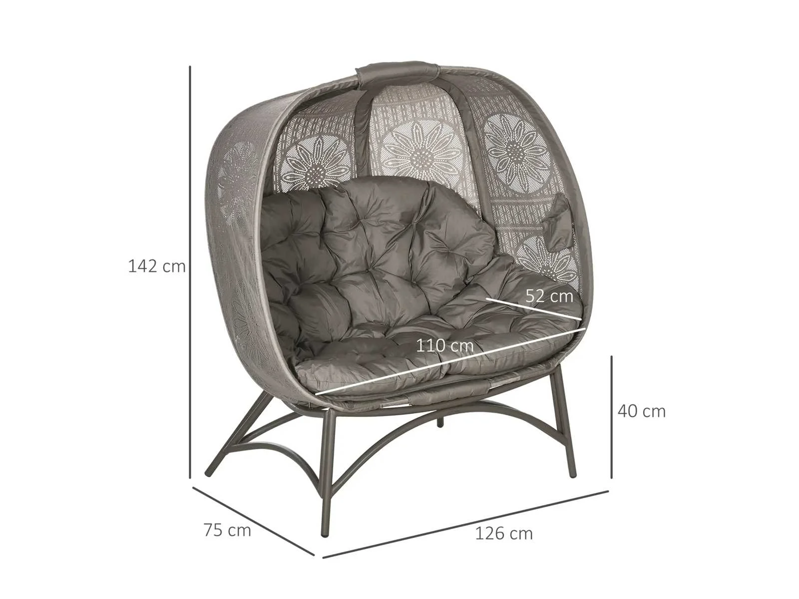 - Strakke, ronde zitmand voor binnen en beschut buiten - Royale ruimte voor twee volwassenen - Groot zitkussen dat de hele zitting vult - Stoelmand kan indien nodig eenvoudig worden opgevouwen - Gepoedercoat stalen frame voor stabiliteit - Praktische bekerhouders aan de zijkanten - Vier heavy-duty poten voor een veilige grip - Montage vereist Specificaties: - Kleur: Zand - Materialen: staal, polyester, PP - Totale afmetingen: 126L x 75B x 142H cm - Afmetingen zitting: 110W x 52D x 40H cm - Afmetingen rugleuning: 110B x 98H cm - Afmetingen zitmand: 126L x 66B x 106H cm (uitgevouwen), 106L x 67B x 20H cm (opgevouwen) - Afmetingen van de kussens (zitting): 98L x 47B x 3H cm - Afmetingen van de kussens (rugleuning + zitting): 123L x 113B x 13H cm - Draagvermogen: 240 kg Non