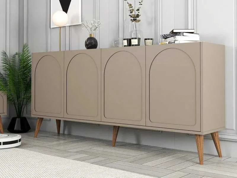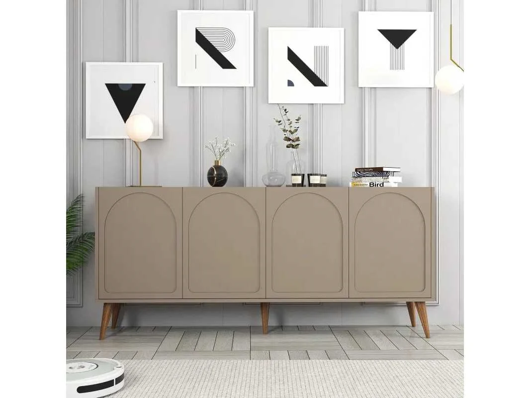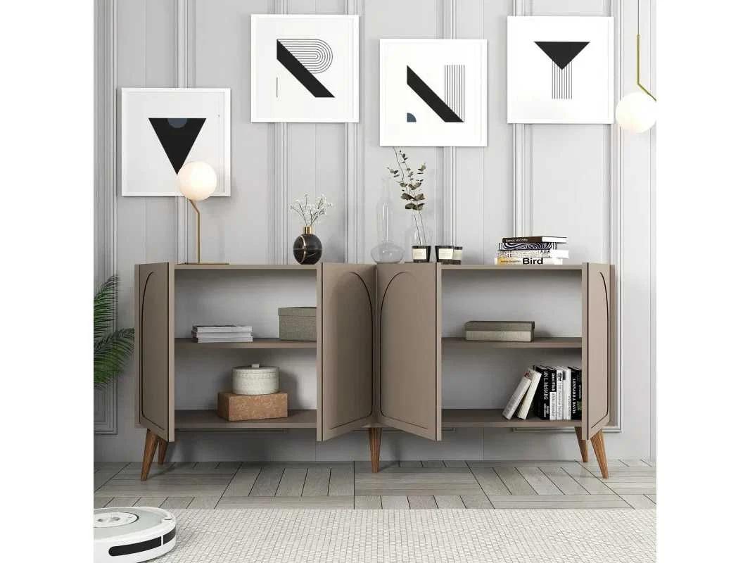 Materiaal: 100% melamine spaanplaat. De dikte van het paneel is 18 mm. De afmetingen van dit meubel zijn 180 cm breed, 81 cm hoog en 35 cm diep. Non