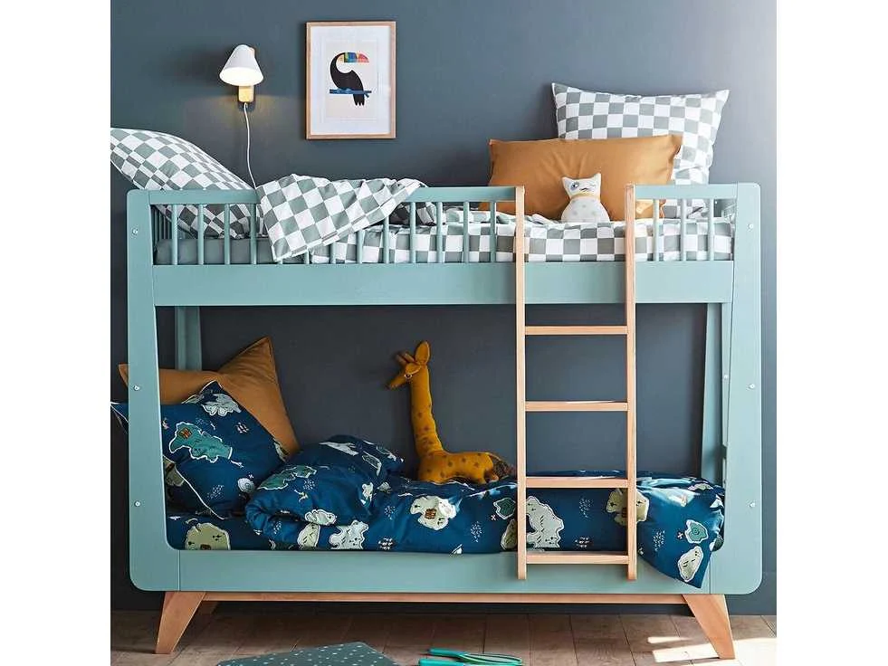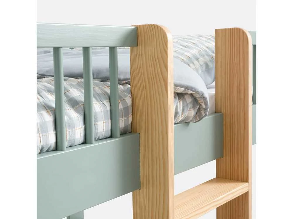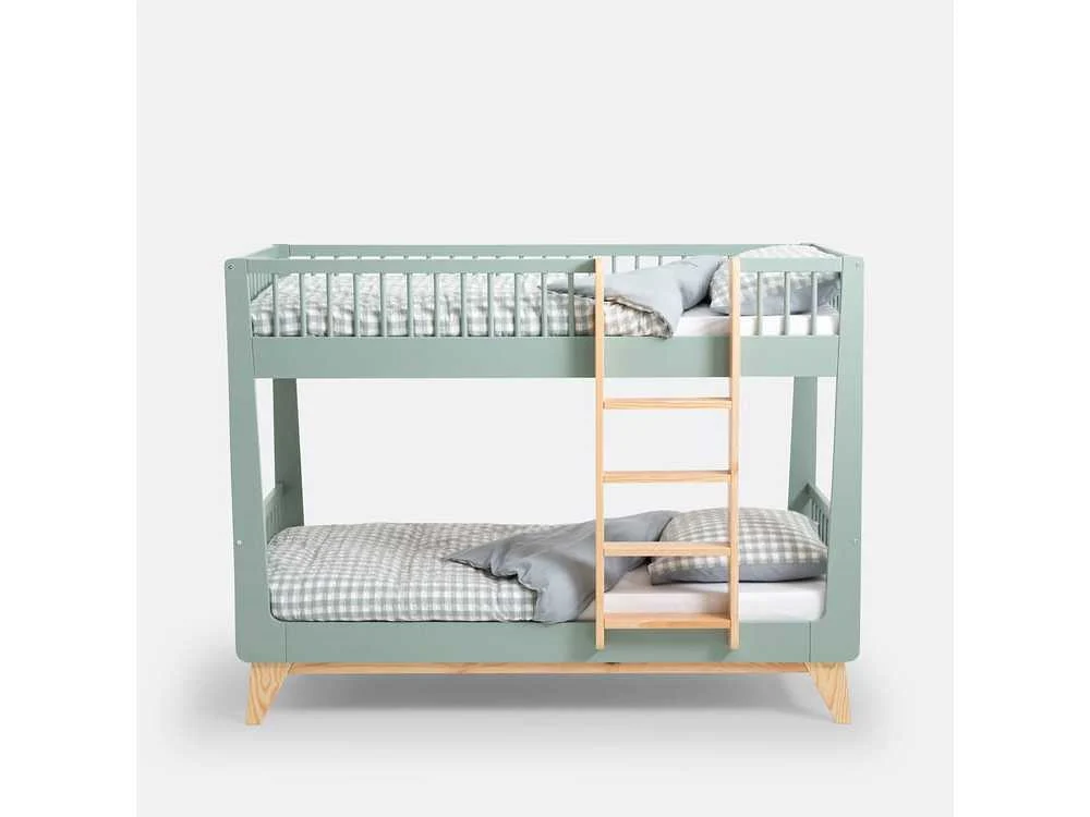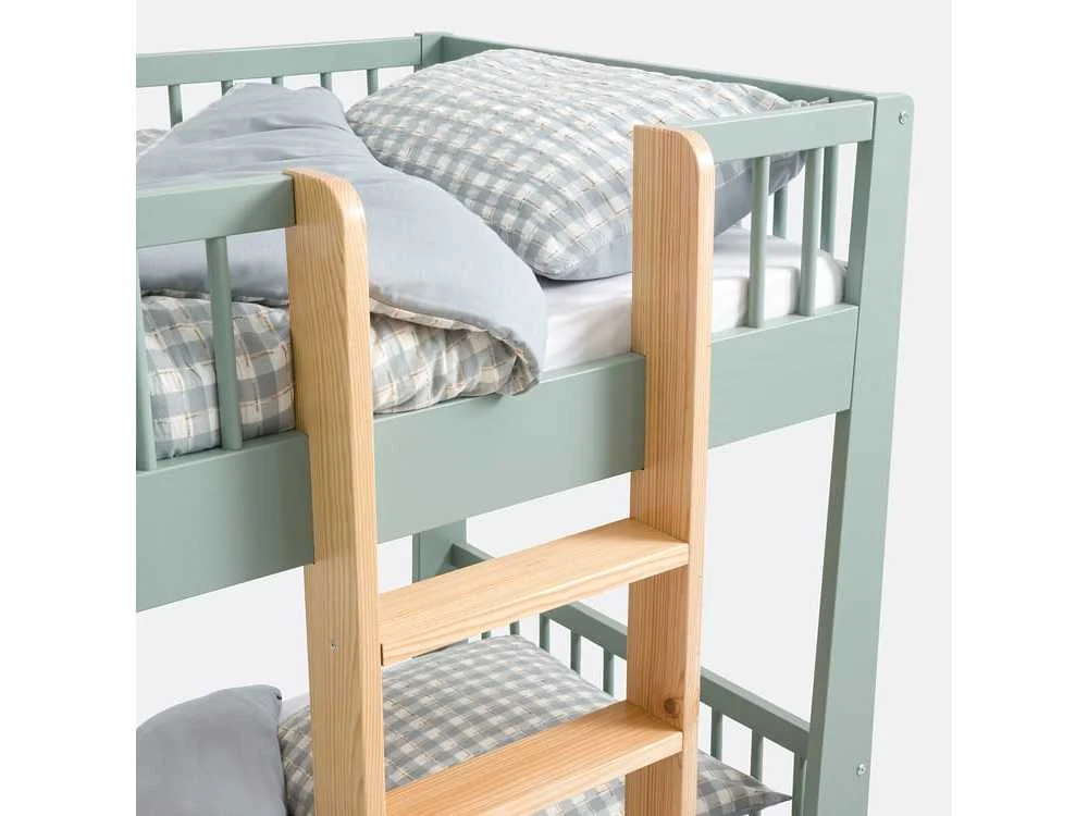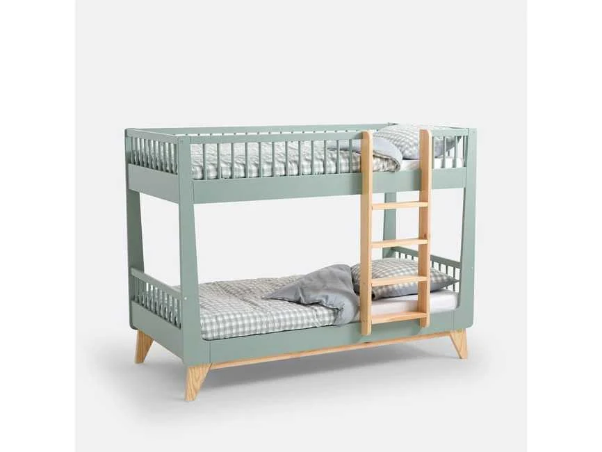 Beschrijving • 2 bedden voor 1 persoon 90 x 190 cm • Massief berkenhouten onderstel met geoliede afwerking. FSC-gecertificeerd® hout • MDF structuur • Lattenbodem van grenen Kwaliteit • Dit product voldoet aan de huidige veiligheidseisen. Grootte • Breedte 104 cm • Hoogte 148 cm • Lengte 198 cm Non