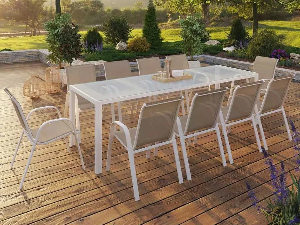 Technische beschrijving Afmetingen stoel: Totale afmetingen: (L) 51,5 x (B) 68 x (H) 84 cm Afmetingen armleuning: (B) 4,2 x (H) 58,5 cm x (E) 13 mm Afmetingen zitting: (L) 42 x (B) 45 x (H) 41,5 cm Rugleuning: (B) 42 x (H) 47 cm Materialen: Stalen structuur / Textileen voor de zitting Kleur: Witte structuur en beige textileen Zelf in elkaar zetten Hardware inbegrepen: Ja Non