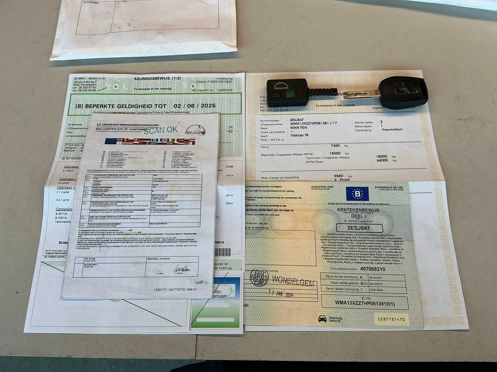 Voertuig start niet. Kilometerstand onbekend. Aandrijfas gedemonteerd en los meegeleverd. Nee Kenteken: 2-ESJ-847 Merk: MAN Type: TGX 18.480 Bouwjaar: 2016 Chassisnummer VIN: WMA13XZZ7HP081381 Cilinderinhoud: 12419cc Datum eerste toelating: 06/10/2016 Type transmissie: Automaat Aantal assen: 2 Asconfiguratie: 4x2 Fuel Type: Diesel Aantal sleutels: 1 Emissieklasse: Euro VI Slaapcabine: true Navigatie: true Eigen gewicht: 7490kg Nationaliteit documenten: België Aantal zitplaatsen: 2