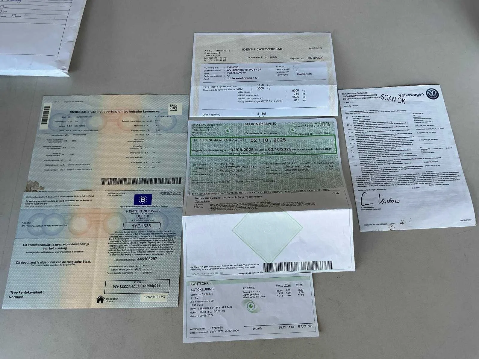 Nee Bouwjaar: 2020 Afgelezen kilometerstand: 163800km Cilinderinhoud: 1968cc Vermogen (kW): 110kW Brandstof: diesel Chassisnummer: WV1ZZZ7HZLH041904 Datum eerste toelating: 04/08/2020 Transmissie: Automaat Emissieklasse: 6d-T-E-ISC Aantal sleutels: 1 Nationaliteit documenten: BELGIË Gelijkvormigheidsattest aanwezig: true Start en rijdt: Ja Keuringsrapport geldig tot: 02/10/2025 Vavato voert geen technische keuring uit.: true Inschrijvingsbewijs - deel 1 : Aanwezig Inschrijvingsbewijs - deel 2: Aanwezig