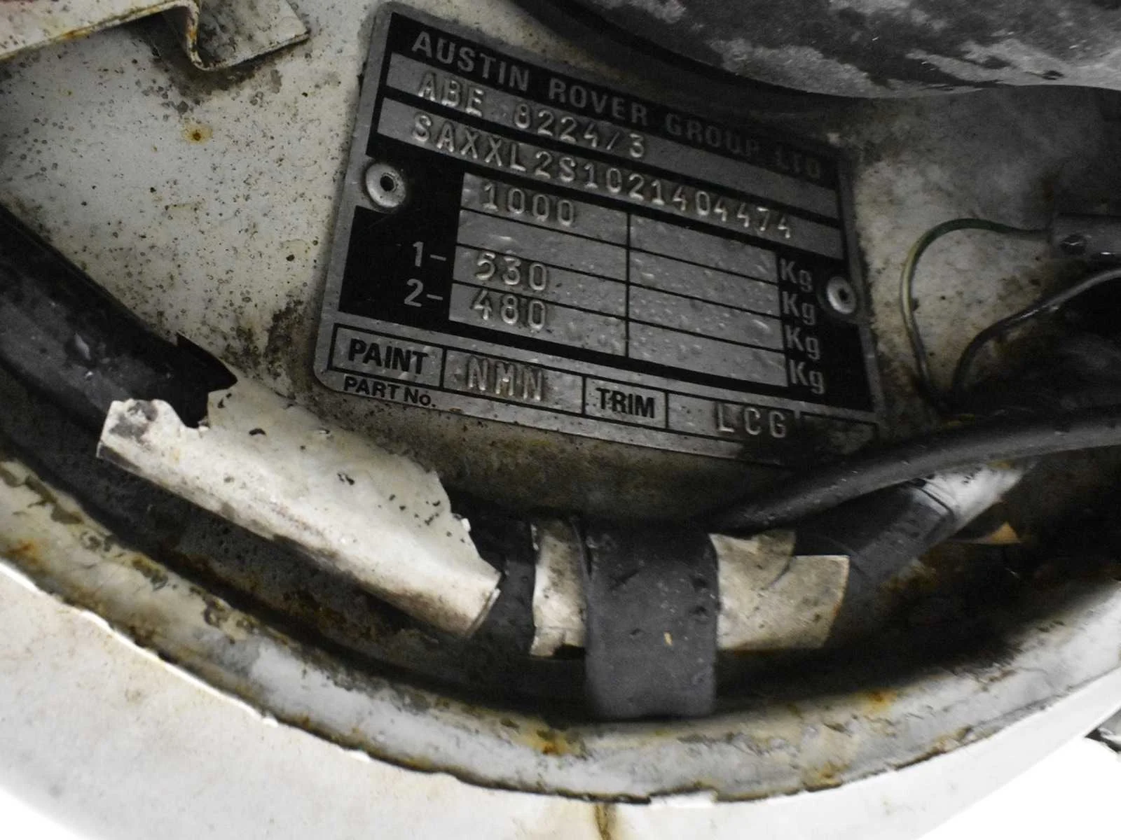 BELGISCHE DOCUMENTEN TAL VAN ONDERHOUDS- EN HERSTELLINGSFACTUREN AANWEZIG TECHNISCHE NAZICHT TE VOORZIEN EINDJE STILSTAND GEKEND No Merk: AUSTIN Type: MINI Bouwjaar: 1989 Chassisnummer: SAXXL2S1021404474 Afgelezen kilometerstand: 51442 Brandstof: BENZINE Datum eerste toelating: 09/03/1989 Boorddocumenten aanwezig?: true Aandrijving: VOOR Transmissie: MANUEEL Aantal deuren: 2 Aantal zitplaatsen: 4 Aantal sleutels: 1 Startinformatie: JA Kleur: WIT ROOD Cilinderinhoud: 998 Aantal cilinders: 4 Carpass: true Inschrijvingsbewijs - deel 1 : AANWEZIG Inschrijvingsbewijs - deel 2: AANWEZIG
