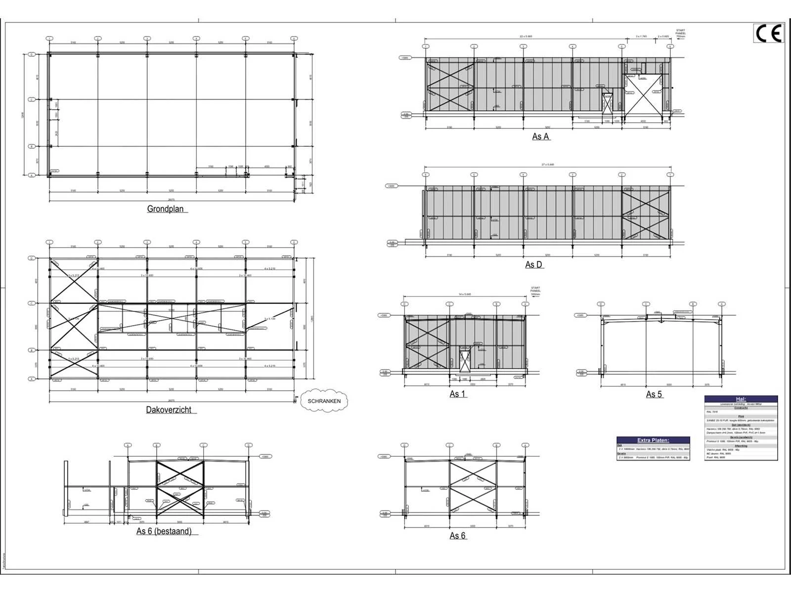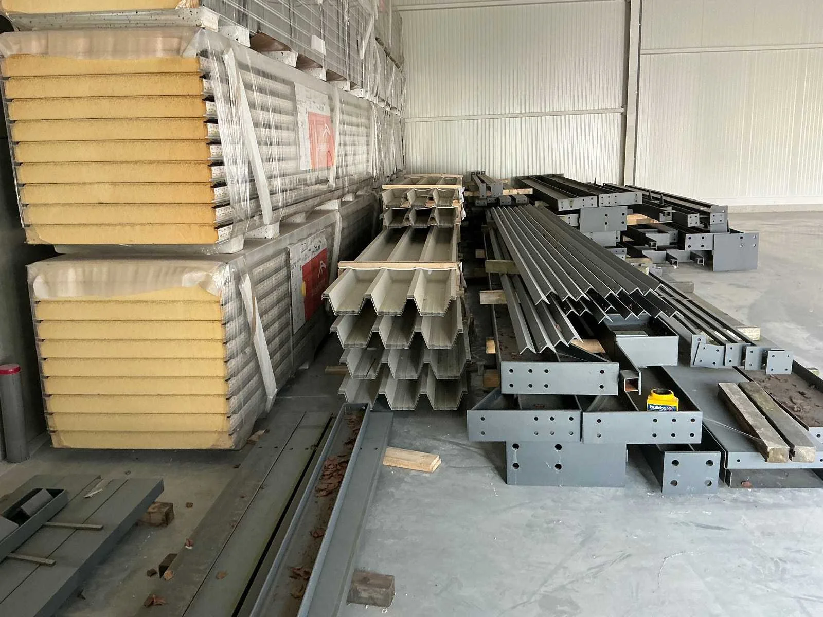 Dit is een complete constructie enkel de deuren, lichtkoepels en sectionaalpoorten zijn niet meegeleverd. - Sandwichpanelen RAL 9005 (zwart) - Constructie RAL 7016 (antracietgrijs) - Steeldekplaten RAL 9002 (grijswit) No Type: Loods Bouwjaar: 2025 Totaal oppervlakte: 335m² Goot hoogte: 5500mm Totale afmeting L: 26070mm Totale afmeting Breedte: 12880mm Totale afmeting Hoogte: 5660mm