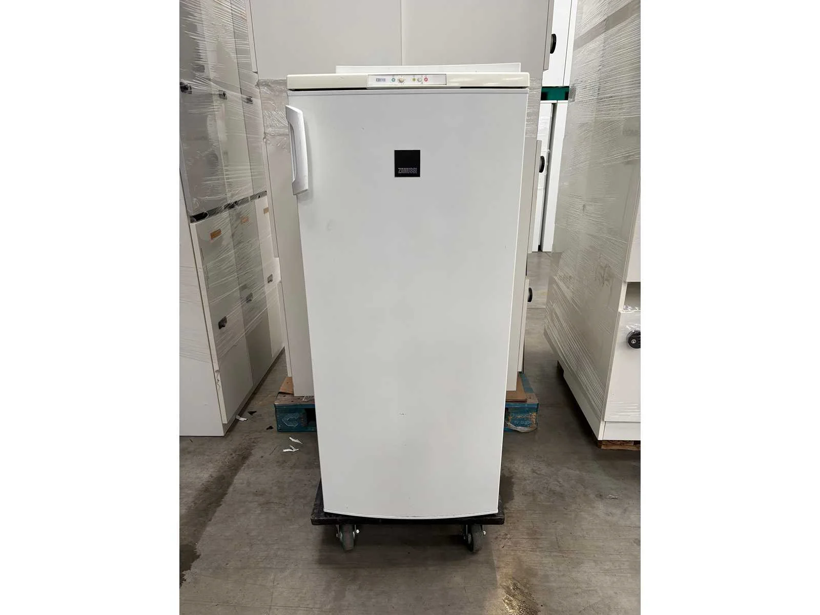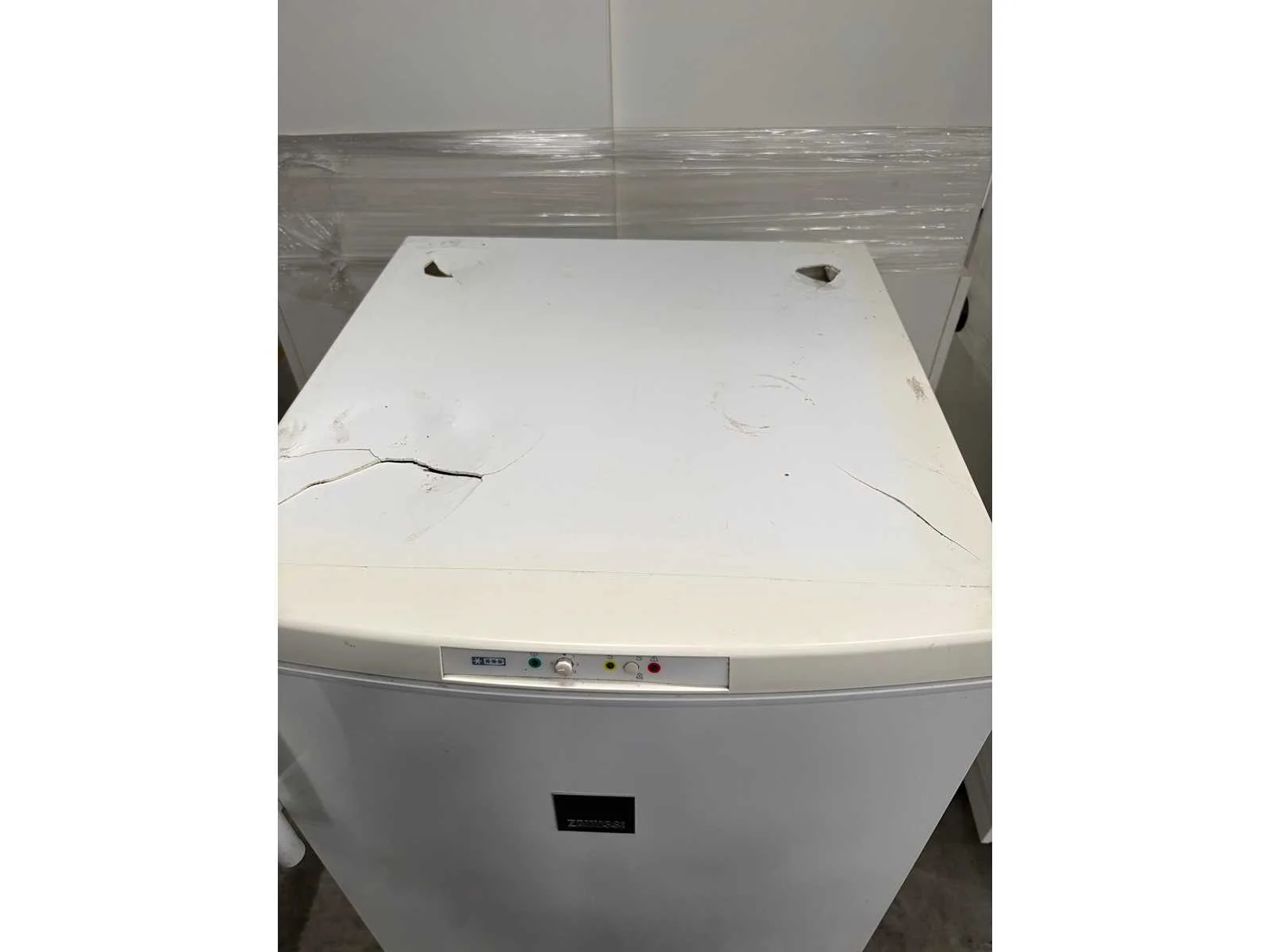 Zanussi vriezer, met gebruikssporen, zichtbare schade bovenaan No Merk: Zanussi Type: Vriezer Serienummer: 146637185076697 Eigen gewicht: 60kg Totale afmeting L: 510mm Totale afmeting Breedte: 481mm Totale afmeting Hoogte: 1180mm