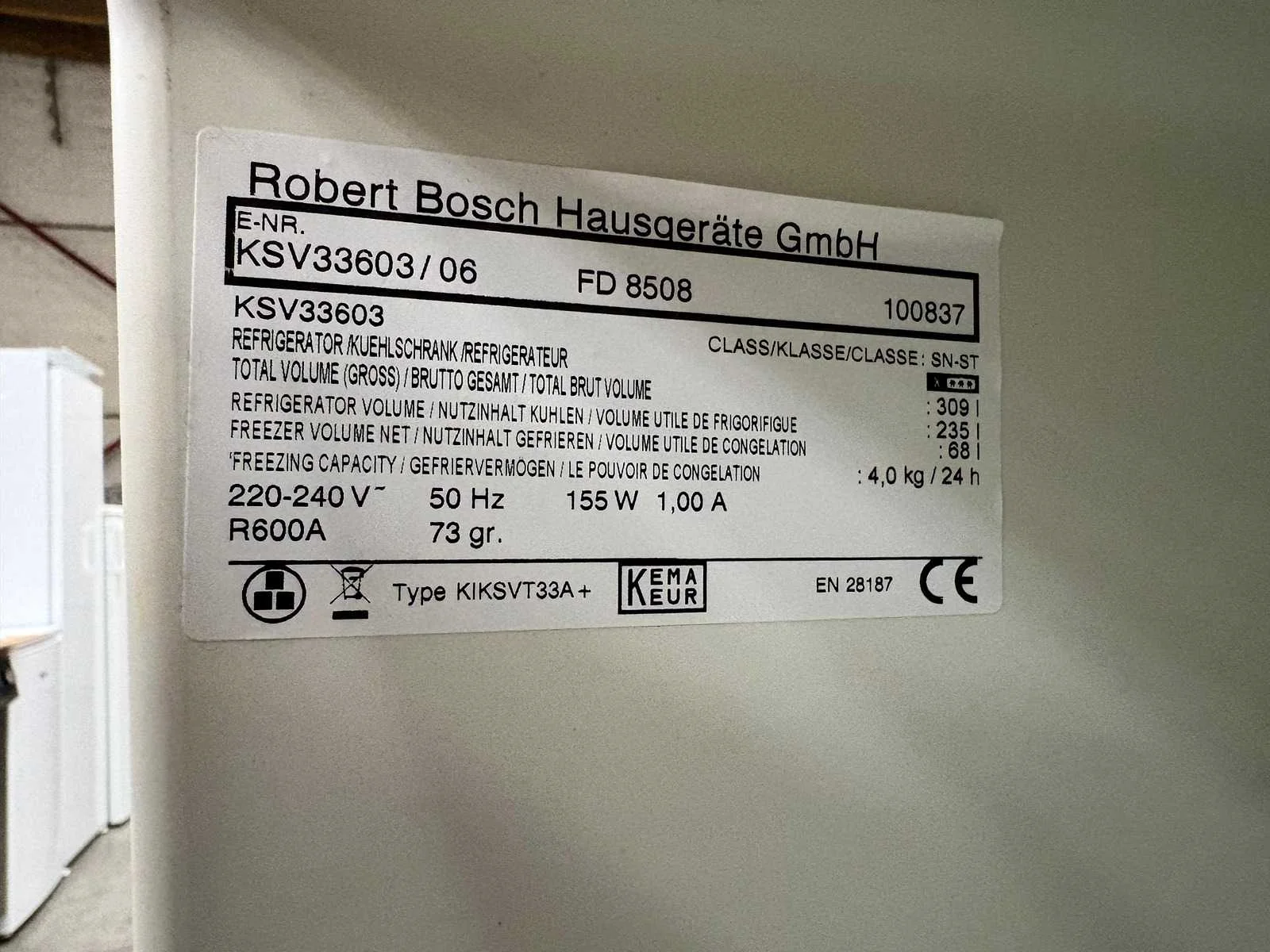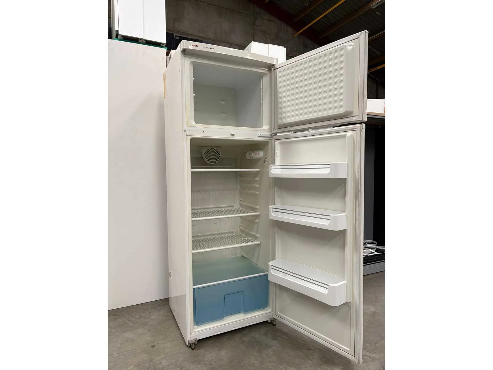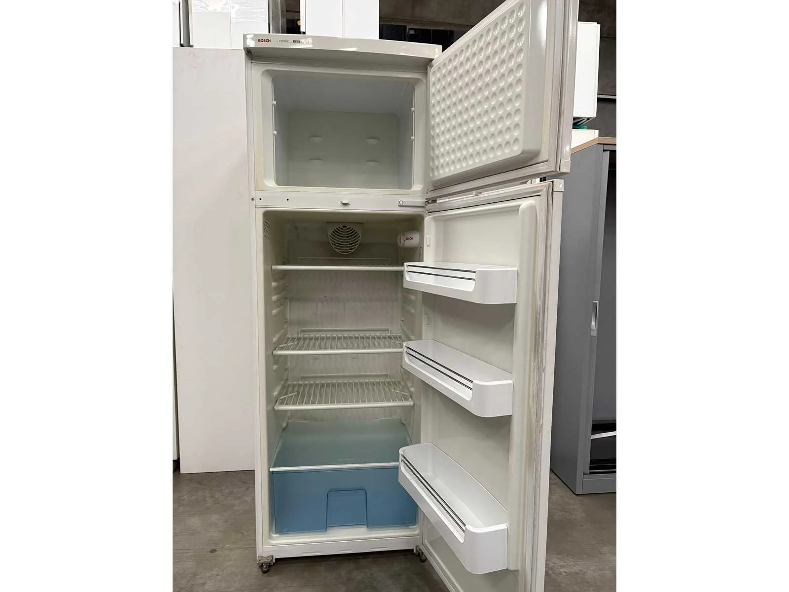 BOSCH koelkast met 4 etages en vriezer. Met Gebruikssporen. Afmetingen kunnen fout zijn. Nee Merk: BOSCH Eigen gewicht: 60kg Totale afmeting L: 650mm Totale afmeting Breedte: 600mm Totale afmeting Hoogte: 1760mm