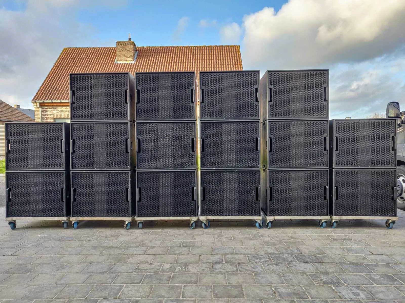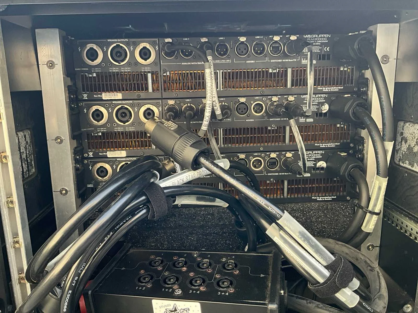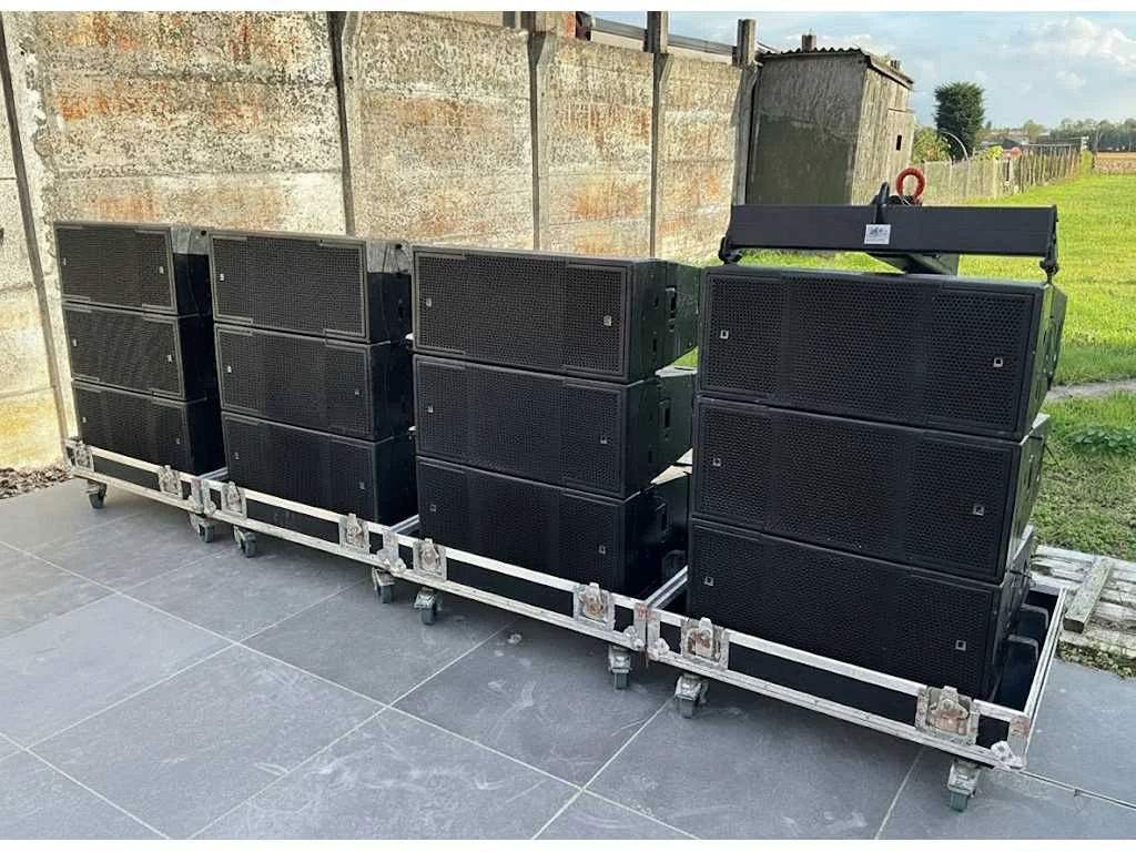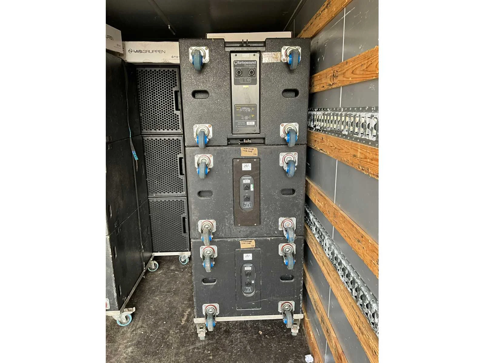 Complete Plug-and-play Turbosound Flex Line Array systeem met Lab Gruppen versterkers Installatie bestaat uit: <b>Versterkers: </b> - 6x Labgruppen PLM-20000Q versterker Voorzien van: Dante, Lake software - 2x Riedcon STV-32PAM stroomverdeler ingebouwd in 2x mobiele flightcase <b>Speakers: </b> - 12x Turbosound TFA-600H Flex Array topkast per 3 stuks in mobiele flightcase - 16x Turbosound TFA-600B subwoofer - 2x Turbosound TFA-600L subwoofer vermogen: 1600 W <b>Inclusief: </b> - 4x FB-600 flybar - verpakt in 2x mobiele flightcase - 2x GS-600 stapelplint - speakon kabels (11x NL8FC, Xx NL4FC) - enkele reserve onderdelen zoals X-overs en drivers No Merk: Lab Gruppen / Turbosound Type: TFA-600 Met flightcase: true