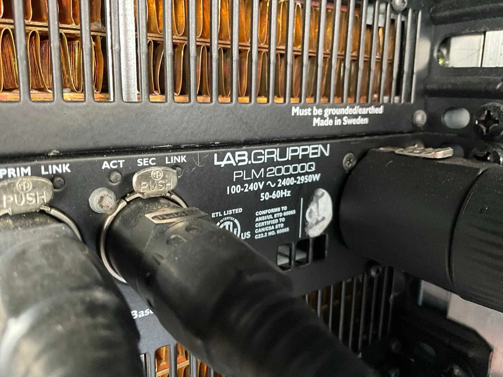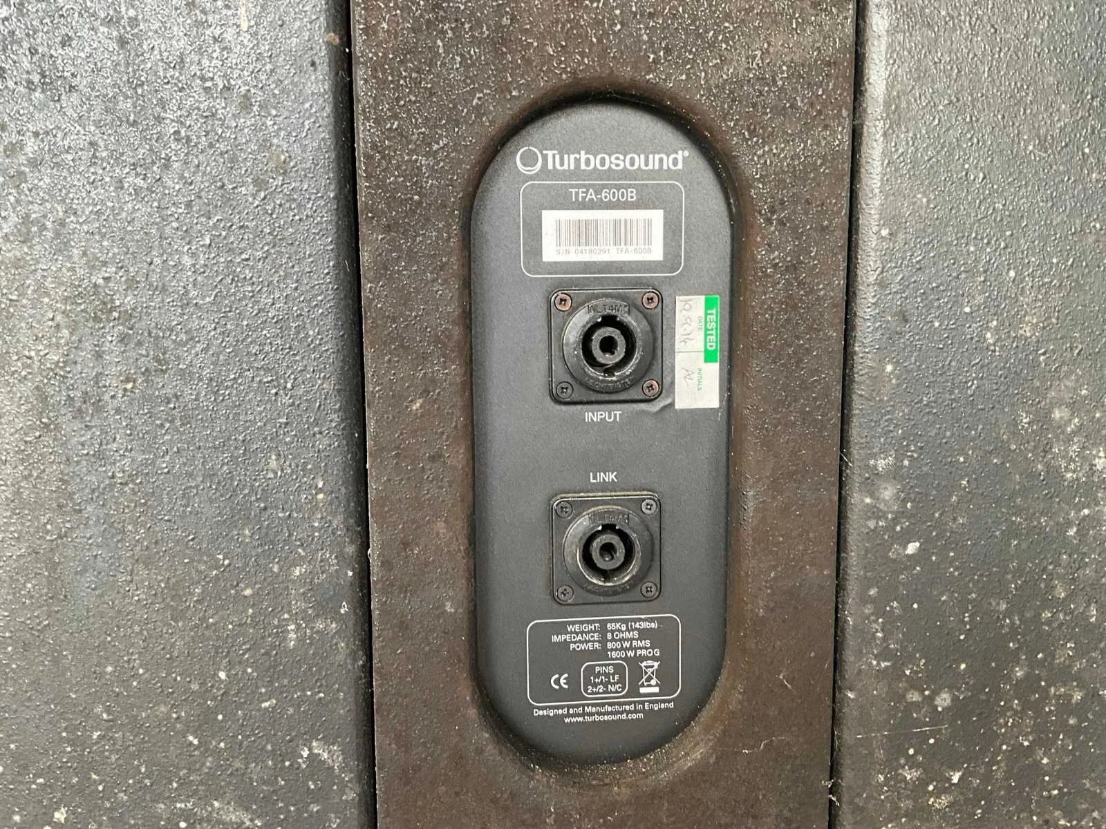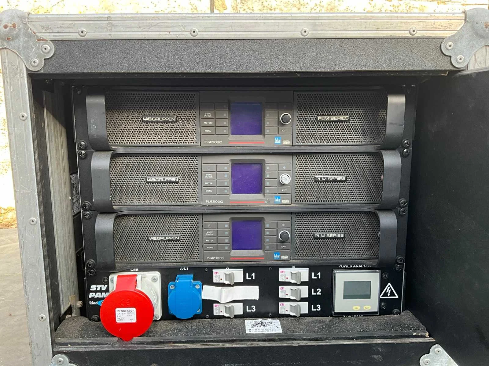 Complete Plug-and-play Turbosound Flex Line Array systeem met Lab Gruppen versterkers Installatie bestaat uit: <b>Versterkers: </b> - 6x Labgruppen PLM-20000Q versterker Voorzien van: Dante, Lake software - 2x Riedcon STV-32PAM stroomverdeler ingebouwd in 2x mobiele flightcase <b>Speakers: </b> - 12x Turbosound TFA-600H Flex Array topkast per 3 stuks in mobiele flightcase - 16x Turbosound TFA-600B subwoofer - 2x Turbosound TFA-600L subwoofer vermogen: 1600 W <b>Inclusief: </b> - 4x FB-600 flybar - verpakt in 2x mobiele flightcase - 2x GS-600 stapelplint - speakon kabels (11x NL8FC, Xx NL4FC) - enkele reserve onderdelen zoals X-overs en drivers No Merk: Lab Gruppen / Turbosound Type: TFA-600 Met flightcase: true