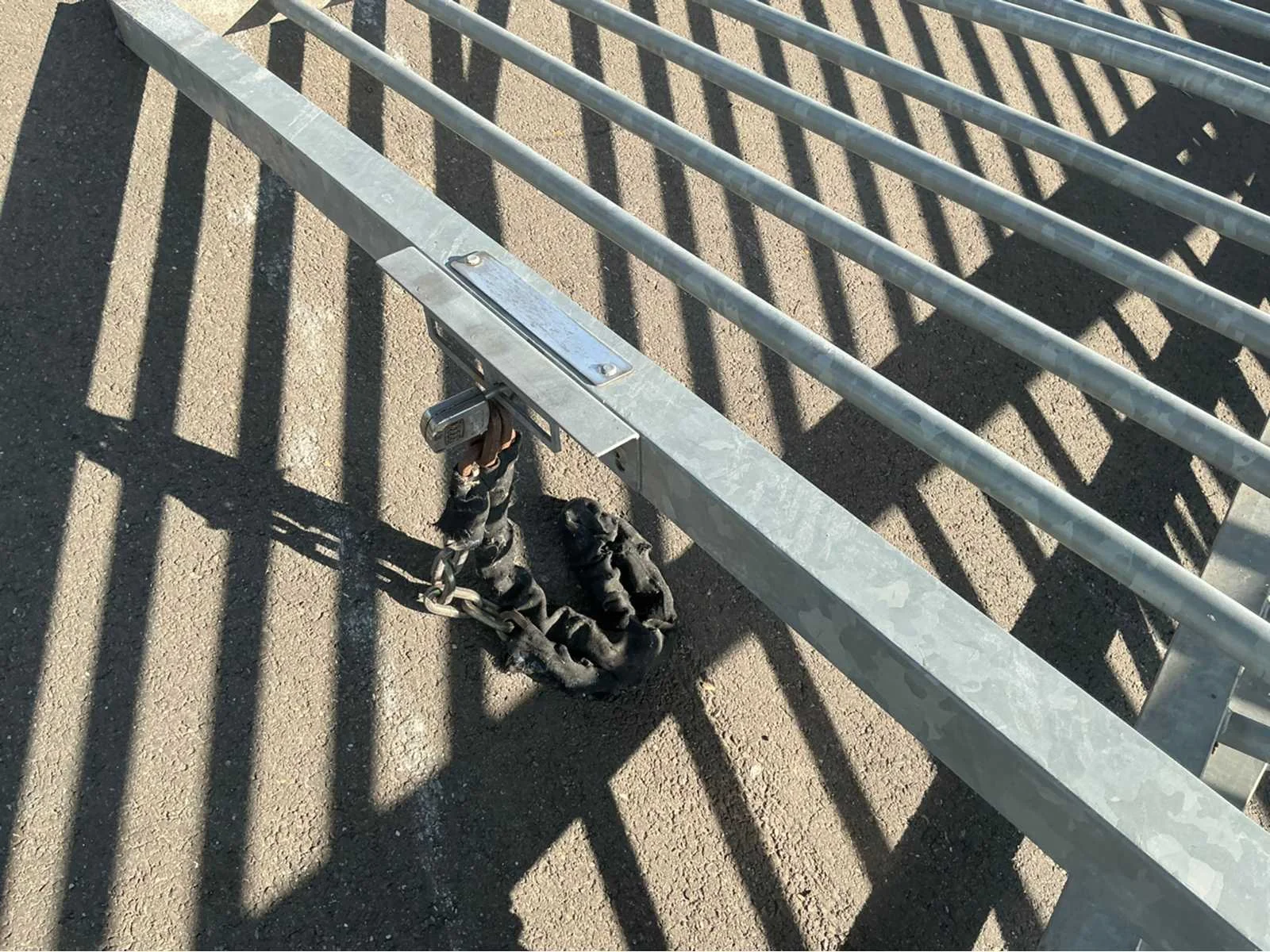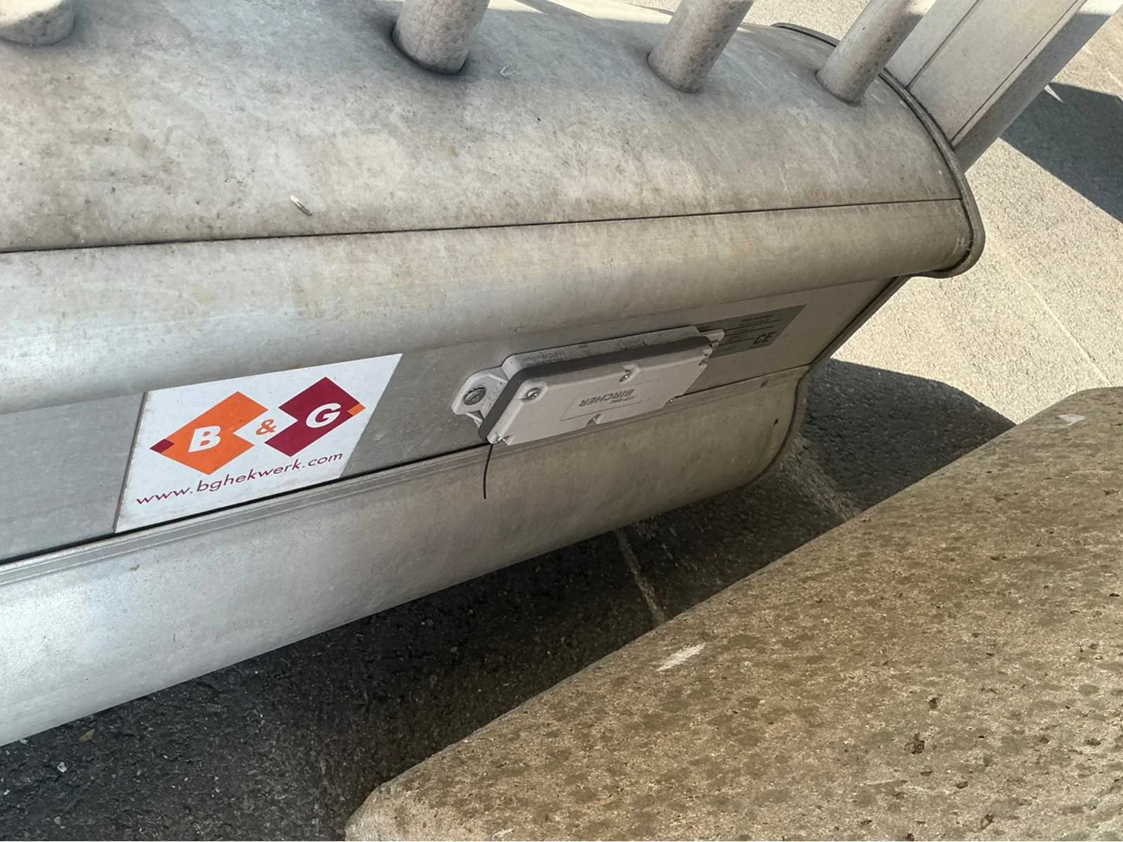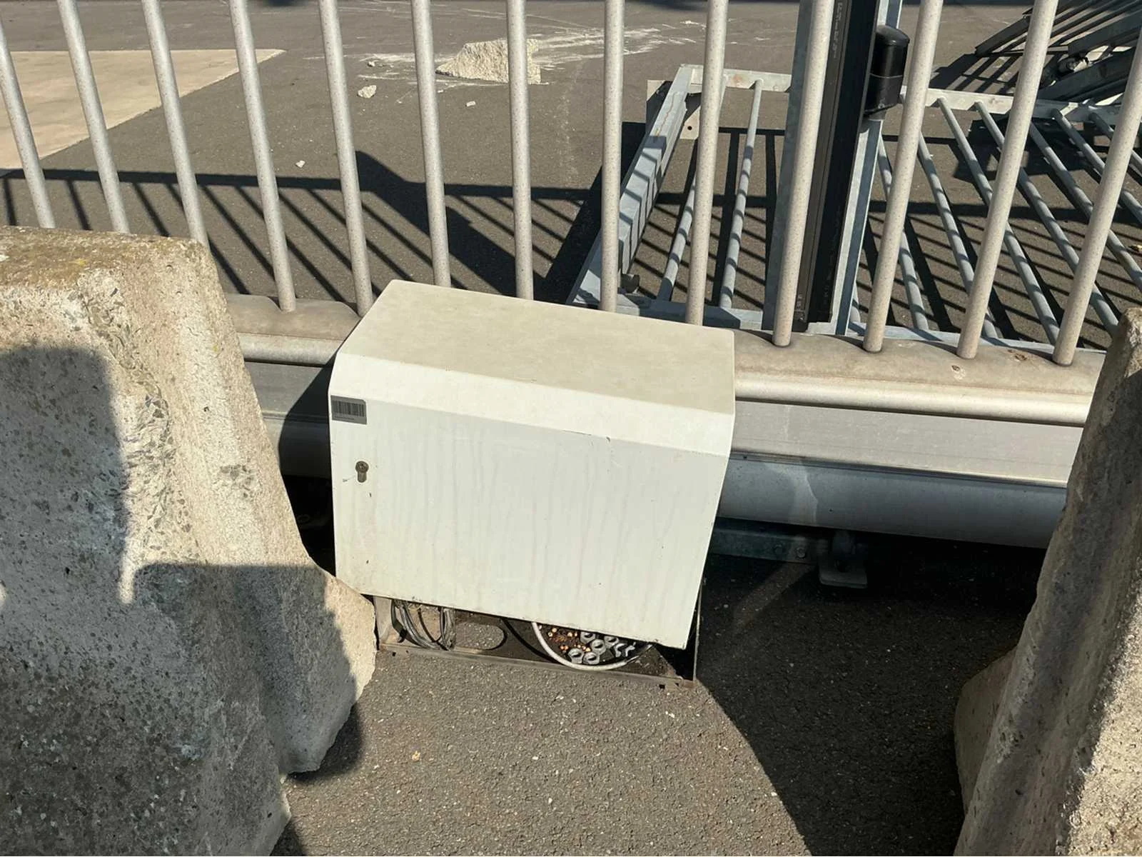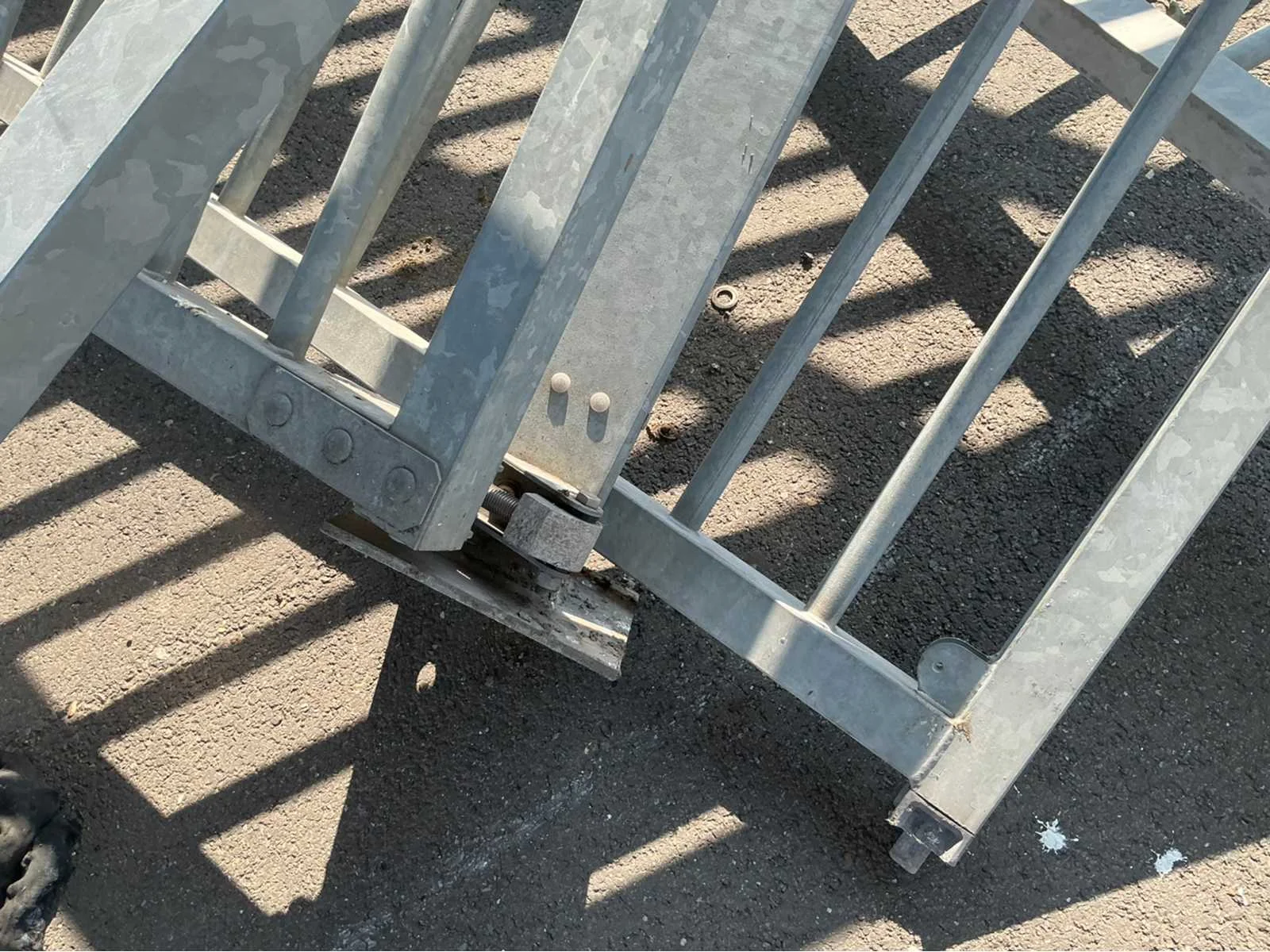 Reeds gedemonteerd. +- 100m in totaal met hekken van 2.50 m per stuk, 1 elektrische poort van 2x 6.7 m met code systeem en 2 x manuele poorten van 2.4 x 3.5 m. En 4 x 2.95 m. Eveneens bevestigingen inbegrepen waarbij slechts enkelen wat scheef zijn doordat ze in de beton gegoten waren. No Merk: B&G Product type: Bircher Breedte: 190 Hoogte: 225 Materiaal: IJzer