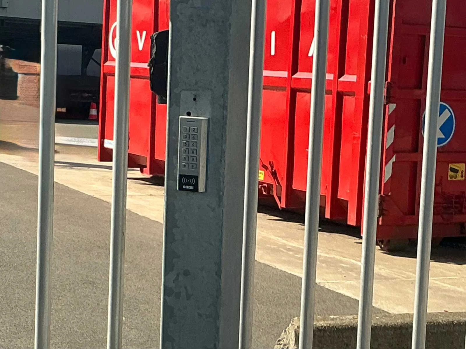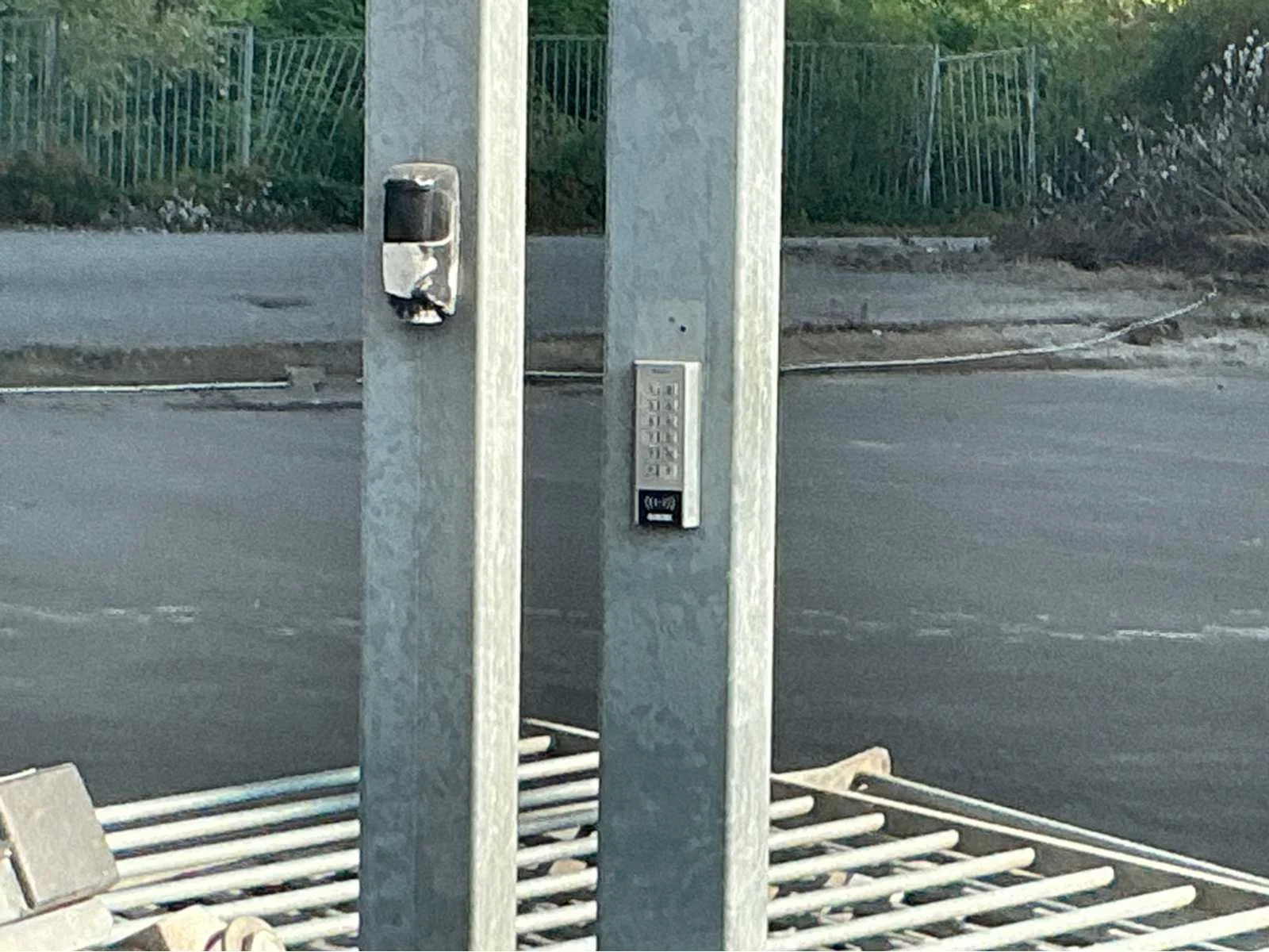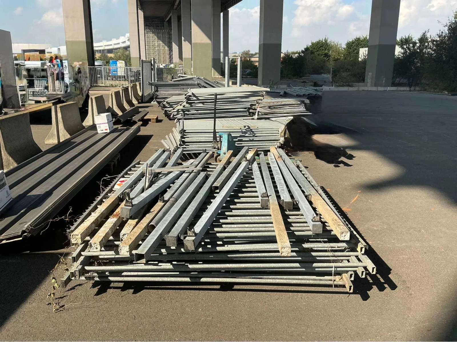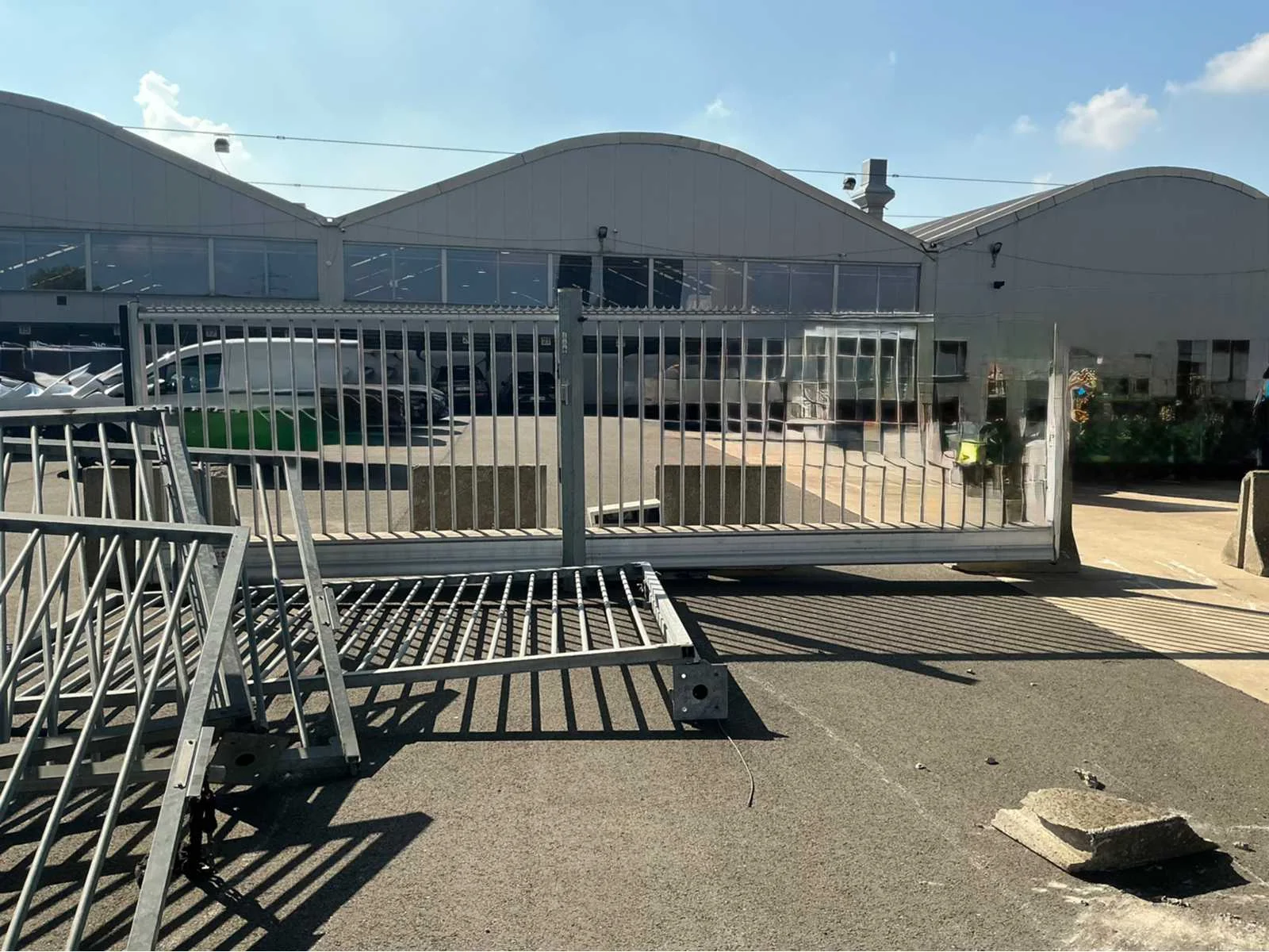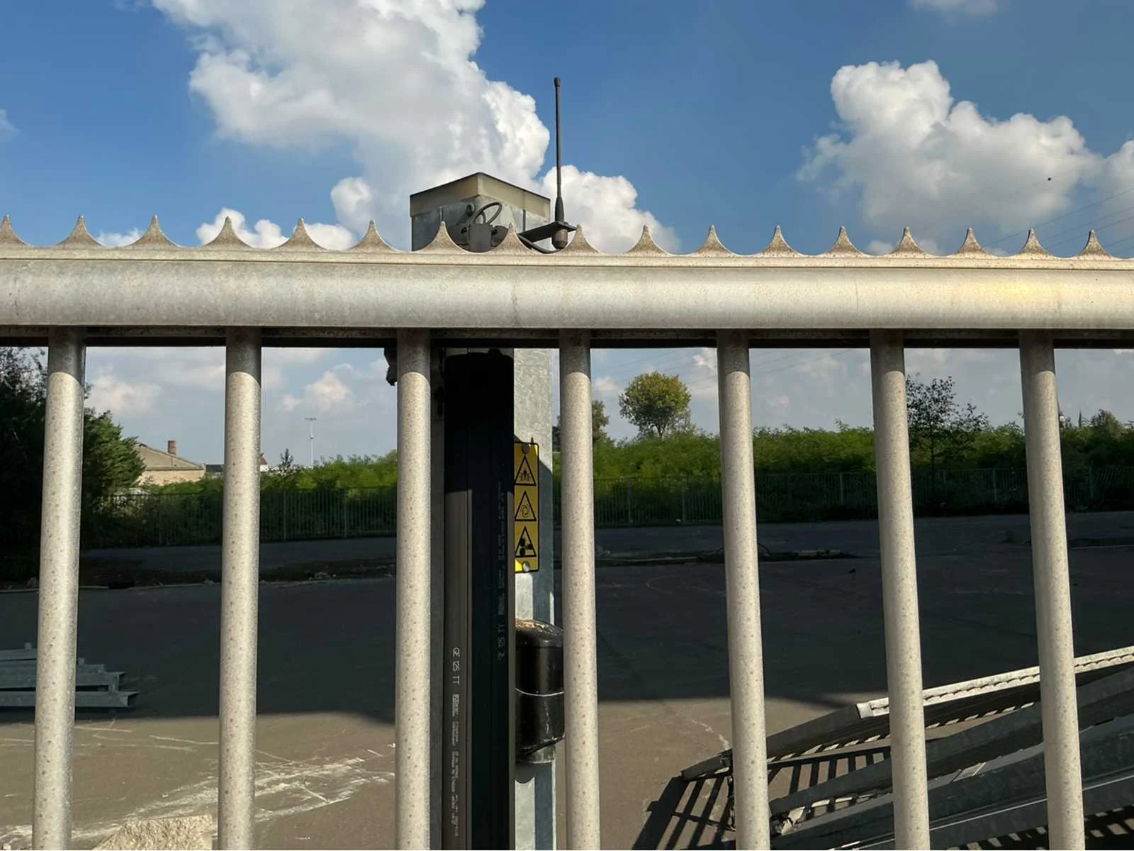 Reeds gedemonteerd. +- 100m in totaal met hekken van 2.50 m per stuk, 1 elektrische poort van 2x 6.7 m met code systeem en 2 x manuele poorten van 2.4 x 3.5 m. En 4 x 2.95 m. Eveneens bevestigingen inbegrepen waarbij slechts enkelen wat scheef zijn doordat ze in de beton gegoten waren. No Merk: B&G Product type: Bircher Breedte: 190 Hoogte: 225 Materiaal: IJzer