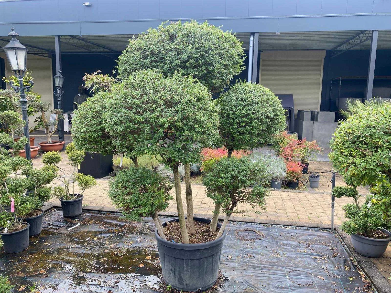 Ligistrum jonandrum of delavayanum met meerdere bollen. Ligustersoort die vaak geënt op stam wordt aangeboden, en goed geschikt is voor vormsnoei. Kan tot 2m hoog worden, maar met regelmatige snoei kan hij tot iedere gewenste grootte geknipt worden. Je ziet ze veel op stam in bolvorm geknipt, maar hij kan ook solitair in een border staan of als kuipplant worden aangeplant. Compacte, dichte groei en is een langzaam groeiende struik. Trekt bijen en vlinders aan maar ook vogels, die behalve op de insecten ook op de bessen afkomen. No Type: Ligistrum jonandrum of delavayanum In pot: true