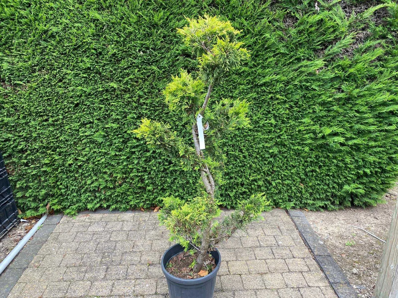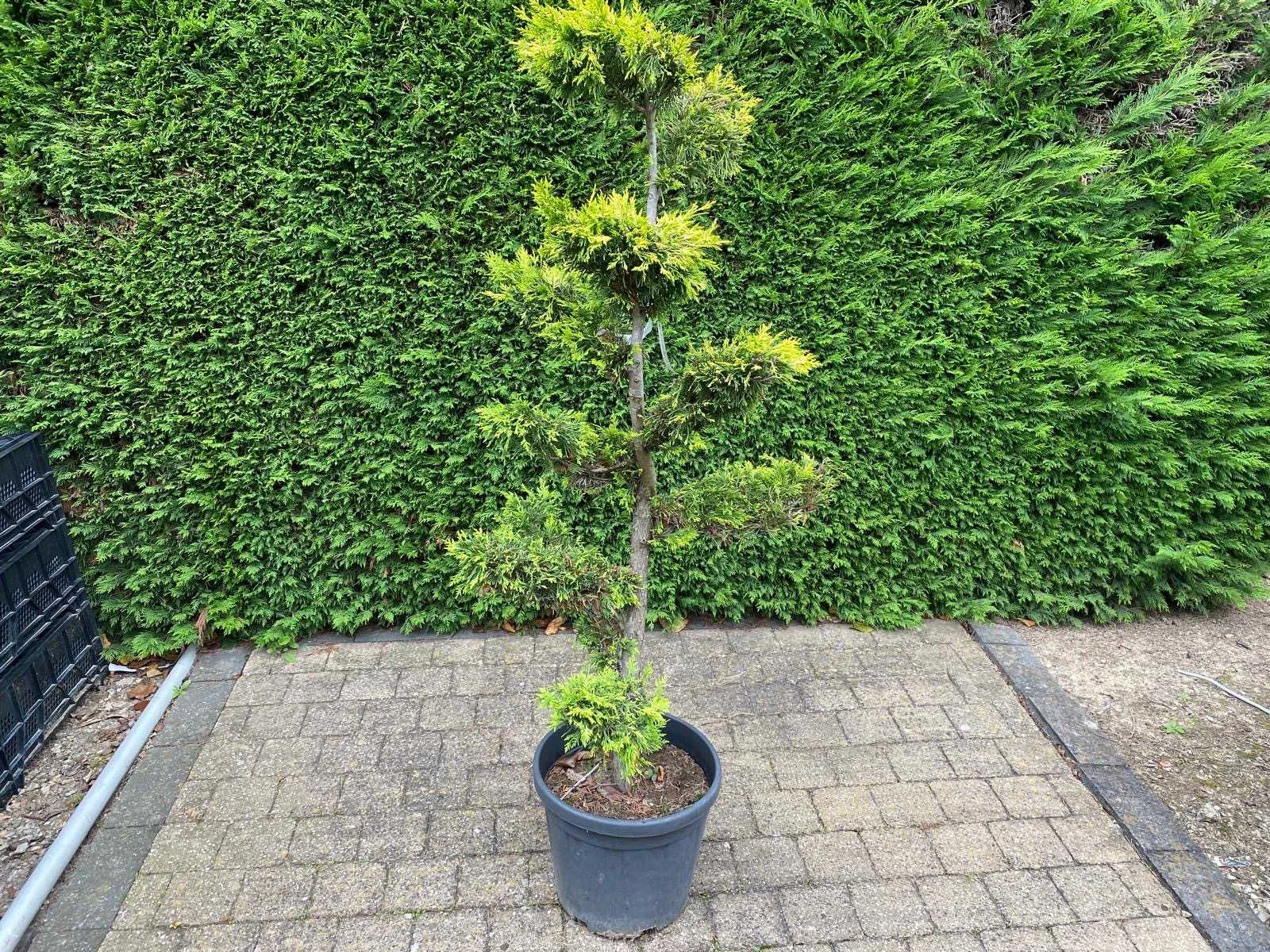 De Cupressocyparis leylandii 'Castlewellan Gold', oftewel de gele leylandii conifeer, is een conifeersoort met groengele geschubde bladeren. Dit is meteen ook het belangrijkste verschil met de gewone leylandii conifeer. De Castlewellan Gold is vernoemd naar een bomentuin in Noord-Ierland, nabij het dorpje Castlewellan, waar de voorouder van deze haagconifeer werd ontdekt. Een prachtige verschijning voor in jouw tuin, langs de rand van een speeltuin of waar je ook maar meer groen, privacy of beschutting wilt creëren. No Type: Gele leylandii Latijnse benaming: Cupressocyparis leylandii 'Castlewellan Gold' In pot: true