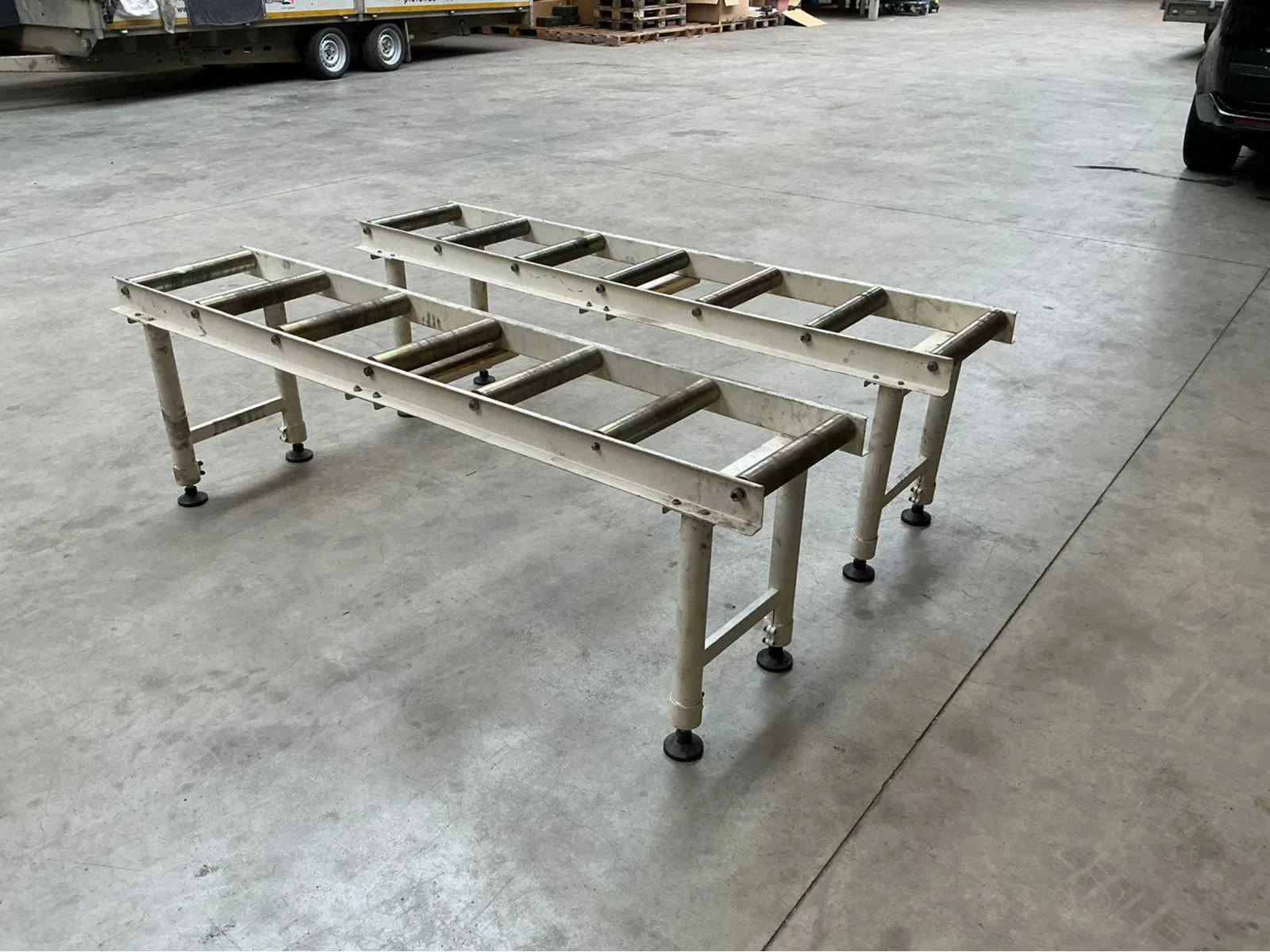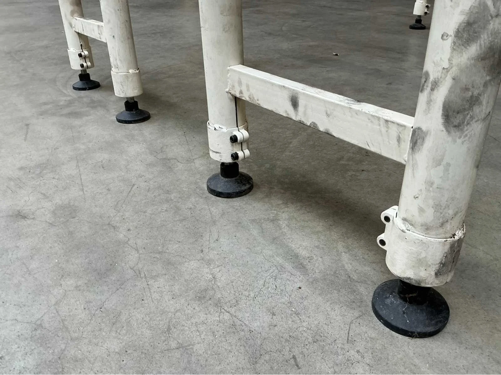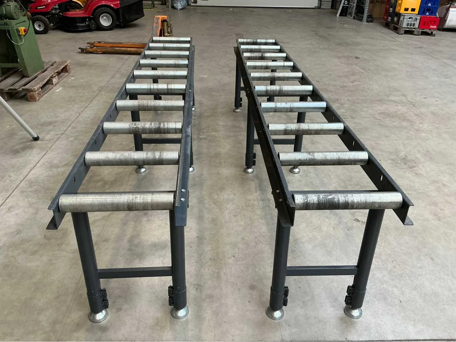 Transportbanden wit: 1950mm lengte, breedte 443mm en hoogte 500mm verstelbaar naar maximum 1000mm. Transportbanden grijs: 3000mm lengte, breedte 450mm en hoogte 700mm verstelbaar naar 1200mm. Nee Leveringsvoorwaarden: Heftruck aanwezig