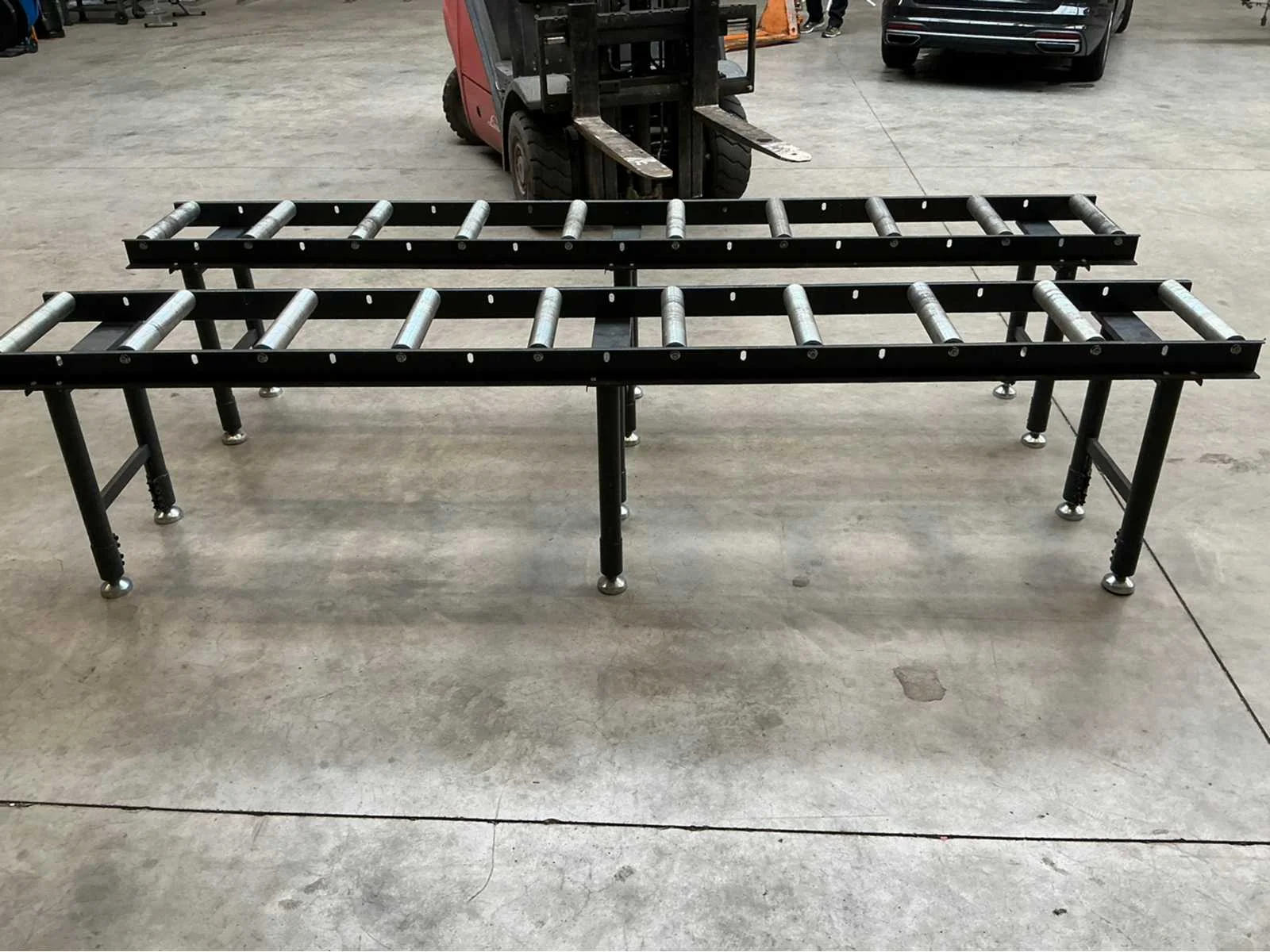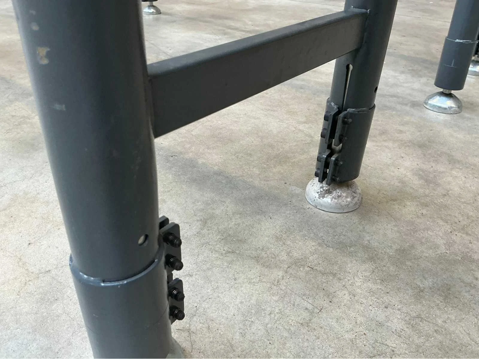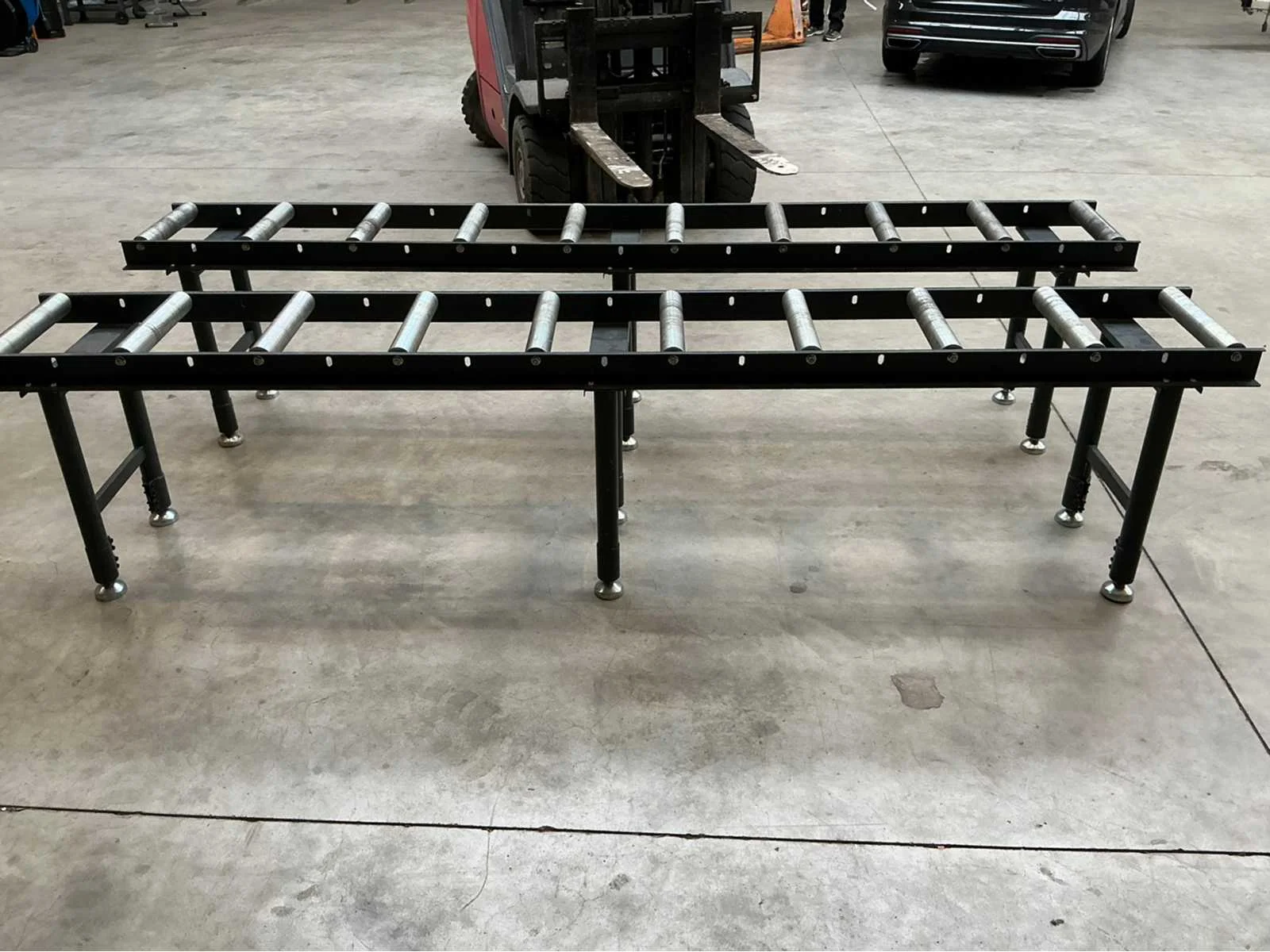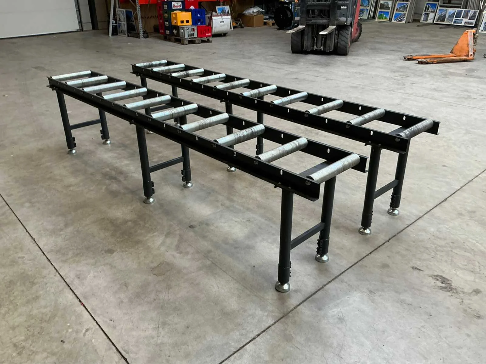 Transportbanden wit: 1950mm lengte, breedte 443mm en hoogte 500mm verstelbaar naar maximum 1000mm. Transportbanden grijs: 3000mm lengte, breedte 450mm en hoogte 700mm verstelbaar naar 1200mm. Nee Leveringsvoorwaarden: Heftruck aanwezig
