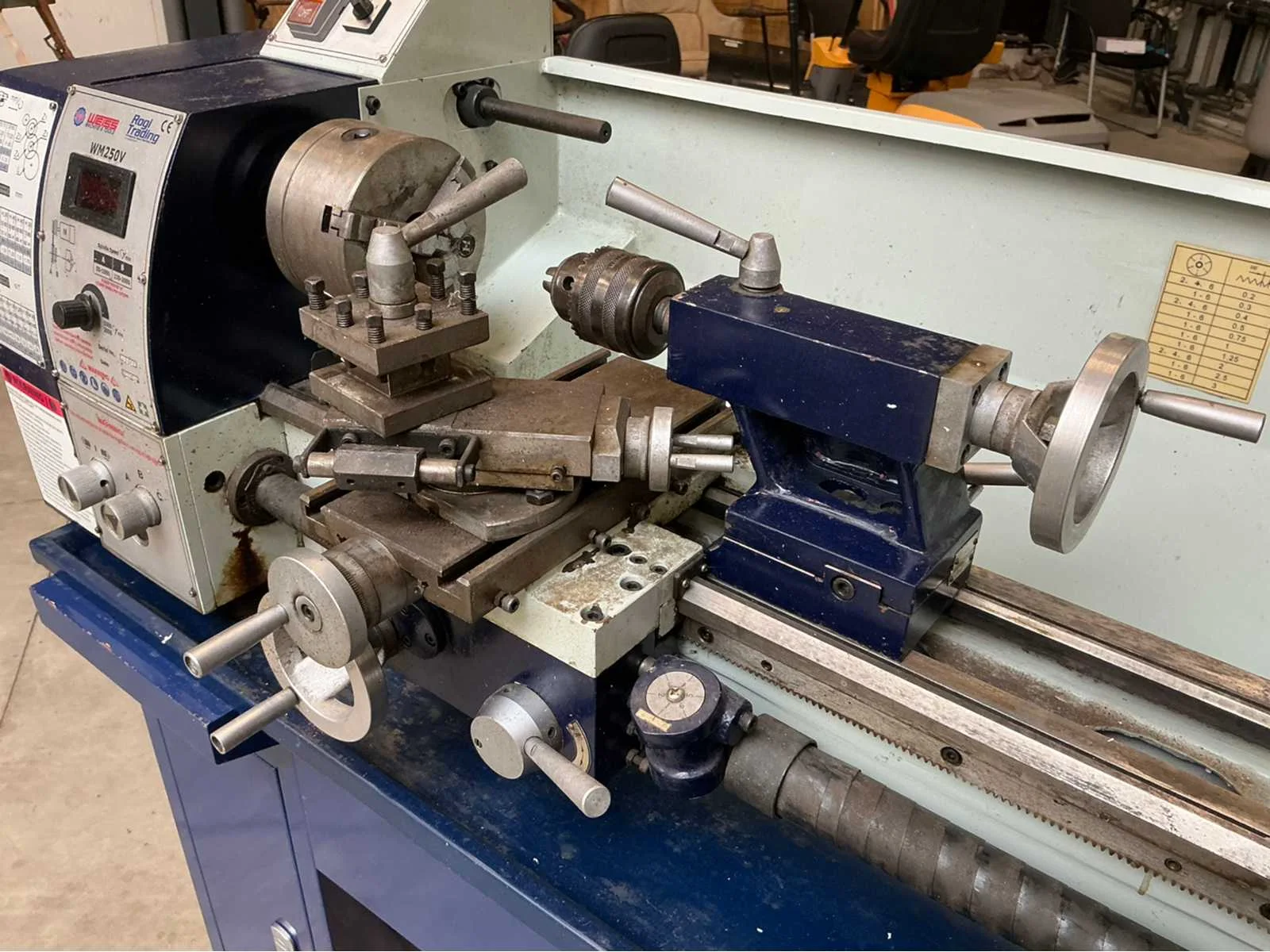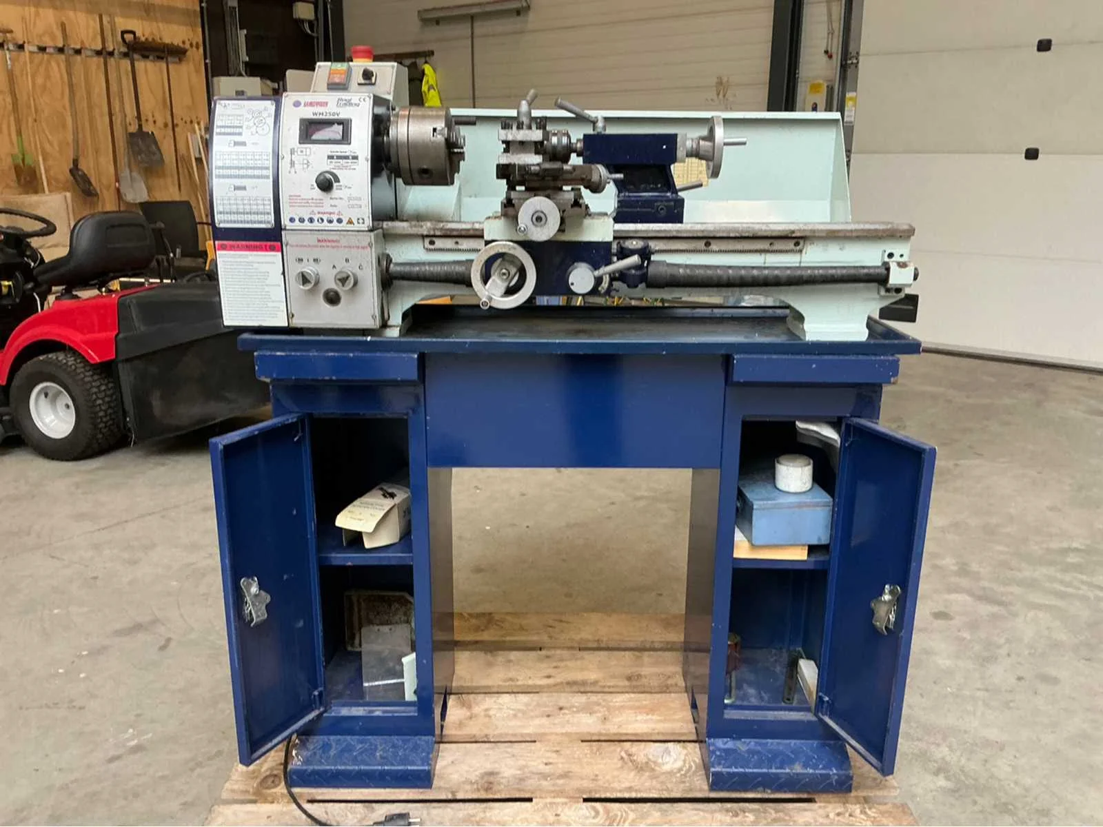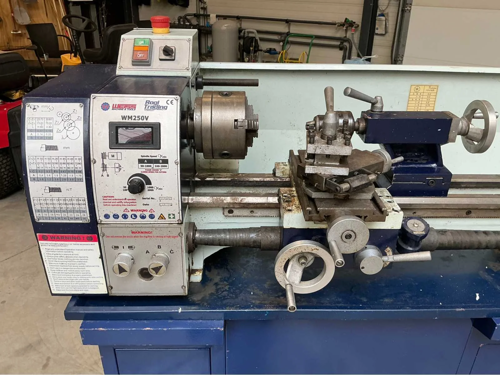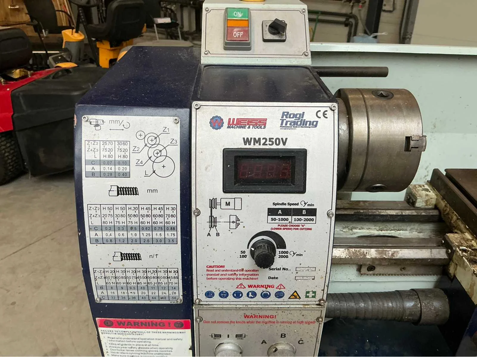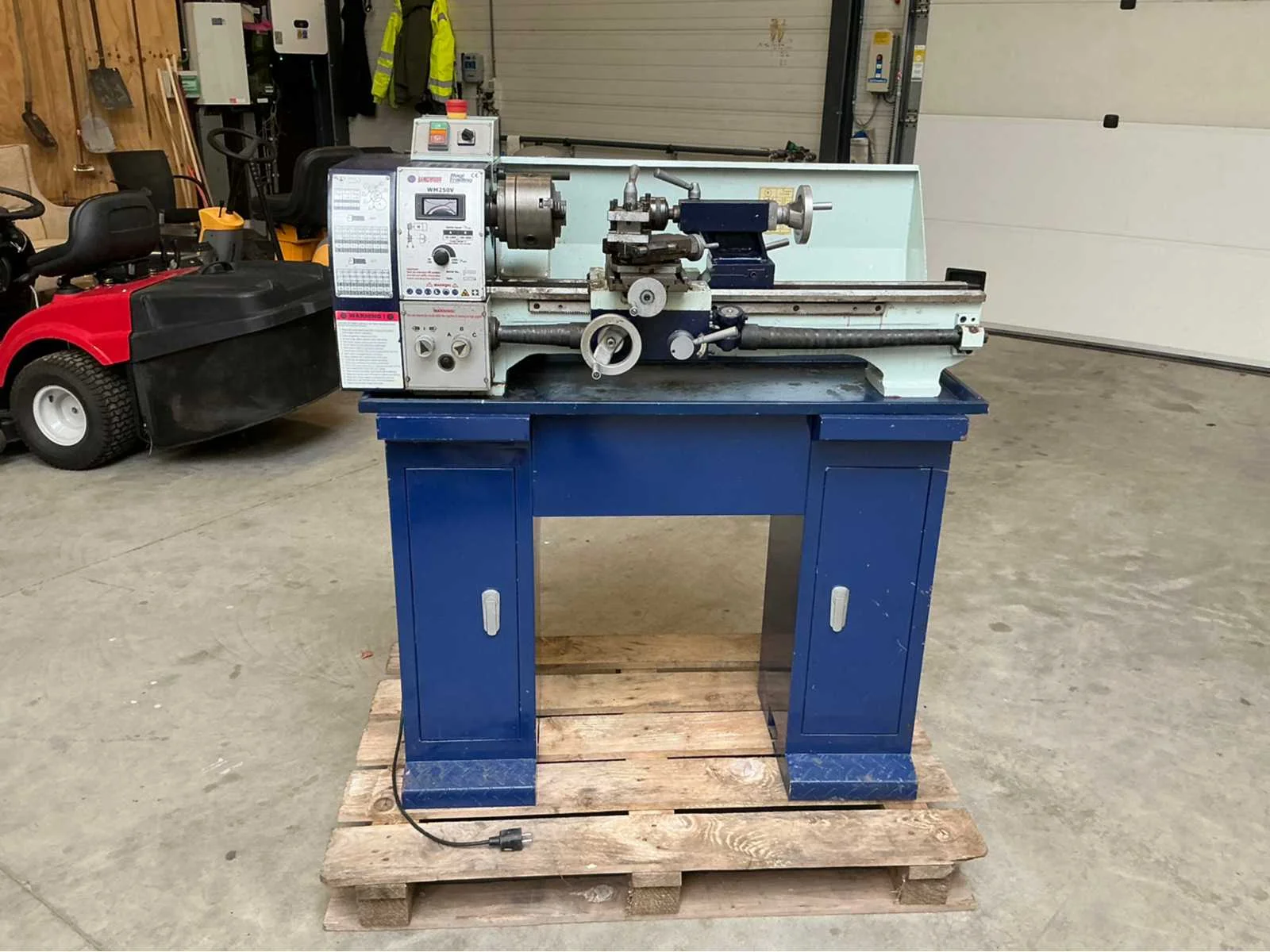 Op stabiel onderstel met kast. Voorzien van digitale toerentaluitlezing, instelbare spindelsnelheid (50–2000 t/min) en noodstopknop. Uitgerust met klauwplaat, support en losse kop. De machine is gebruikt en getest, maar verkeert in nette, functionele staat en is klaar voor gebruik. Nee Merk: Weiss Type: WM250V Leveringsvoorwaarden: Heftruck aanwezig