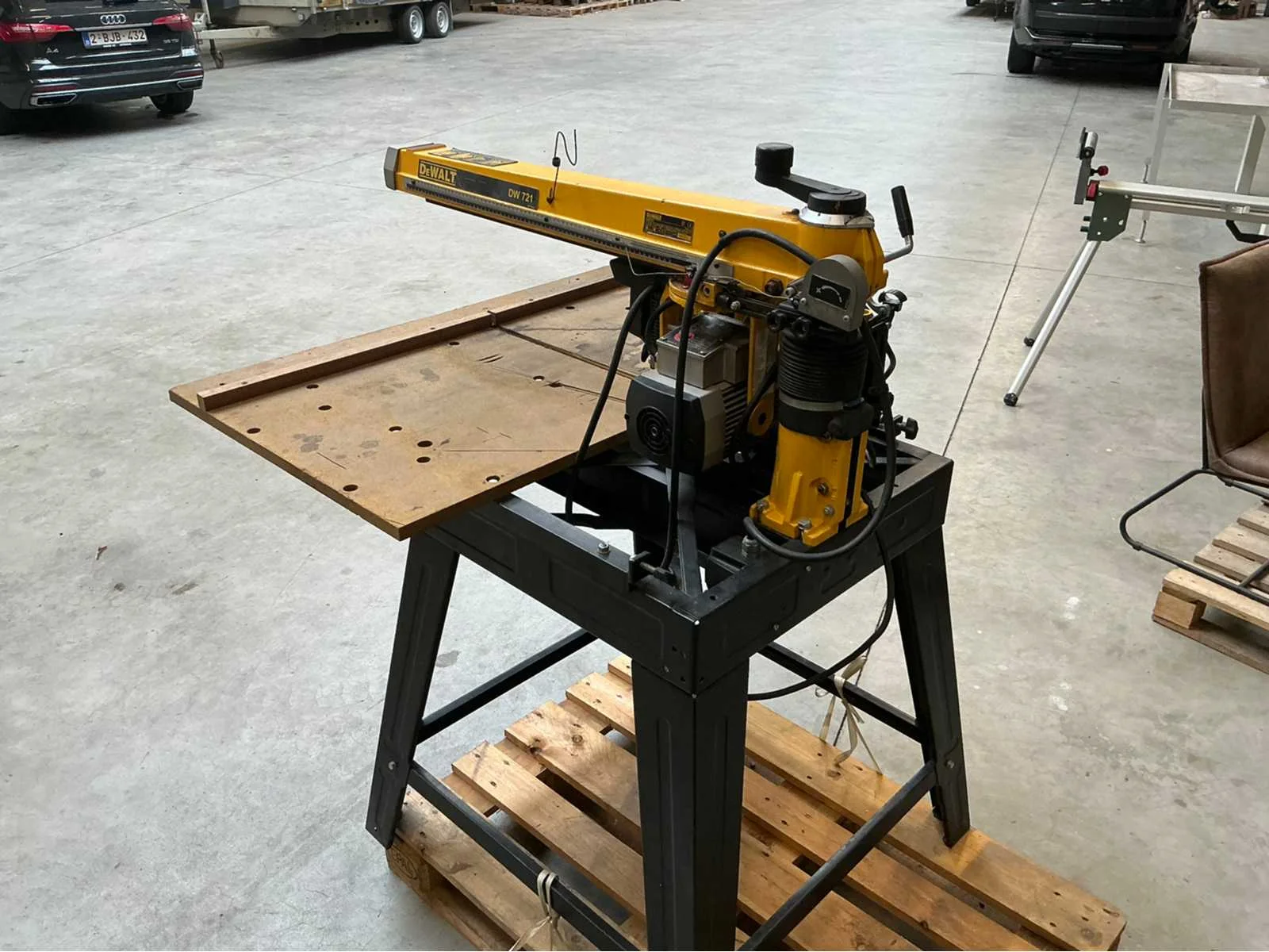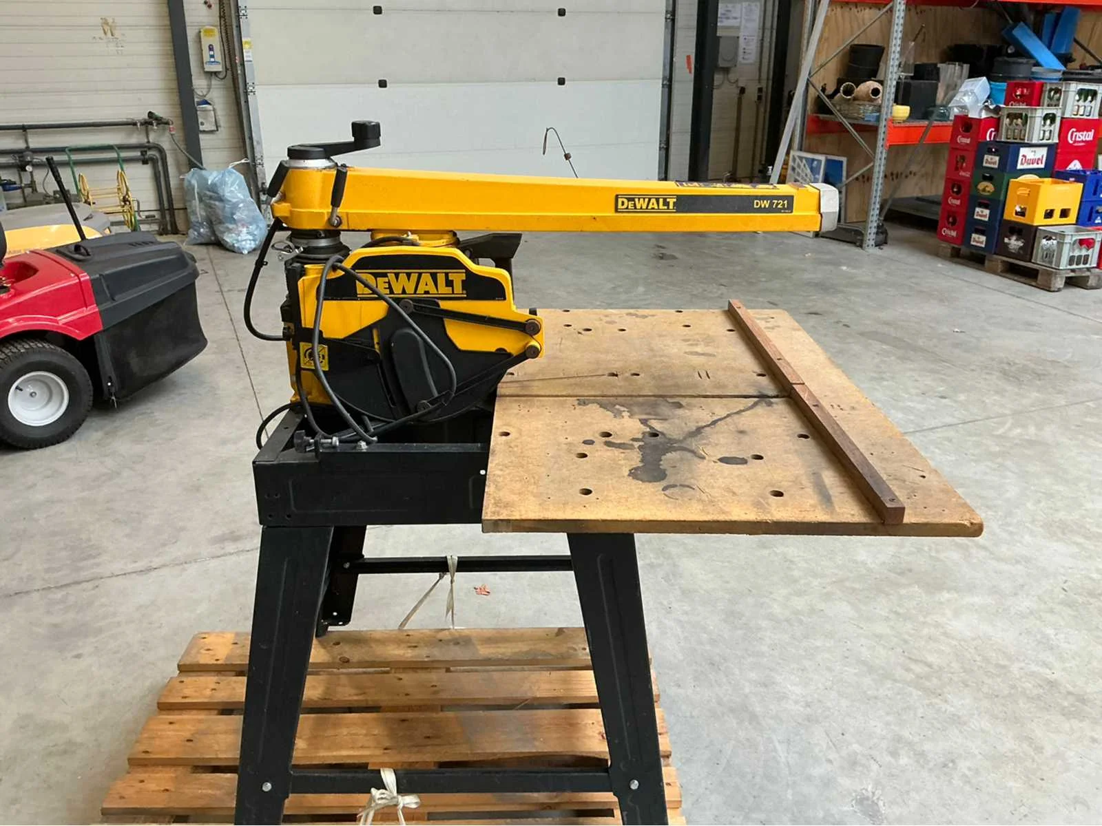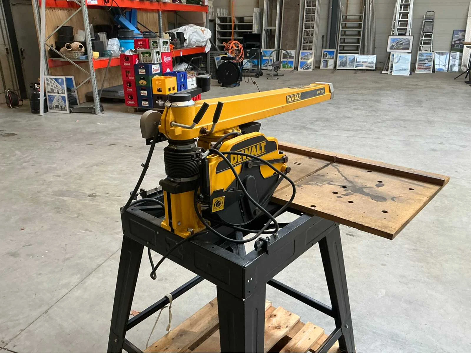 DeWalt DW721 Radiaalzaag (Radial Arm Saw), een klassiek en professioneel model dat vaak in meubelmakerijen en timmerwerkplaatsen gebruikt wordt. Nee Merk: DeWalt Type: DW 721 Serienummer: 00323 Spanning: 230 Vermogen: 2000W Leveringsvoorwaarden: Heftruck aanwezig