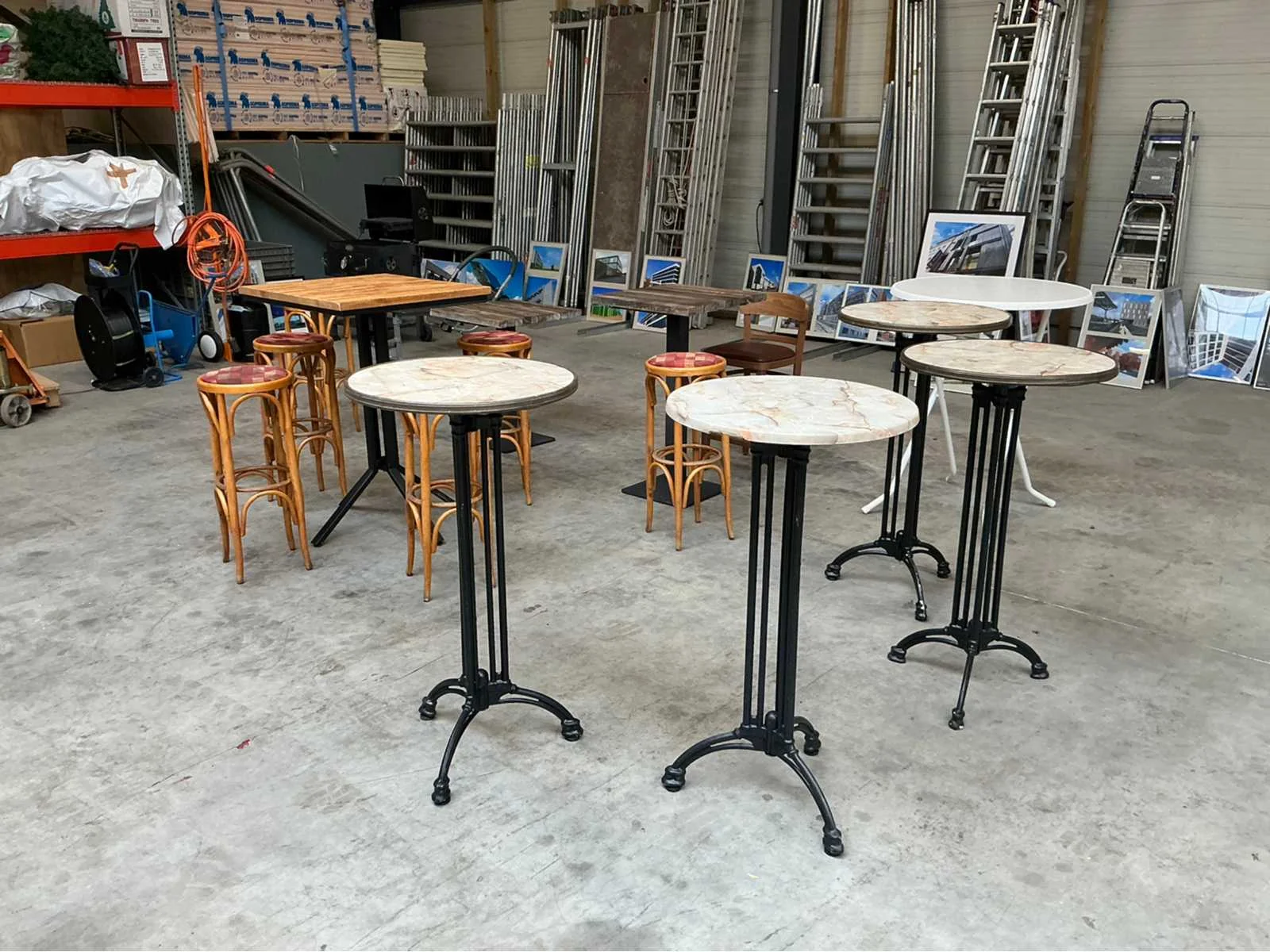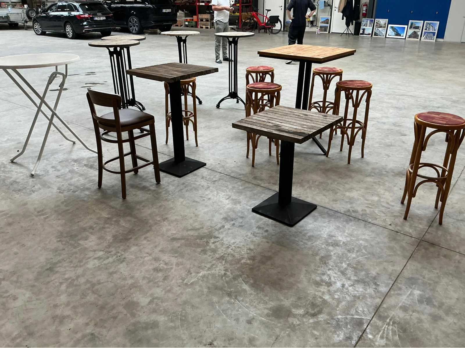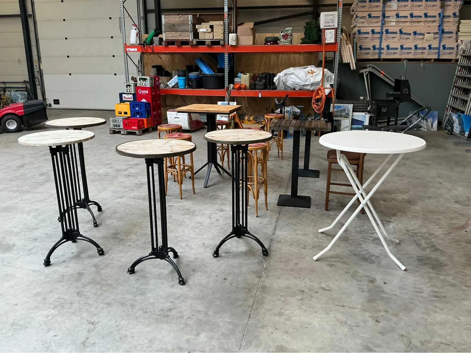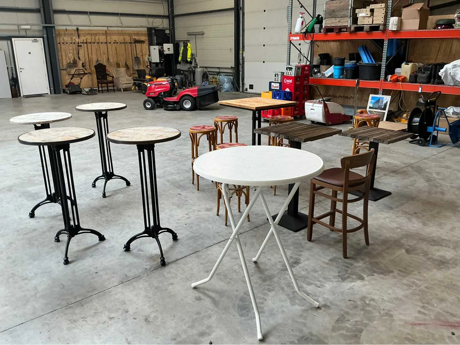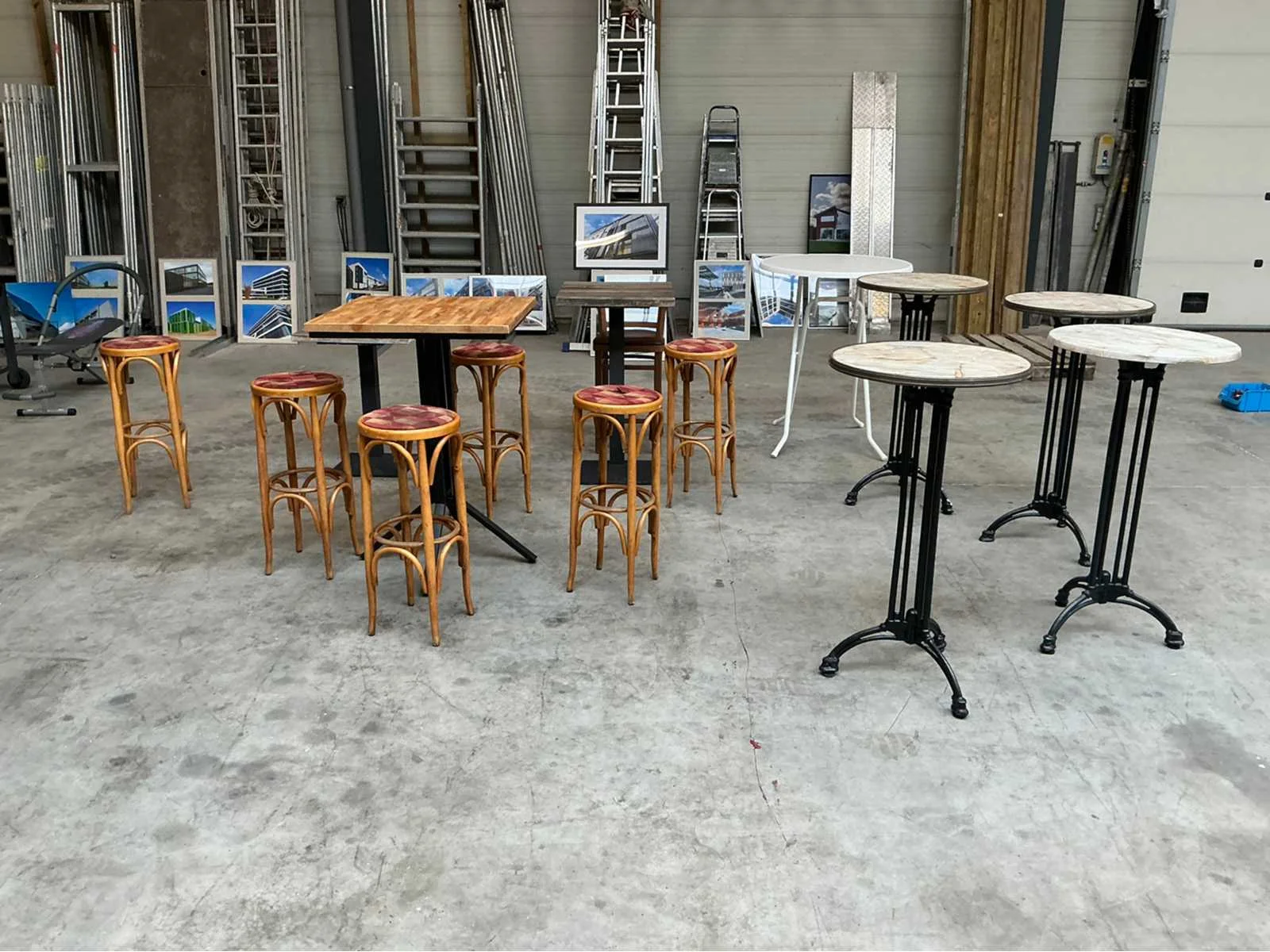 Dit lot bestaande uit meerde statafels en stoelen. Nee