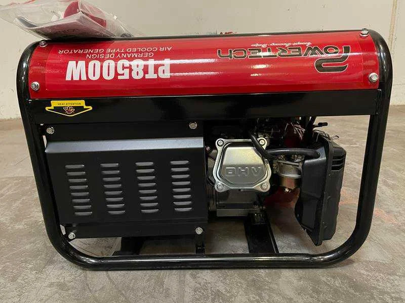 400 -240 V; 3 Ph; 50 Hz; 15L tank; voltmeter; circuit breker; startsleutel; ongebruikt Nee Merk: Powertech Type: PT 8500 Benzine: true Type motor: Powertech Gasoline Aantal cilinders: 1 Motorvermogen (kW): 3kW