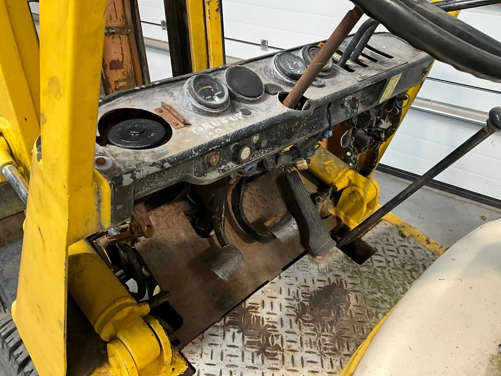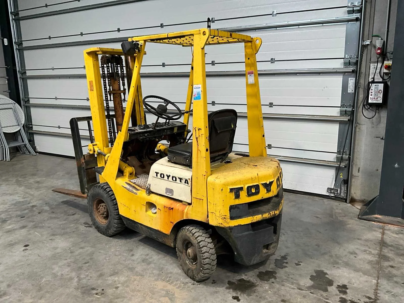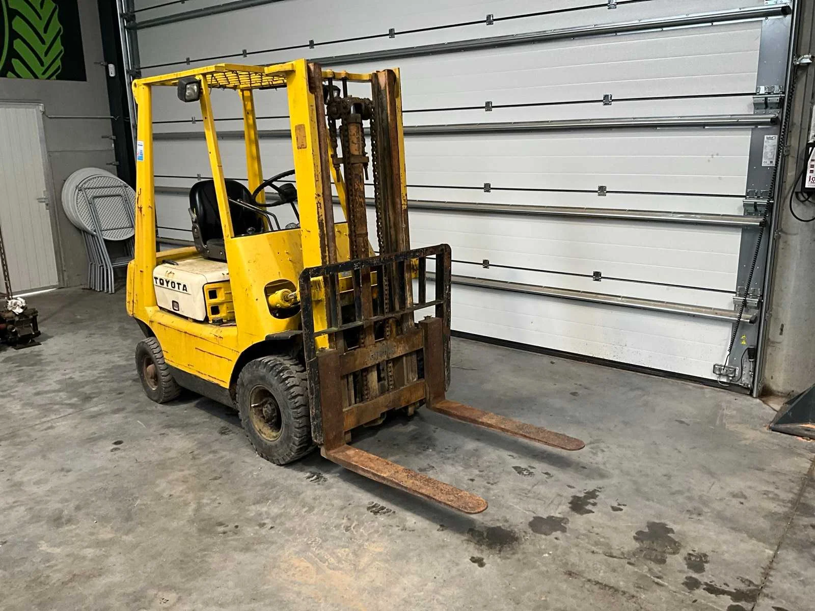 Remmen werken niet - motor uitschakeling werkt niet No Merk: Toyota Type: 2FD15 Bouwjaar: 1989 Brandstof: Diesel Mast: Duplex Soort band: Luchtbanden Aantal wielen: 4 Afgelezen urenstand: 4583 Duplex mast: true Hefvermogen: 1500kg Lepellengte: 900mm Luchtbanden: true Totale afmeting L: 3200mm Totale afmeting Breedte: 1050mm Totale afmeting Hoogte: 2100mm