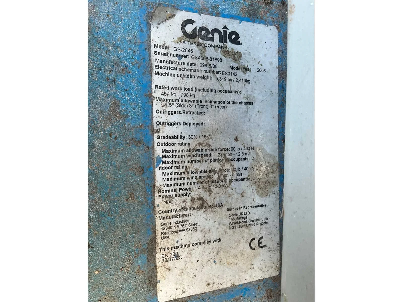 Staat al lang stil, accu’s te vervangen! acculader: ingebouwd opmerking: lade voor accu’s klemt Nee Merk: Genie Type: GS2646 Bouwjaar: 2006 Serienummer: 81898 Elektrisch: true Motorvermogen (kW): 3.3kW Plateau afm. l: 2350mm Plateau afm. b: 980mm Platform capaciteit: 798kg Eigen gewicht: 2413kg Totale afmeting L: 2600mm Totale afmeting Breedte: 1170mm Totale afmeting Hoogte: 2250mm
