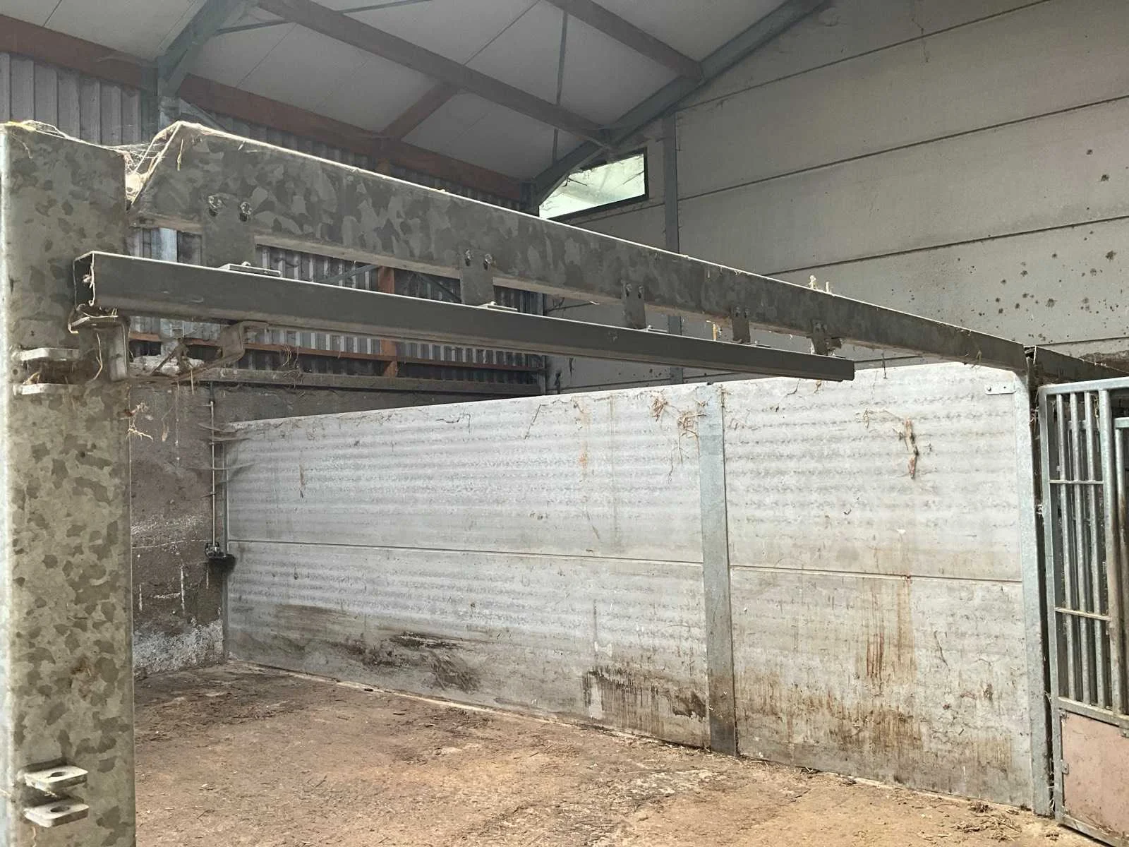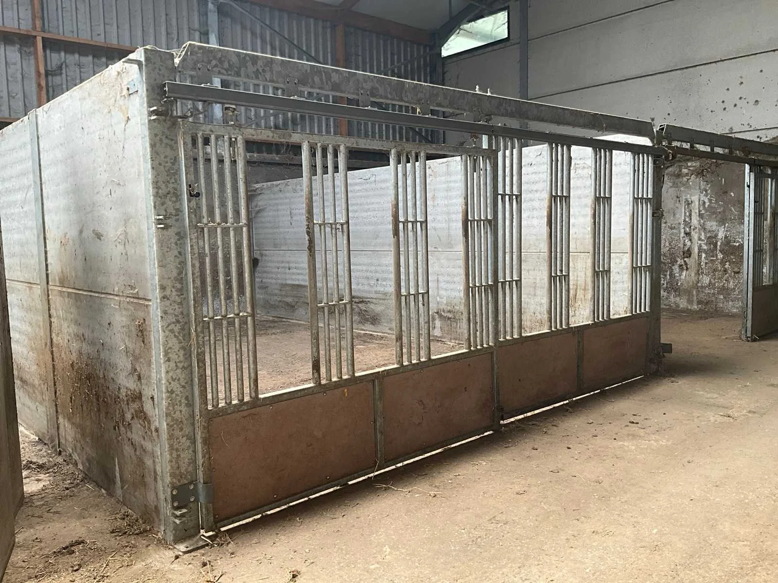 Bestaat uit: steunpaal met scharnier rechts, draaideur, schuifdeur, bijhorende rails breedte stalhok: 4840 mm materiaal: galvanisé, trespa reeds gedemonteerd Nee Merk: Matthys Totale afmeting Breedte: 5000 Totale afmeting Hoogte: 2500