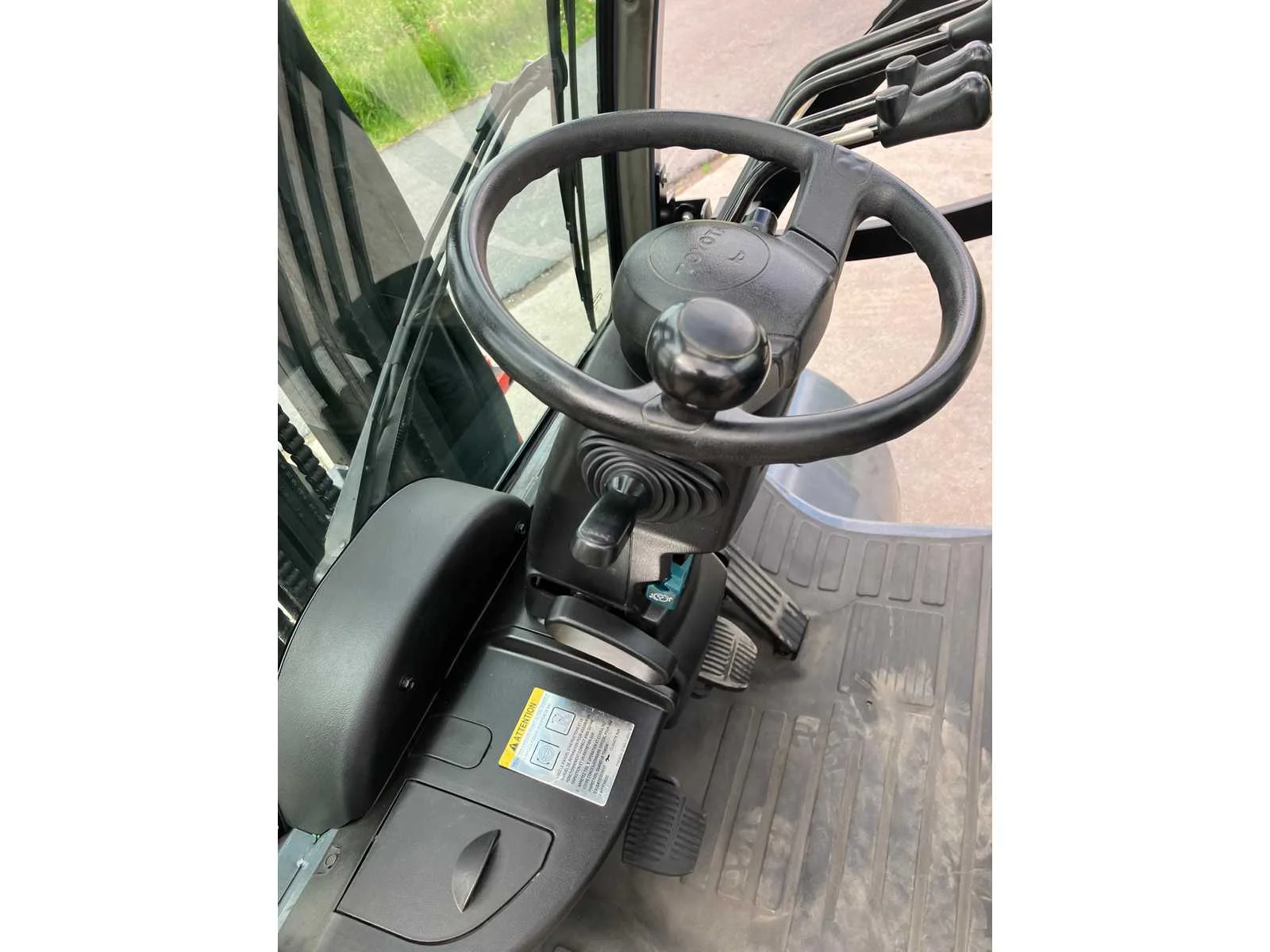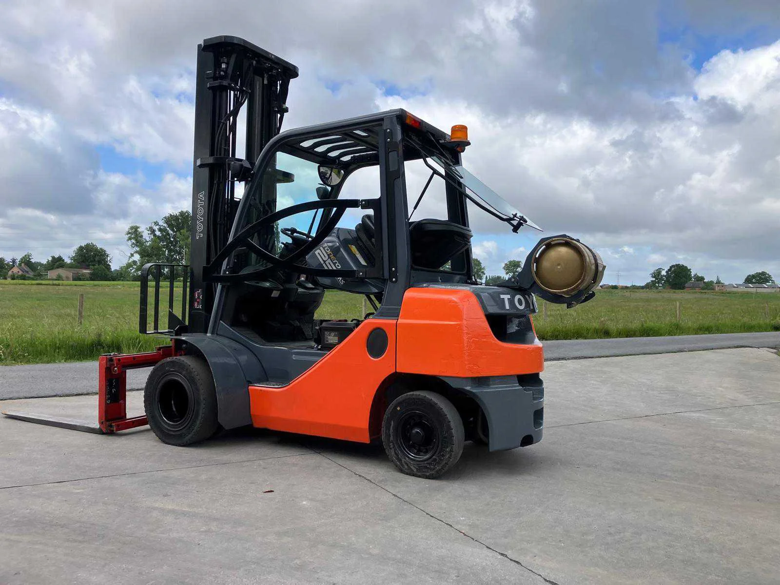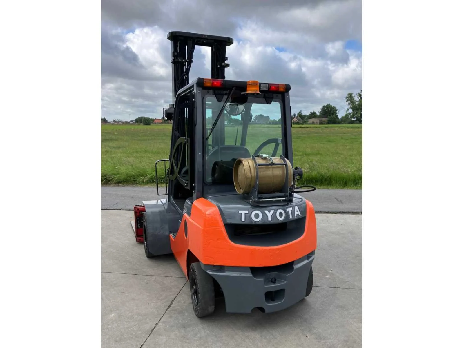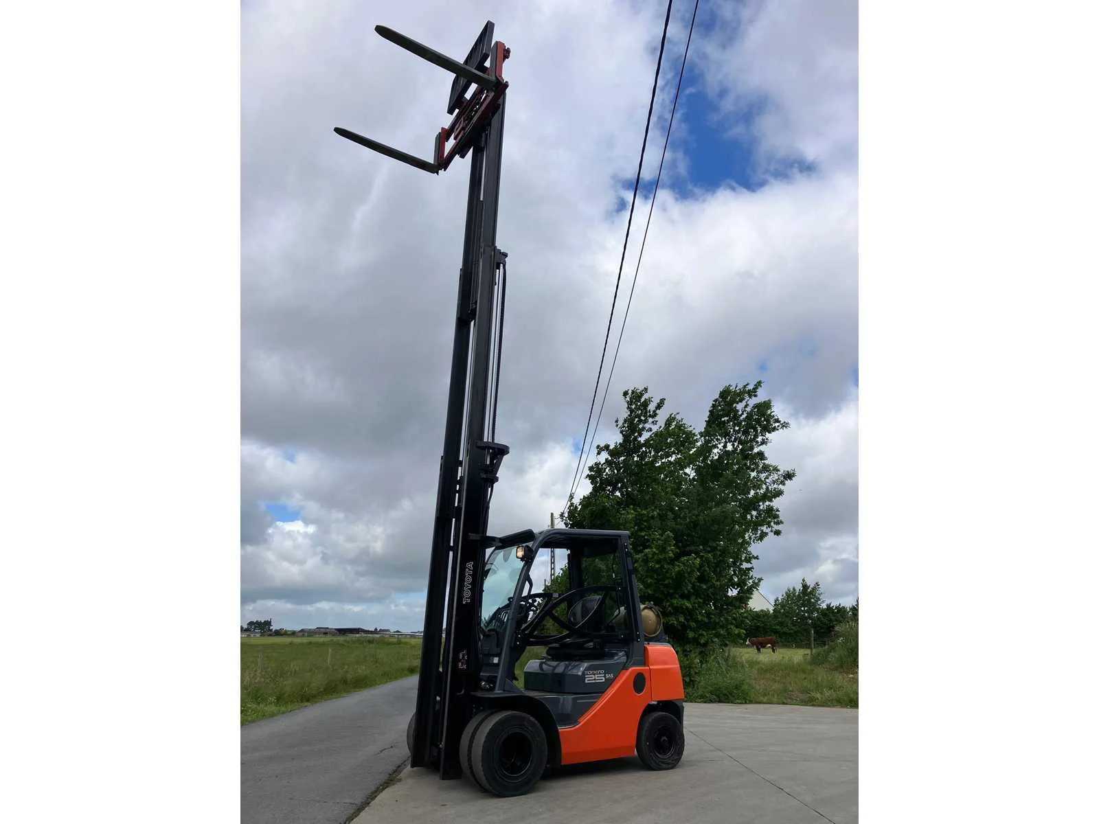 Vermogen: 41 kW , Bolzoni vorkversteller No Merk: Toyota Type: 02-8FGF25 Bouwjaar: 2010 Serienummer: 13392 Brandstof: LPG Mast: triplex Soort band: Volrubber banden Aantal wielen: 4 Afgelezen urenstand: 2779 Side-shift: true Hydraulisch verstelbare lepels: true Triple mast: true Eigen gewicht: 4570kg Hefvermogen: 2500kg Lepellengte: 1200mm Min. hefhoogte: 0mm Max. hefhoogte: 6500mm Hefhoogte: 6500mm Vol rubber banden: true Minimale doorrijhoogte: 0mm Totale afmeting L: 2800mm Totale afmeting Breedte: 1100mm Totale afmeting Hoogte: 3000mm LPG: true