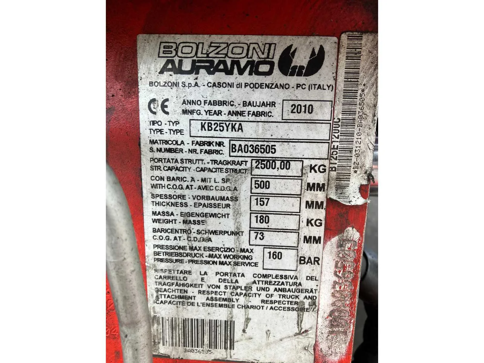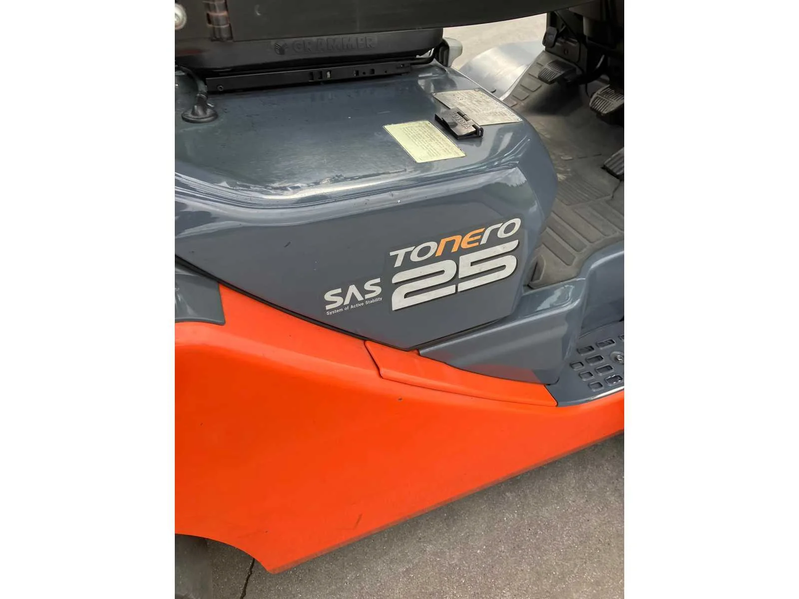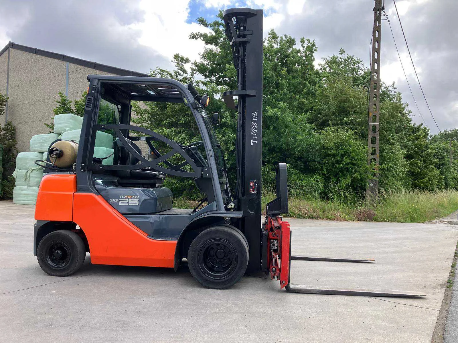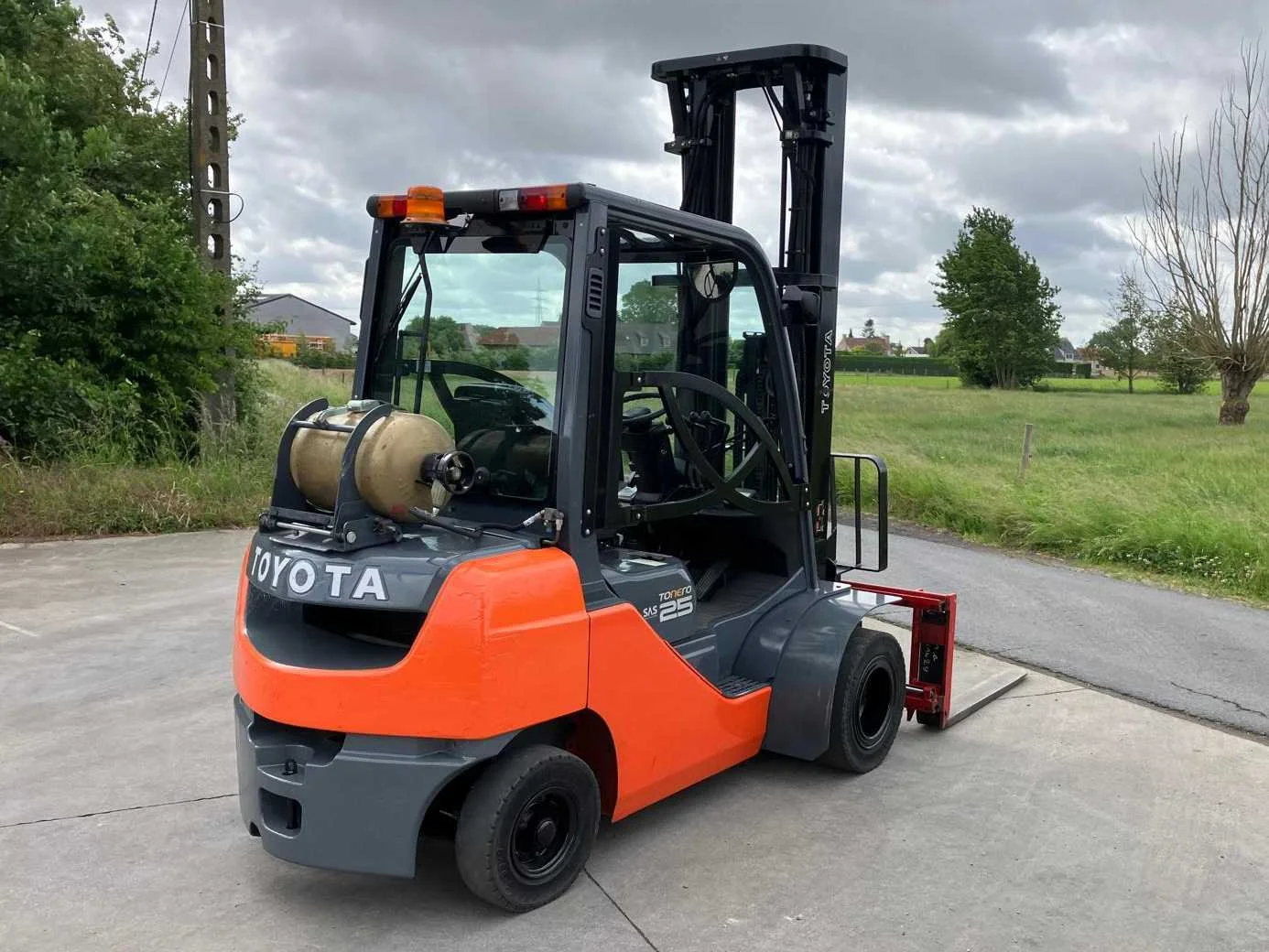 Vermogen: 41 kW , Bolzoni vorkversteller No Merk: Toyota Type: 02-8FGF25 Bouwjaar: 2010 Serienummer: 13392 Brandstof: LPG Mast: triplex Soort band: Volrubber banden Aantal wielen: 4 Afgelezen urenstand: 2779 Side-shift: true Hydraulisch verstelbare lepels: true Triple mast: true Eigen gewicht: 4570kg Hefvermogen: 2500kg Lepellengte: 1200mm Min. hefhoogte: 0mm Max. hefhoogte: 6500mm Hefhoogte: 6500mm Vol rubber banden: true Minimale doorrijhoogte: 0mm Totale afmeting L: 2800mm Totale afmeting Breedte: 1100mm Totale afmeting Hoogte: 3000mm LPG: true