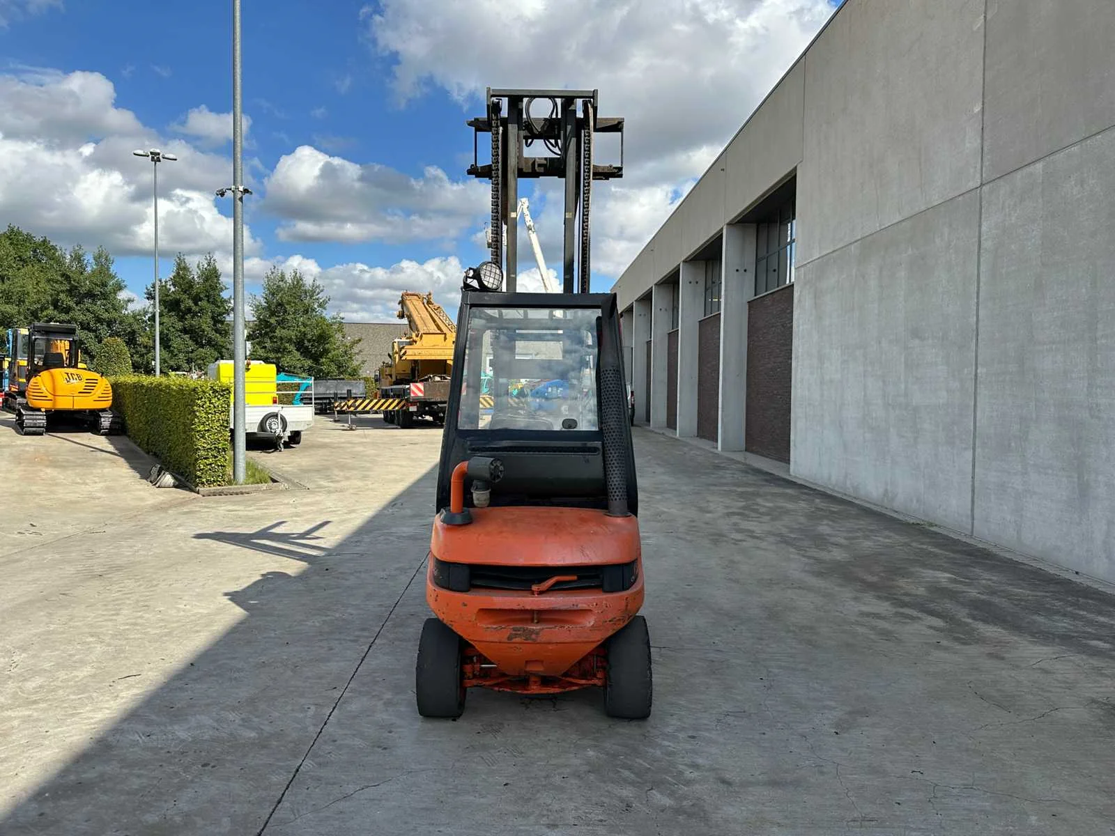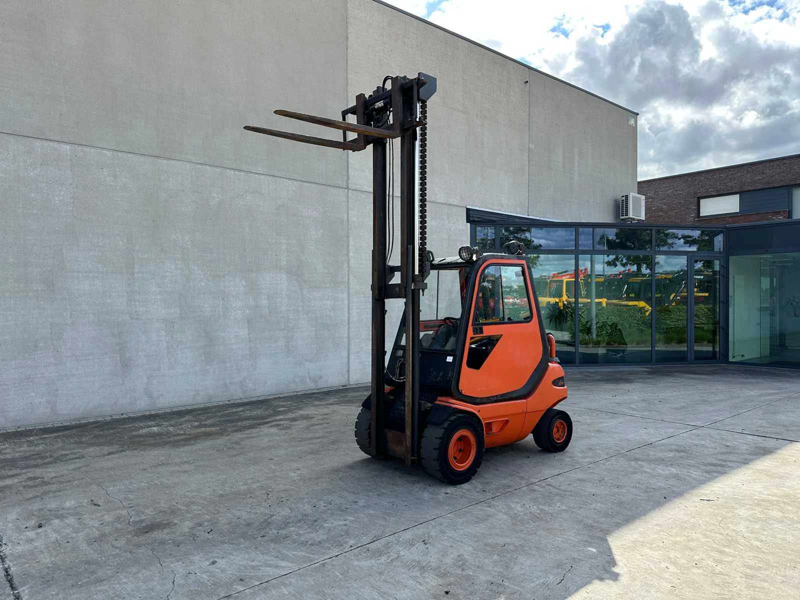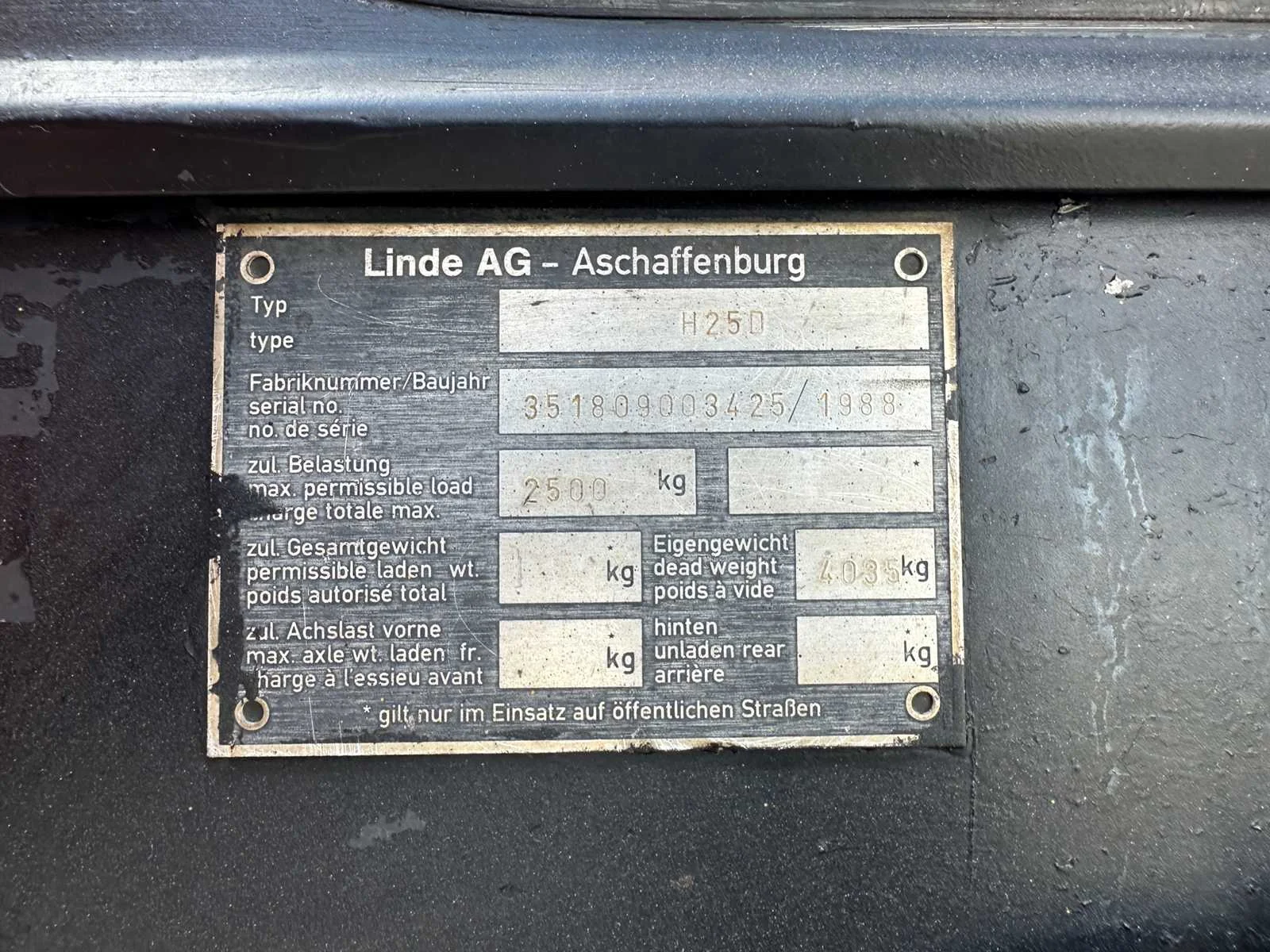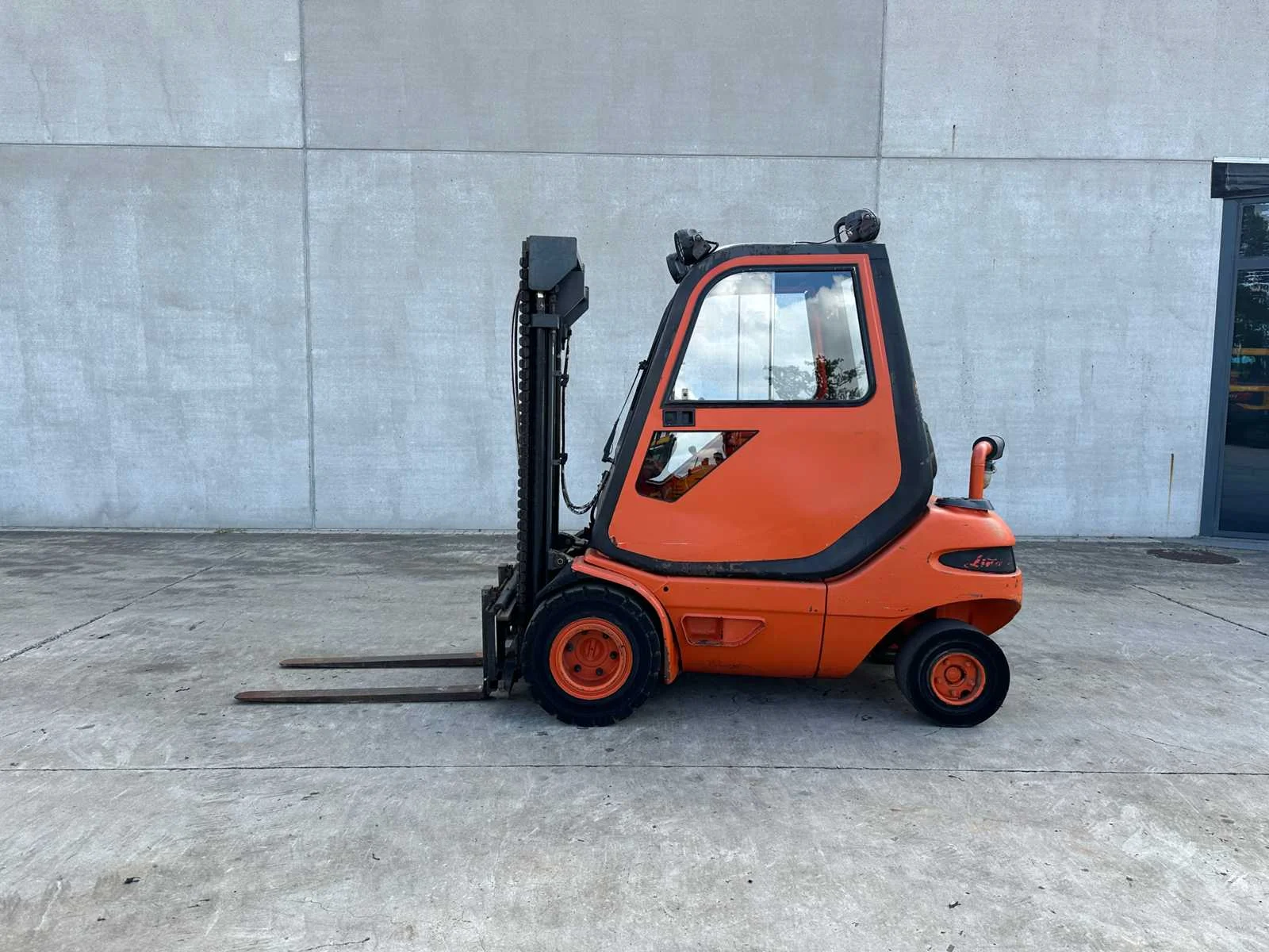 Nee Merk: Linde Type: H25D Bouwjaar: 1988 Serienummer: 351809003425 Brandstof: Diesel Mast: duplex Soort band: vol rubber Aantal wielen: 4 Afgelezen urenstand: 27009 Side-shift: true Duplex mast: true Eigen gewicht: 4035kg Hefvermogen: 2500kg Lepellengte: 1200mm Max. hefhoogte: 4000mm Hefhoogte: 3500mm Vol rubber banden: true Totale afmeting L: 2000mm Totale afmeting Breedte: 1400mm Totale afmeting Hoogte: 2500mm Diesel: true