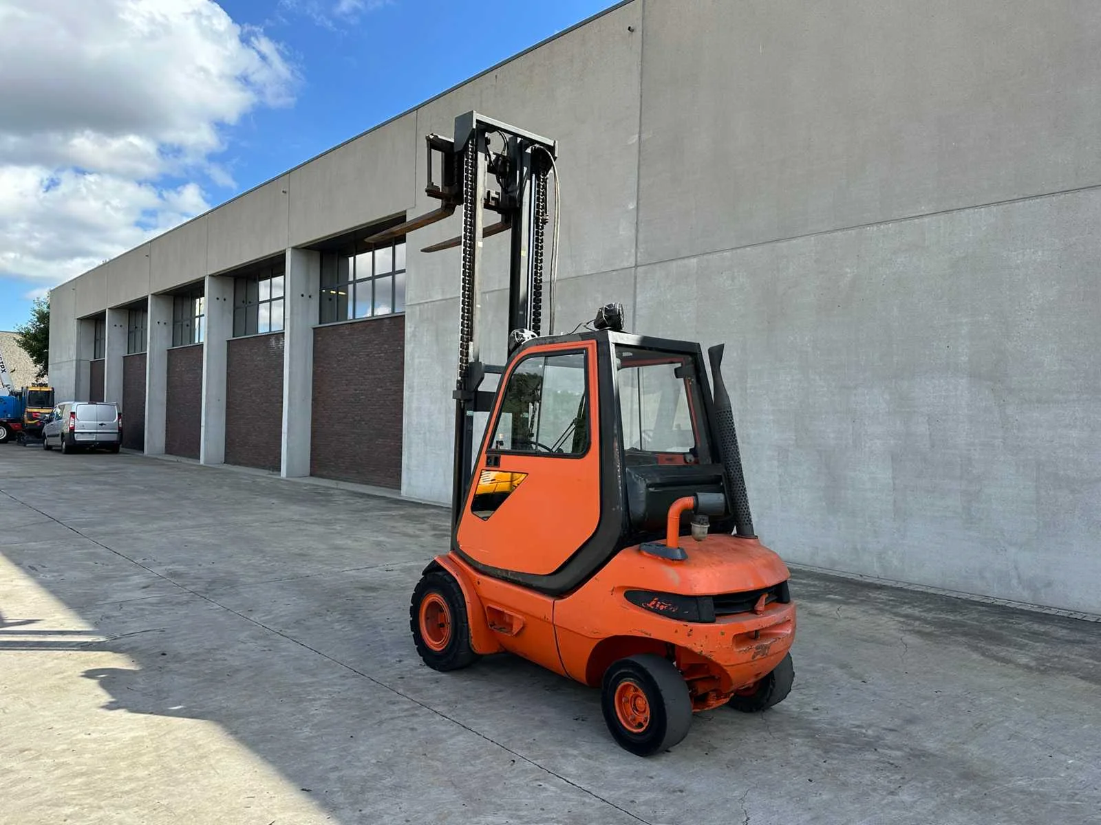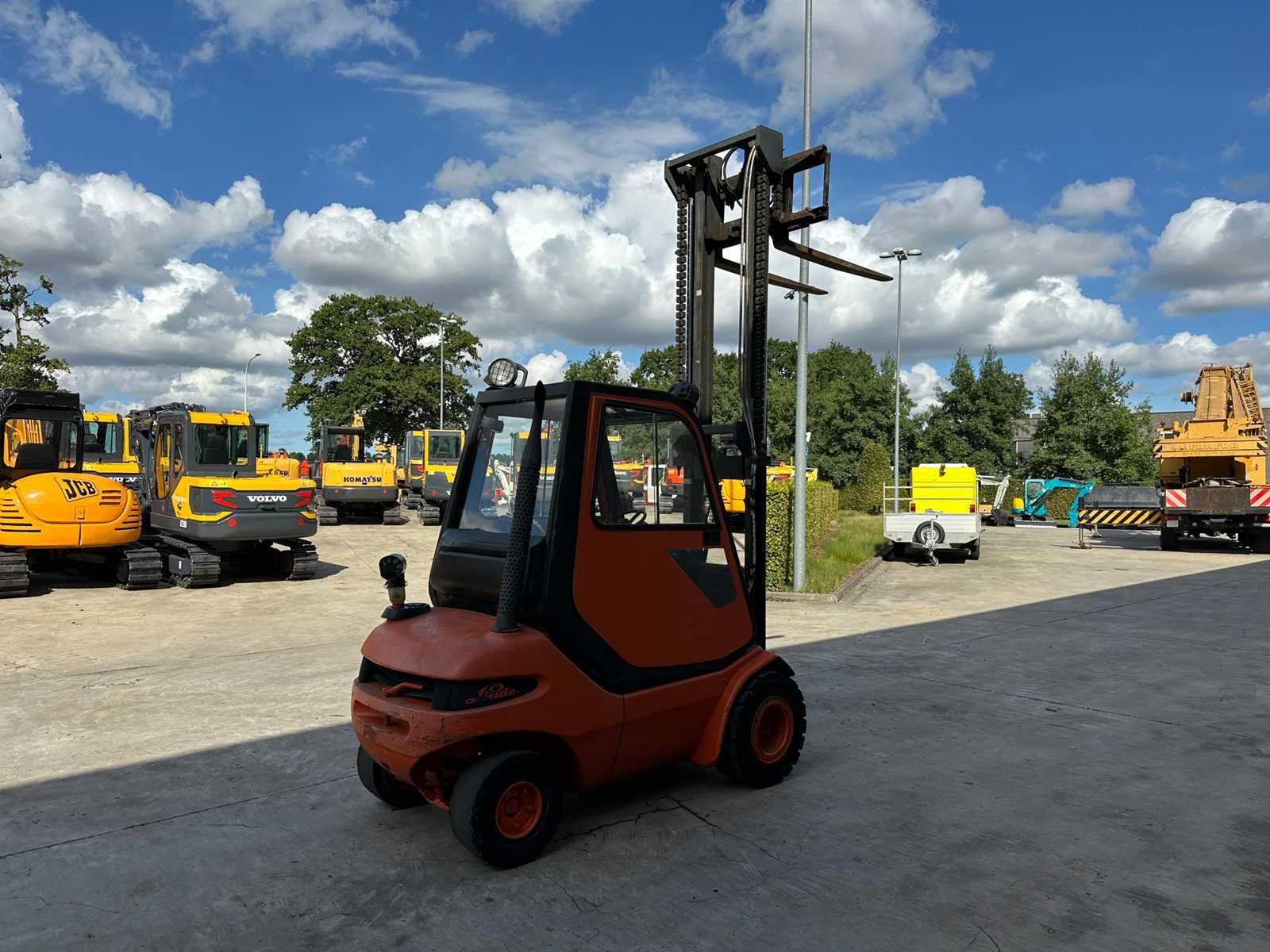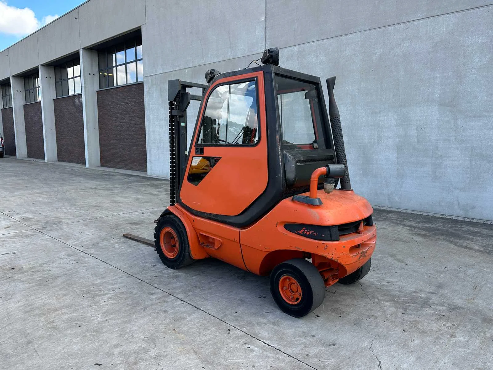 Nee Merk: Linde Type: H25D Bouwjaar: 1988 Serienummer: 351809003425 Brandstof: Diesel Mast: duplex Soort band: vol rubber Aantal wielen: 4 Afgelezen urenstand: 27009 Side-shift: true Duplex mast: true Eigen gewicht: 4035kg Hefvermogen: 2500kg Lepellengte: 1200mm Max. hefhoogte: 4000mm Hefhoogte: 3500mm Vol rubber banden: true Totale afmeting L: 2000mm Totale afmeting Breedte: 1400mm Totale afmeting Hoogte: 2500mm Diesel: true