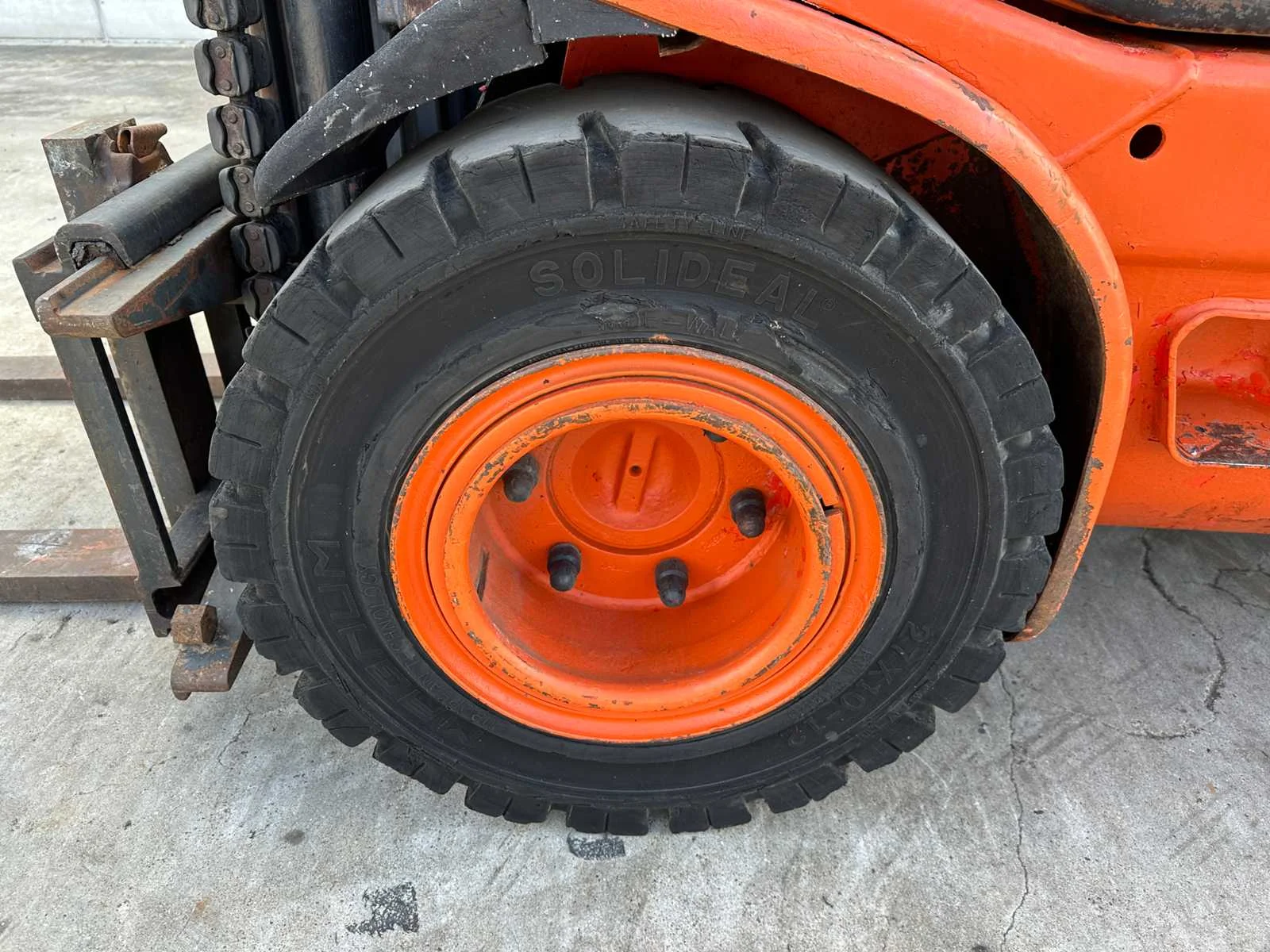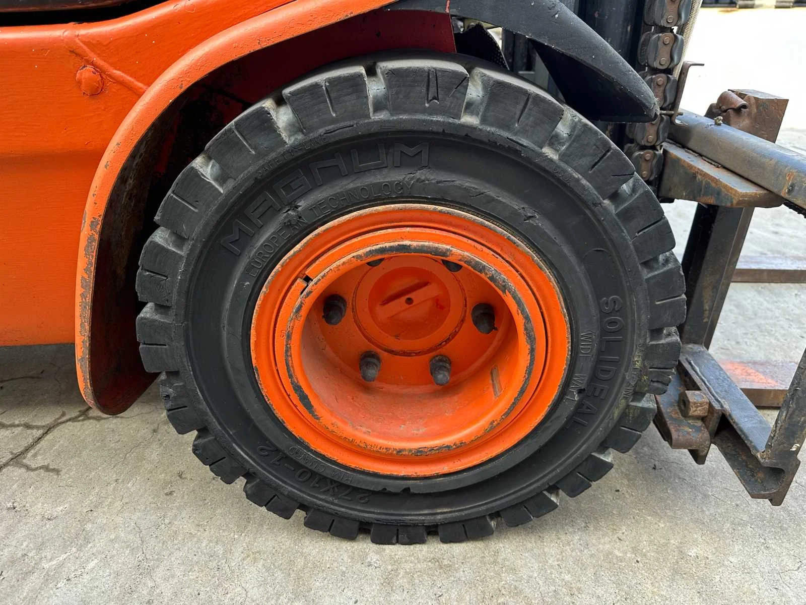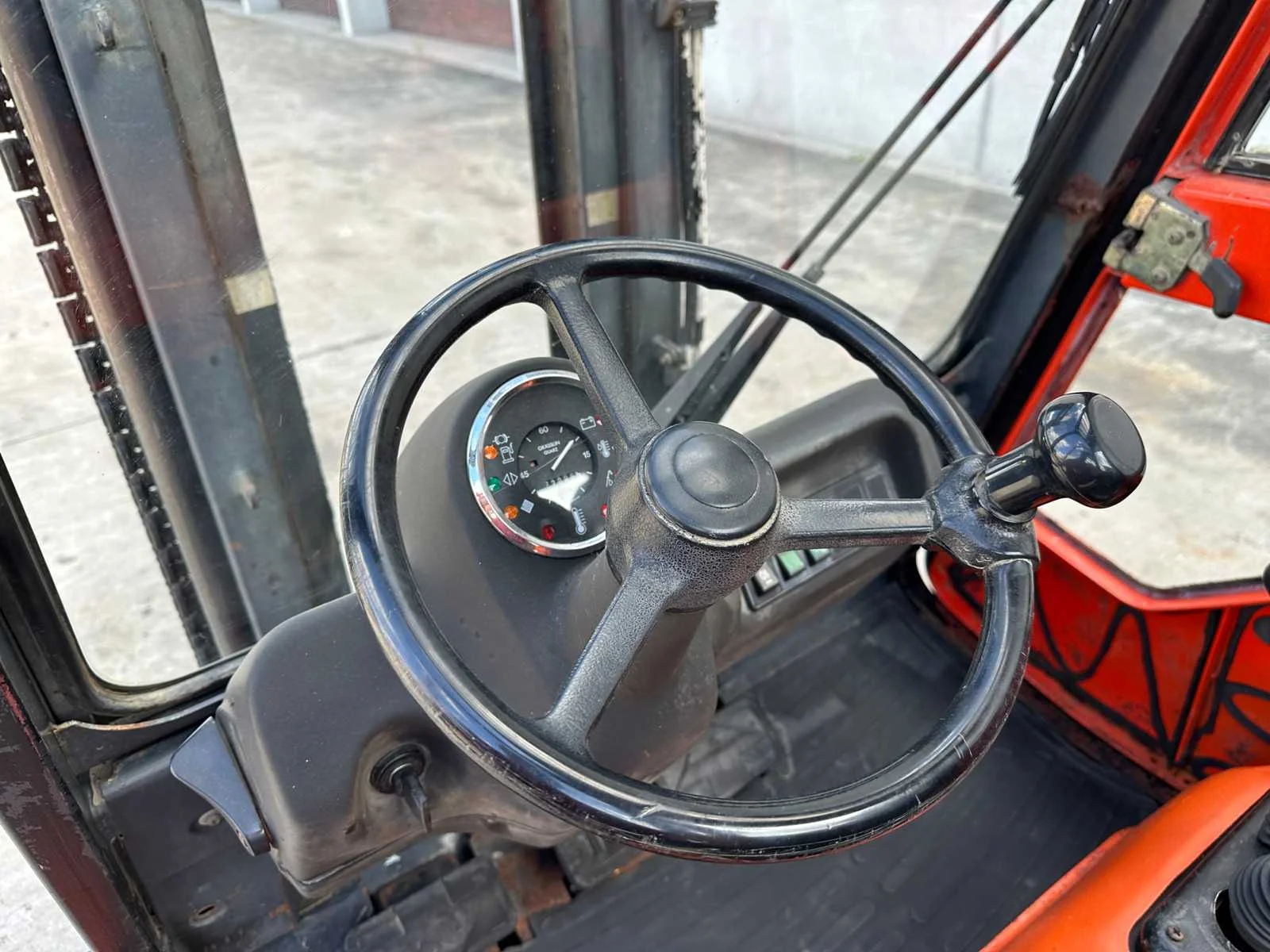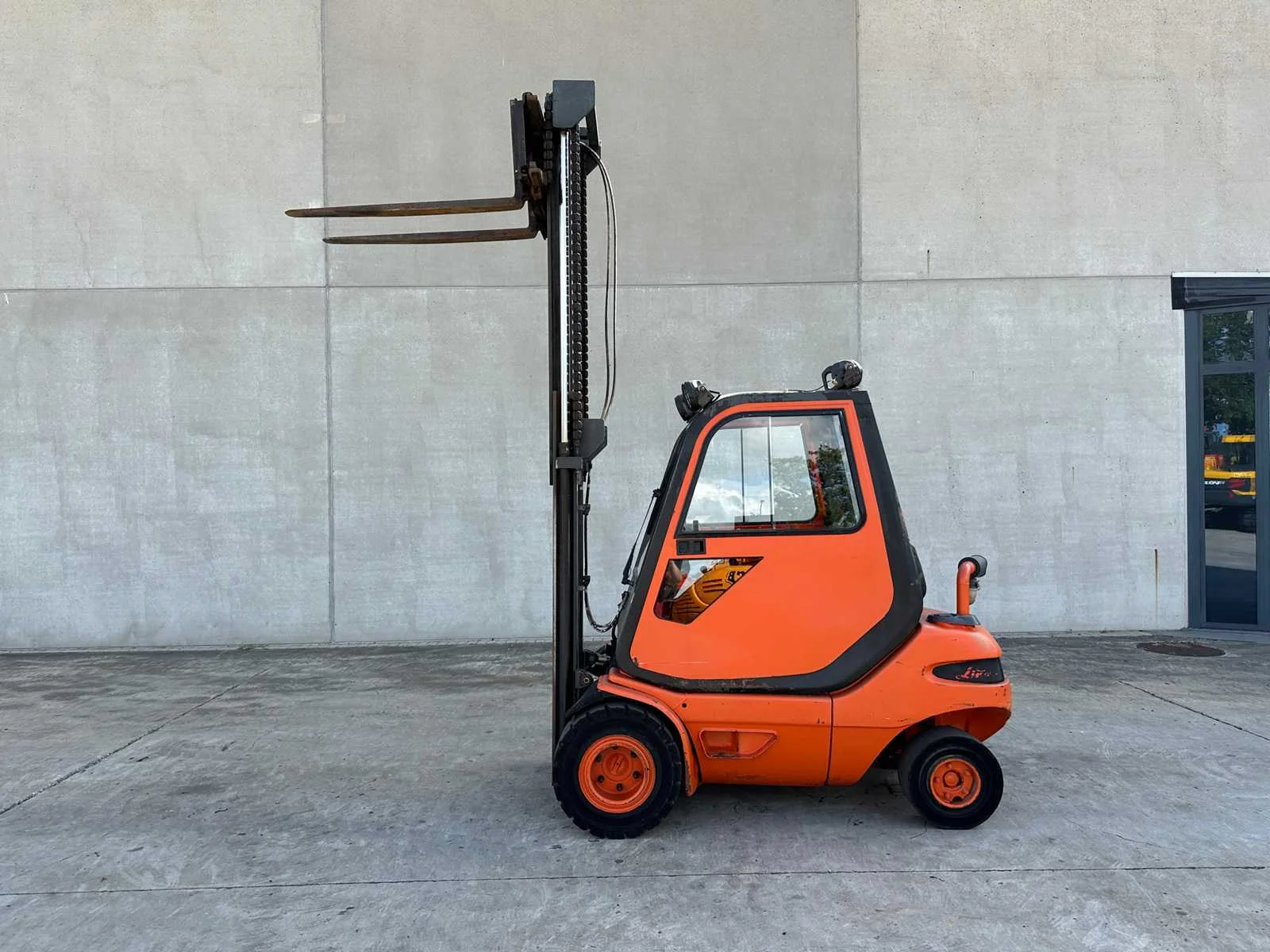 Nee Merk: Linde Type: H25D Bouwjaar: 1988 Serienummer: 351809003425 Brandstof: Diesel Mast: duplex Soort band: vol rubber Aantal wielen: 4 Afgelezen urenstand: 27009 Side-shift: true Duplex mast: true Eigen gewicht: 4035kg Hefvermogen: 2500kg Lepellengte: 1200mm Max. hefhoogte: 4000mm Hefhoogte: 3500mm Vol rubber banden: true Totale afmeting L: 2000mm Totale afmeting Breedte: 1400mm Totale afmeting Hoogte: 2500mm Diesel: true