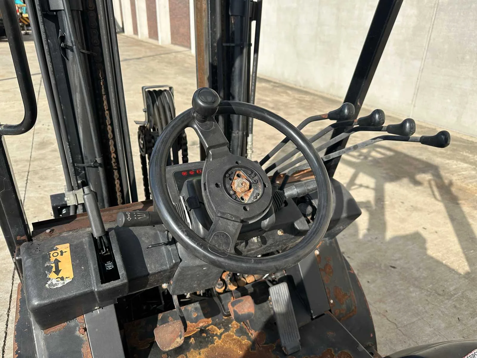 Afmeting zonder vorken : L 2750 x B 1250 x H 2150 mm Afmeting met vorken : L 3900 x B 1250 x H 2150 mm Geen documten Nee Merk: HANGCHA Type: CPCD 30 T8 Bouwjaar: 2017 Serienummer: 526140334 Brandstof: Diesel Aantal wielen: 4 Afgelezen urenstand: 7919 Side-shift: true Triple mast: true Eigen gewicht: 4620kg Hefvermogen: 2800kg Lepellengte: 1150mm Max. hefhoogte: 4700mm Vol rubber banden: true Minimale doorrijhoogte: 2150mm Totale afmeting L: 2750mm Totale afmeting Breedte: 1250mm Diesel: true