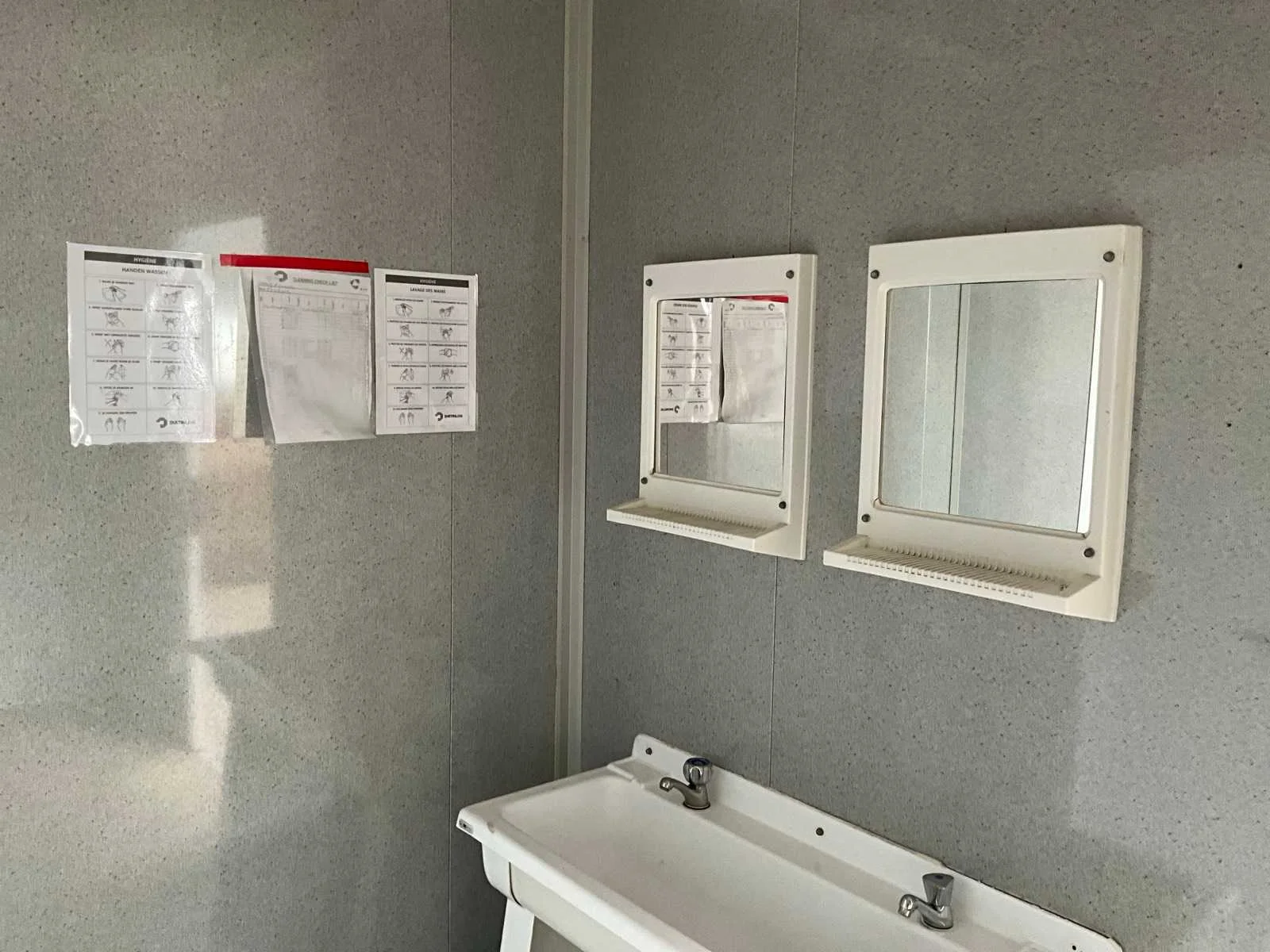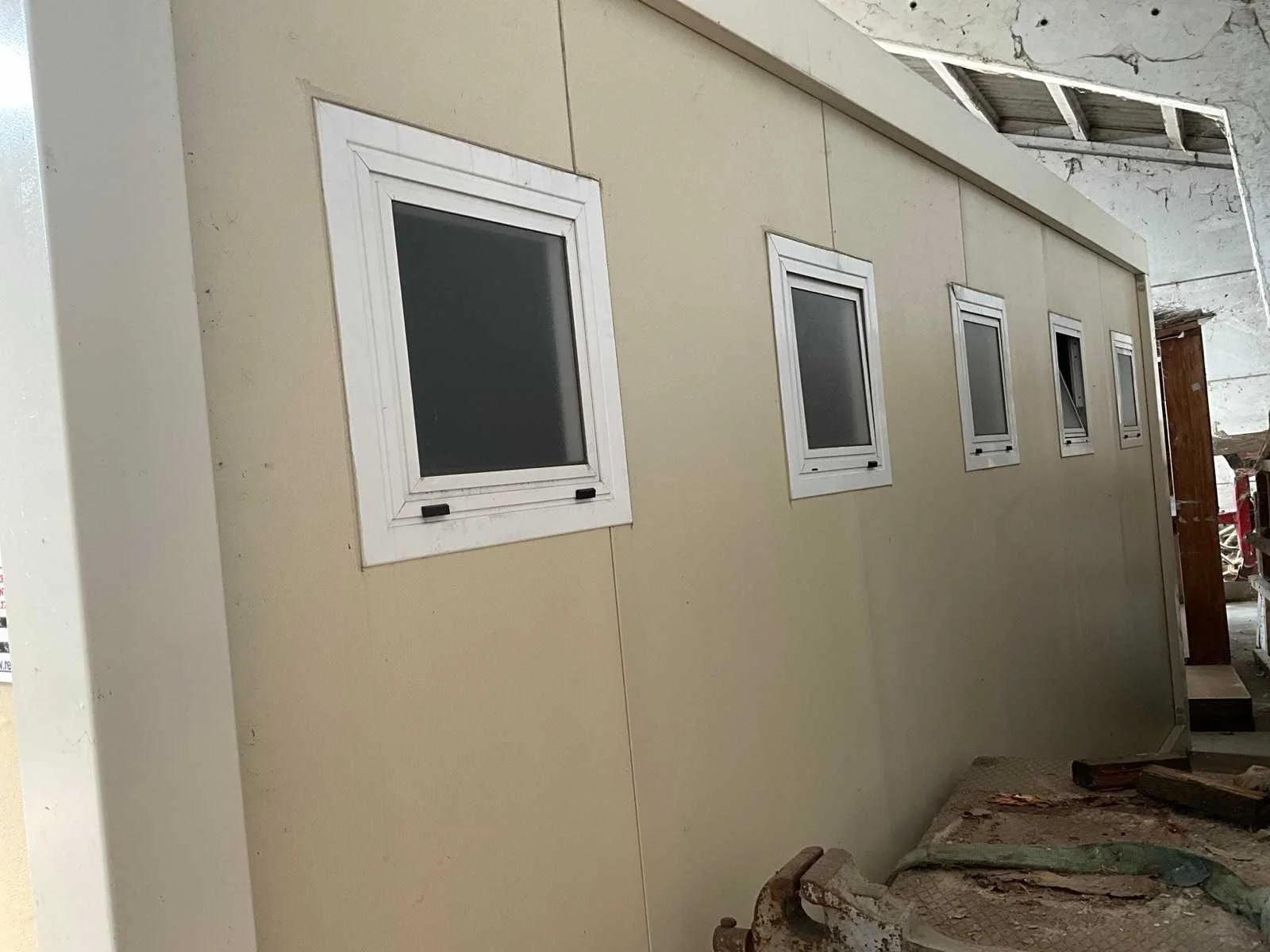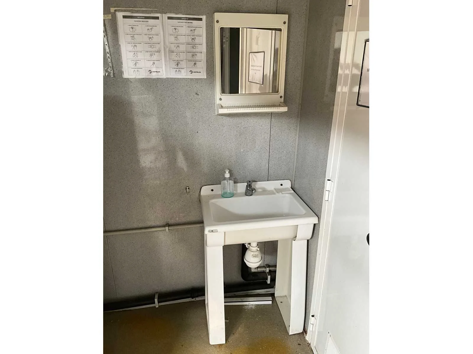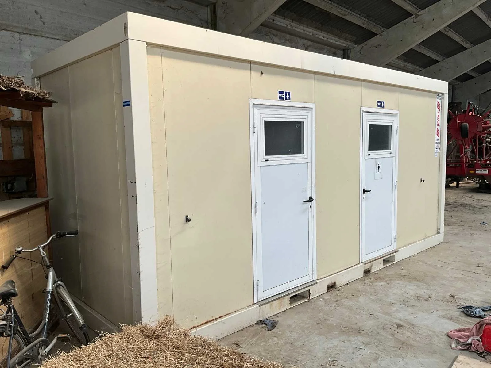 Voorzien van: twistlock bevestiging, heftruck kokers, 2 compartimenten Aantal toiletten: 5 aantal urinoirs: 2 aansluiting: 220 V Nee Merk: Real Type: U332 Serienummer: 62162 Afmeting l: 2500mm Afmeting b: 6000mm Afmeting h: 2830mm Aantal ramen: 5 Aantal wastafels: 2