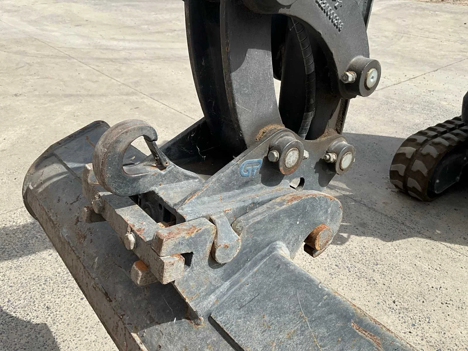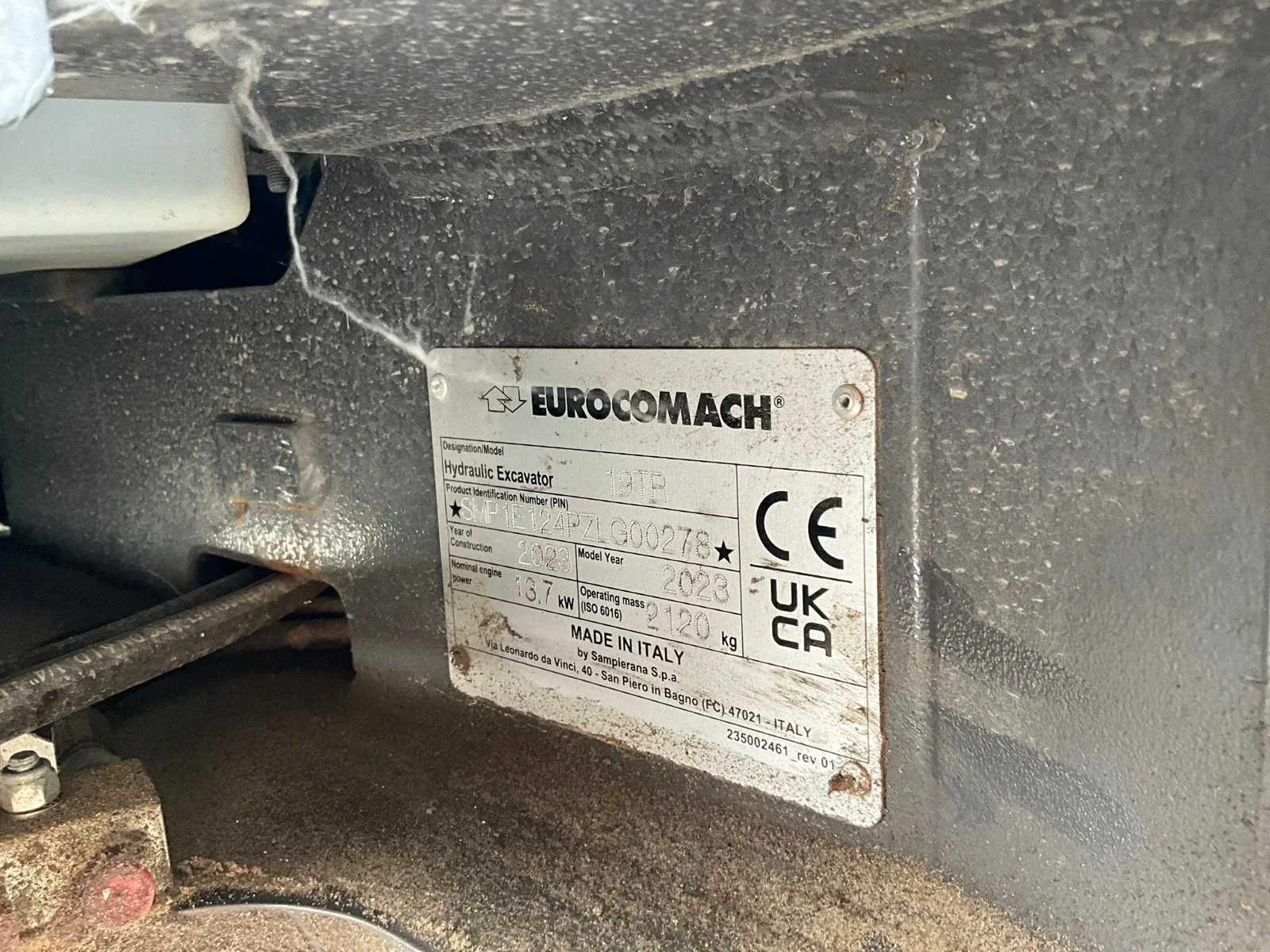 Voorzien van: 3 delige giek, automatische snelwissel, LED verlichting, 2x extra hydraulische functie breedte duwblad: 1300 mm Nee Merk: Eurocomach Type: 19TR Bouwjaar: 2023 Serienummer: SMP1E124PZLG00278 Motorvermogen (kW): 13.7kW Brandstof: Diesel Gieklengte: 3300mm Met graafbak: true Graafbak afm. l: 240mm Graafbak afm. b: 1000mm Graafbak afm. h: 390mm Rups breedte: 235mm Cabine: true Afgelezen urenstand: 94 Eigen gewicht: 2120kg Totale afmeting L: 3550mm Totale afmeting Breedte: 1300mm Totale afmeting Hoogte: 2450mm