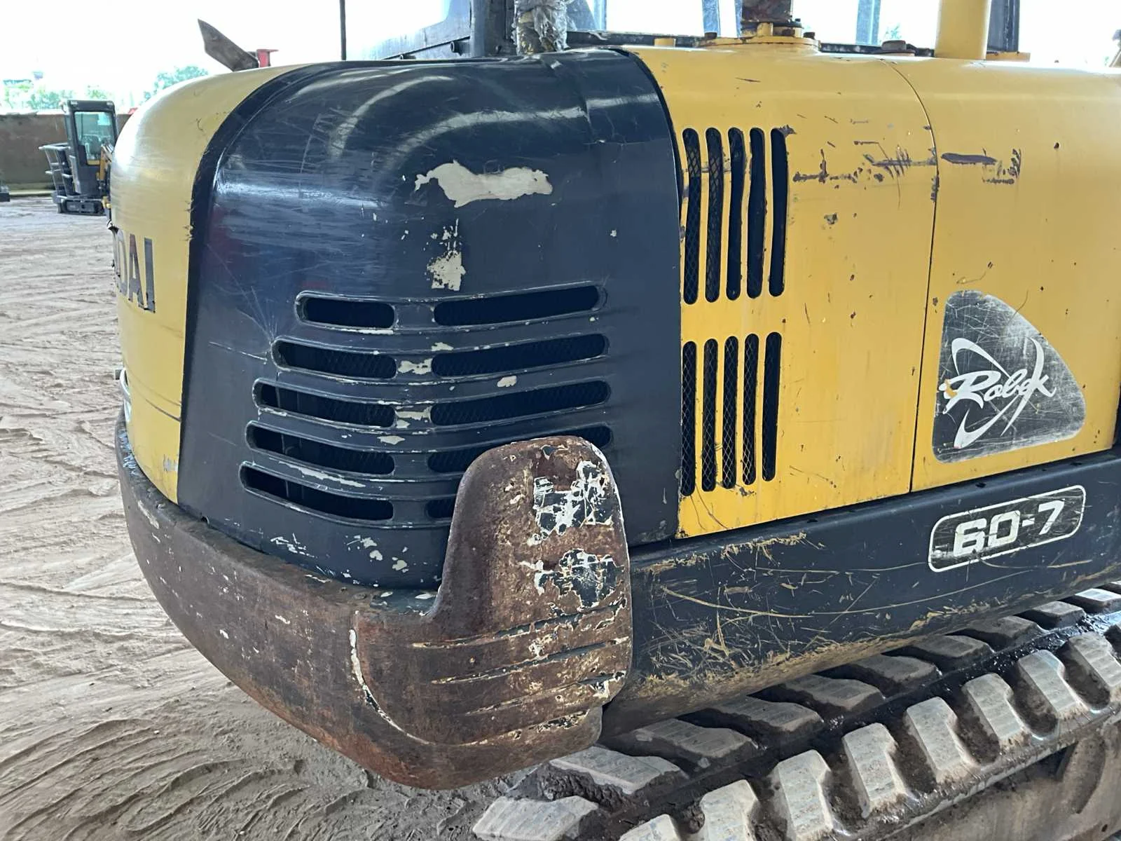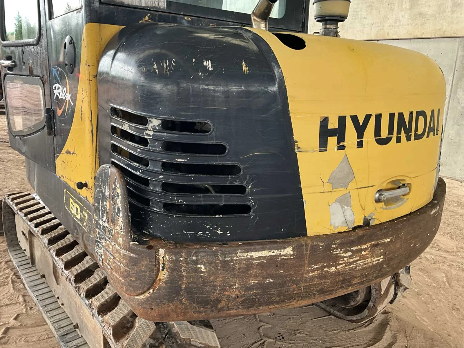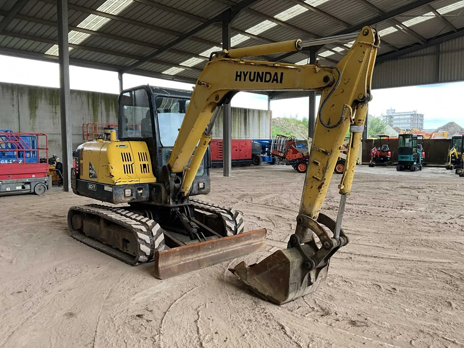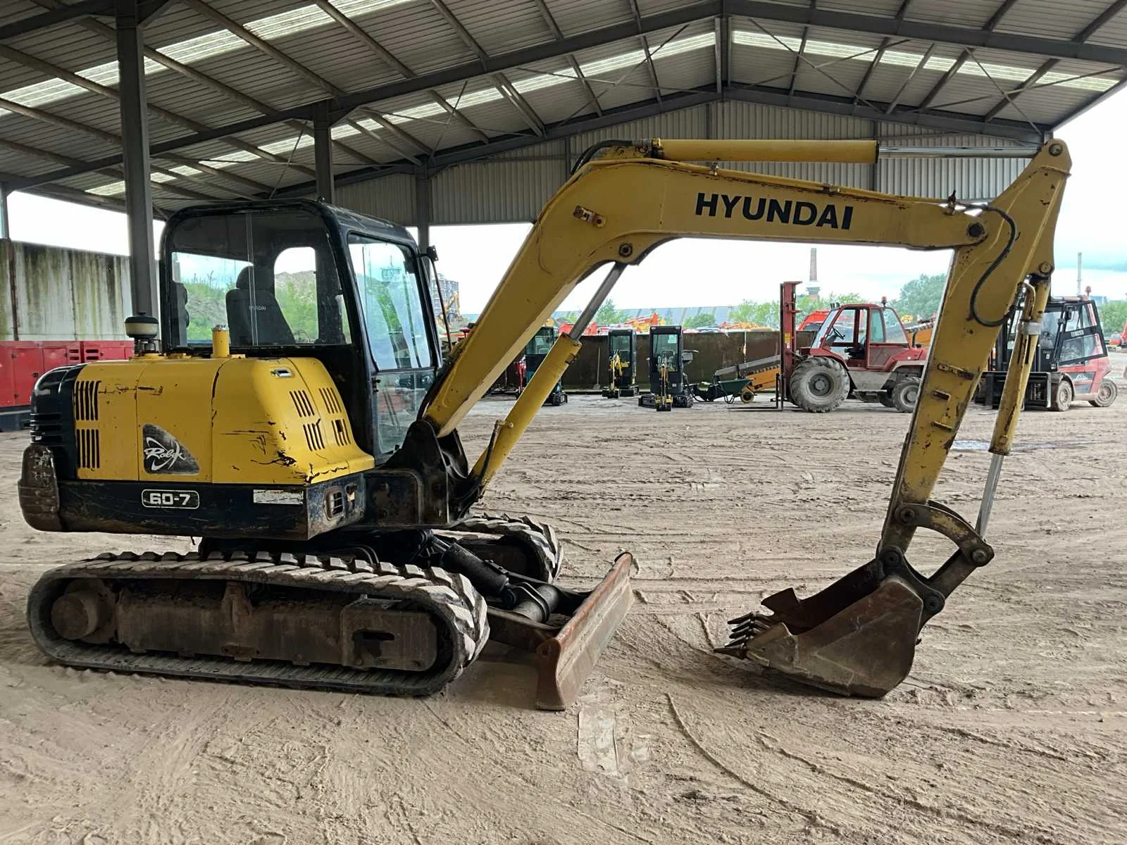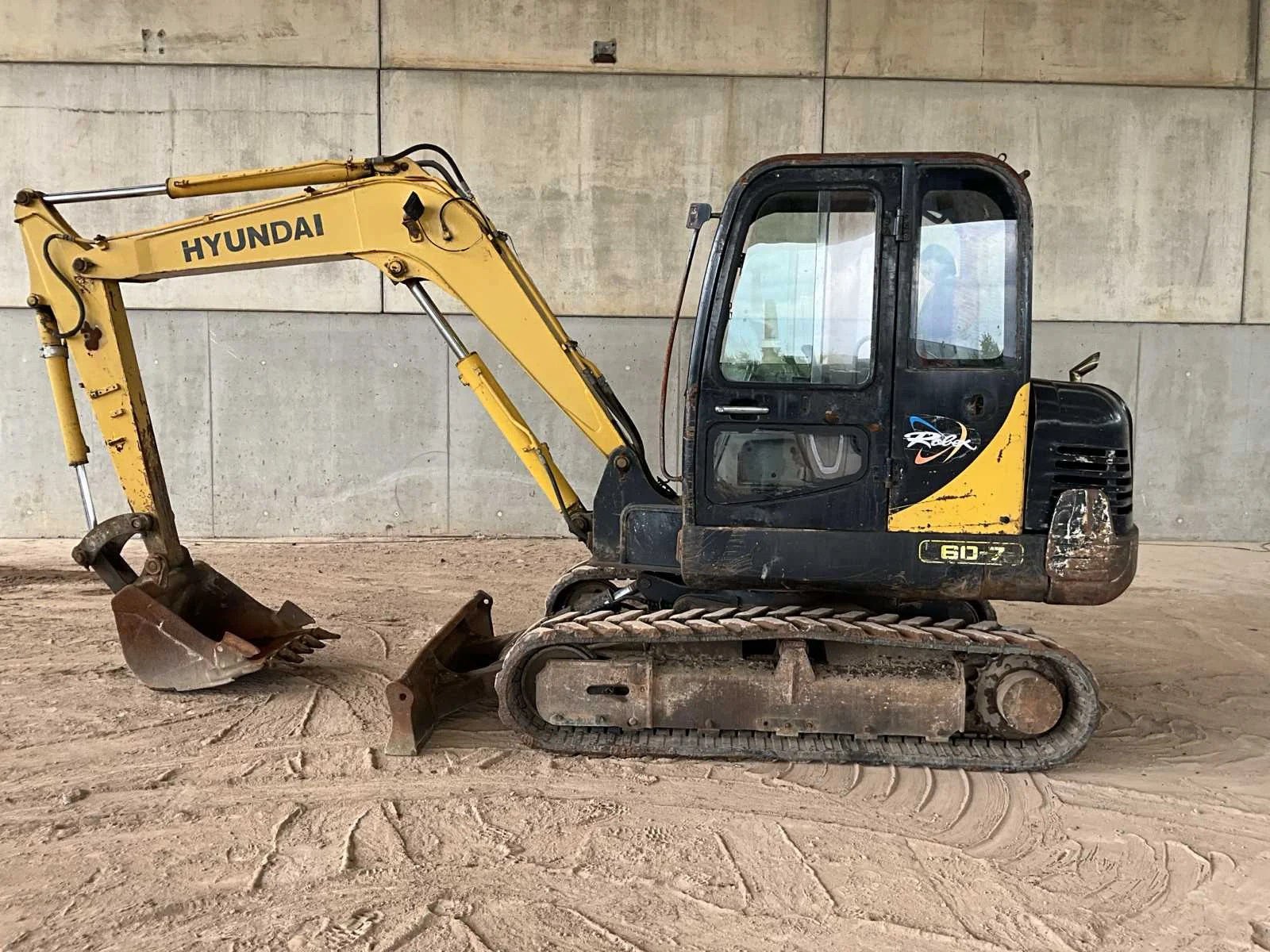 Dozerblad, sleutel aanwezig, gebruikssporen, Nee Merk: Hyundai Type: R60-7 Bouwjaar: 2013 Serienummer: 906•••7484 Motorvermogen (kW): 40.00kW Aantal cilinders: 4 Brandstof: Diesel Bedrijfsgewicht: 5850kg Met graafbak: true Graafbak afm. b: 730mm Rups breedte: 400mm Cabine: true Afgelezen urenstand: 2056 Totale afmeting Breedte: 2000mm