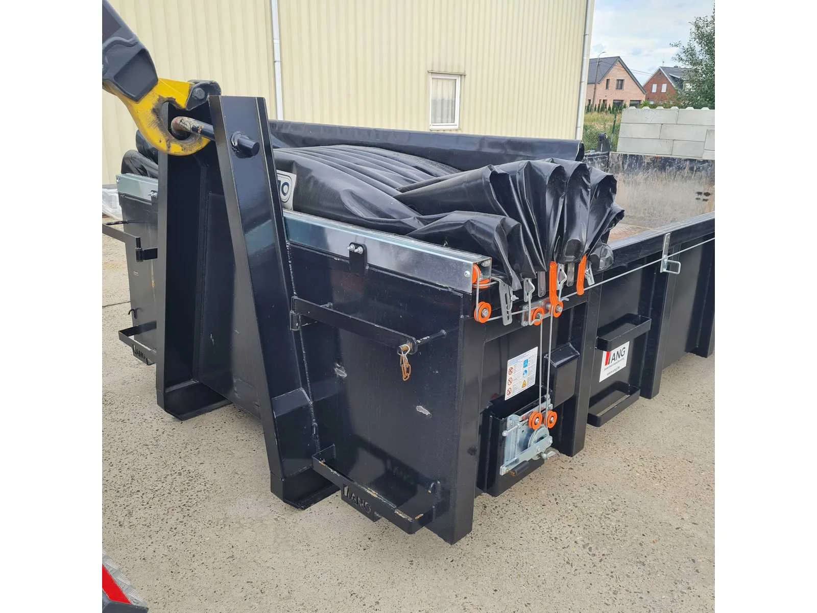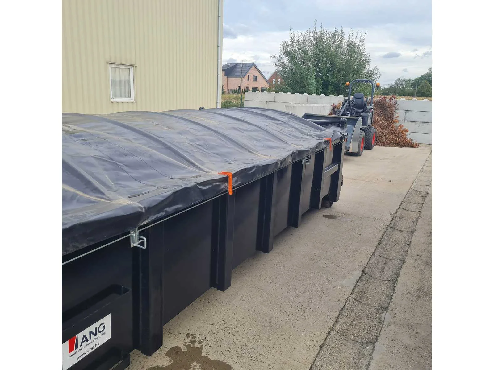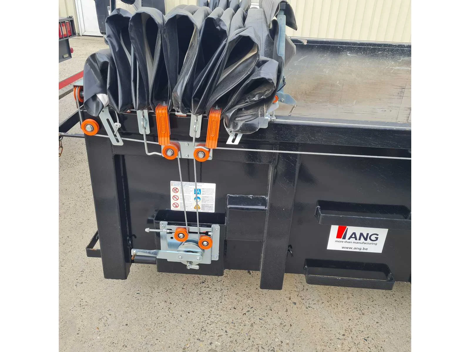 Container van het merk ANG - 5.5x2.3x0.8 - opslag van alu rampen - mechanische klapdeur - 4 ingewerkte sjorogen - camaro afdekzeil - bodem in hardox 450 5mm - zijwanden in hardox 450 4mm - hoeken 90 graden Op de foto’s zijn er alu rampen te zien, maar deze zijn EXCLUSIEF de container! Nee Merk: ANG Totale afmeting L: 5500mm Totale afmeting Breedte: 2300mm Totale afmeting Hoogte: 800mm