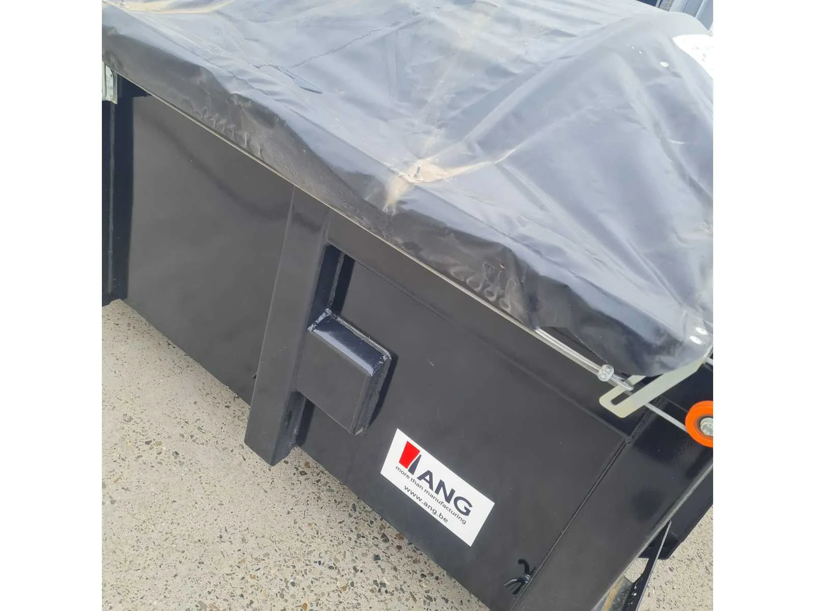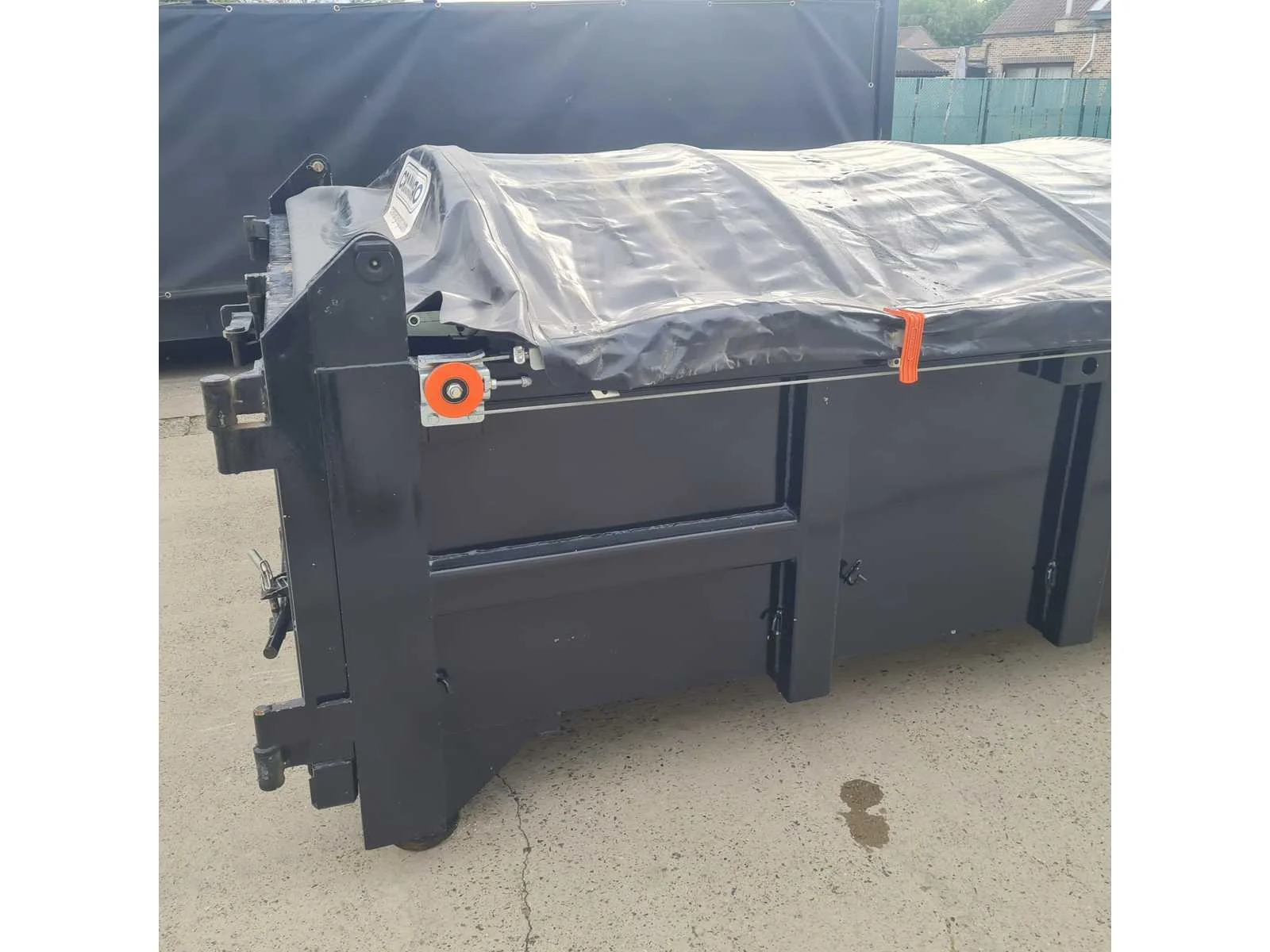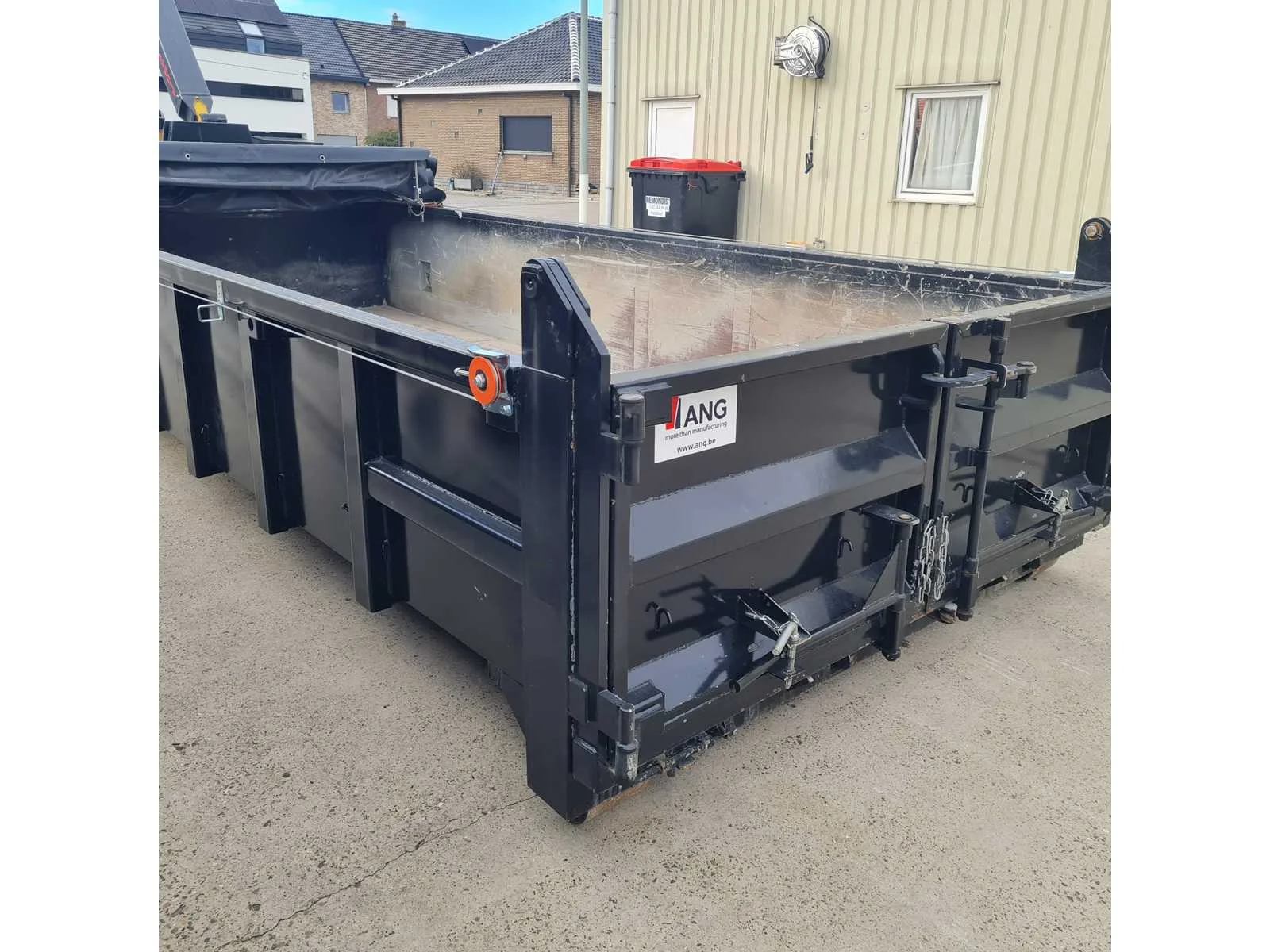 Container van het merk ANG - 5.5x2.3x0.8 - opslag van alu rampen - mechanische klapdeur - 4 ingewerkte sjorogen - camaro afdekzeil - bodem in hardox 450 5mm - zijwanden in hardox 450 4mm - hoeken 90 graden Op de foto’s zijn er alu rampen te zien, maar deze zijn EXCLUSIEF de container! Nee Merk: ANG Totale afmeting L: 5500mm Totale afmeting Breedte: 2300mm Totale afmeting Hoogte: 800mm