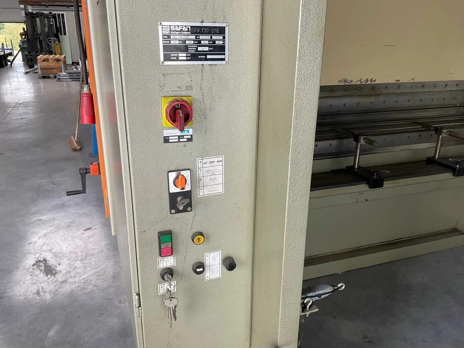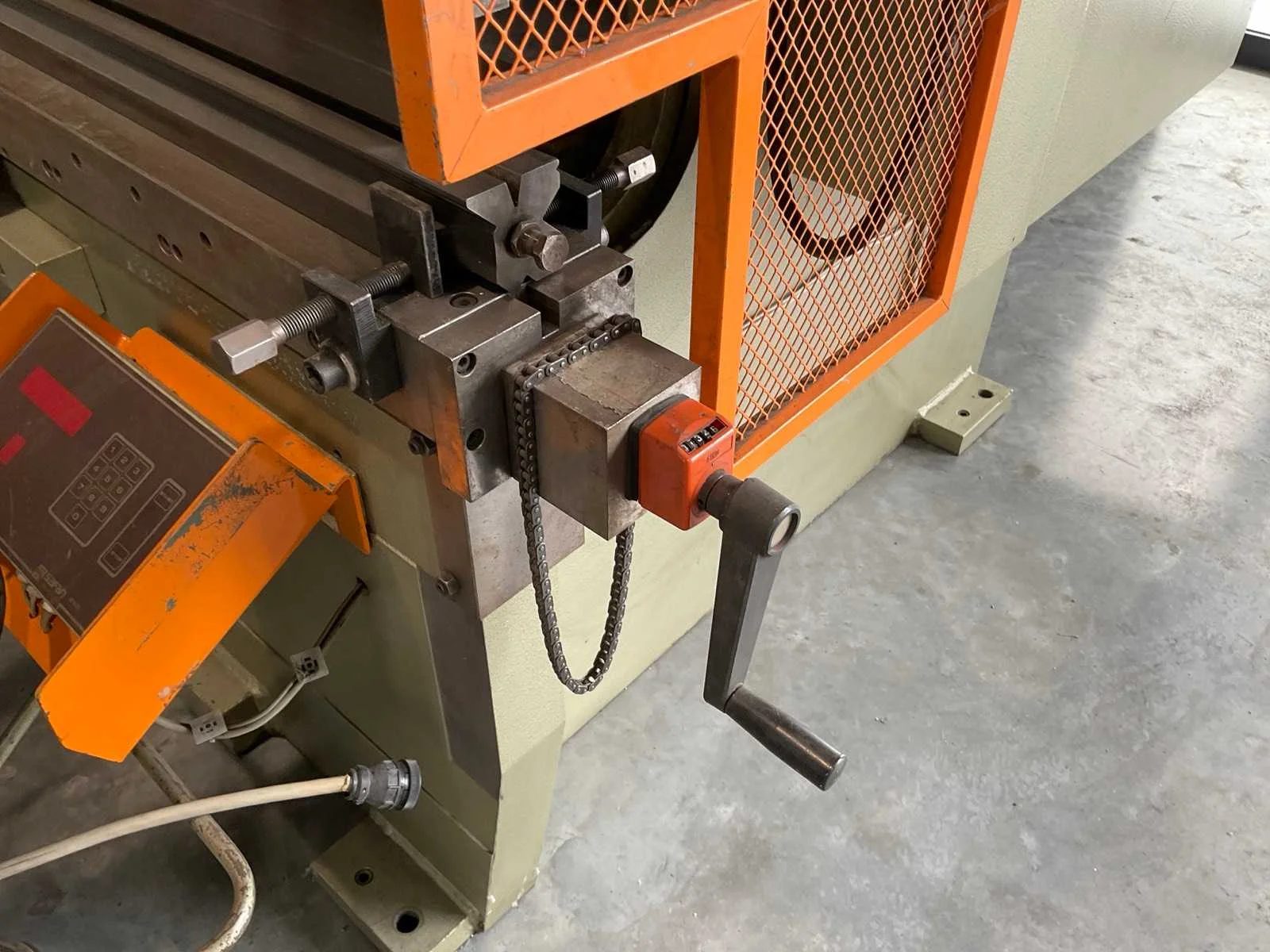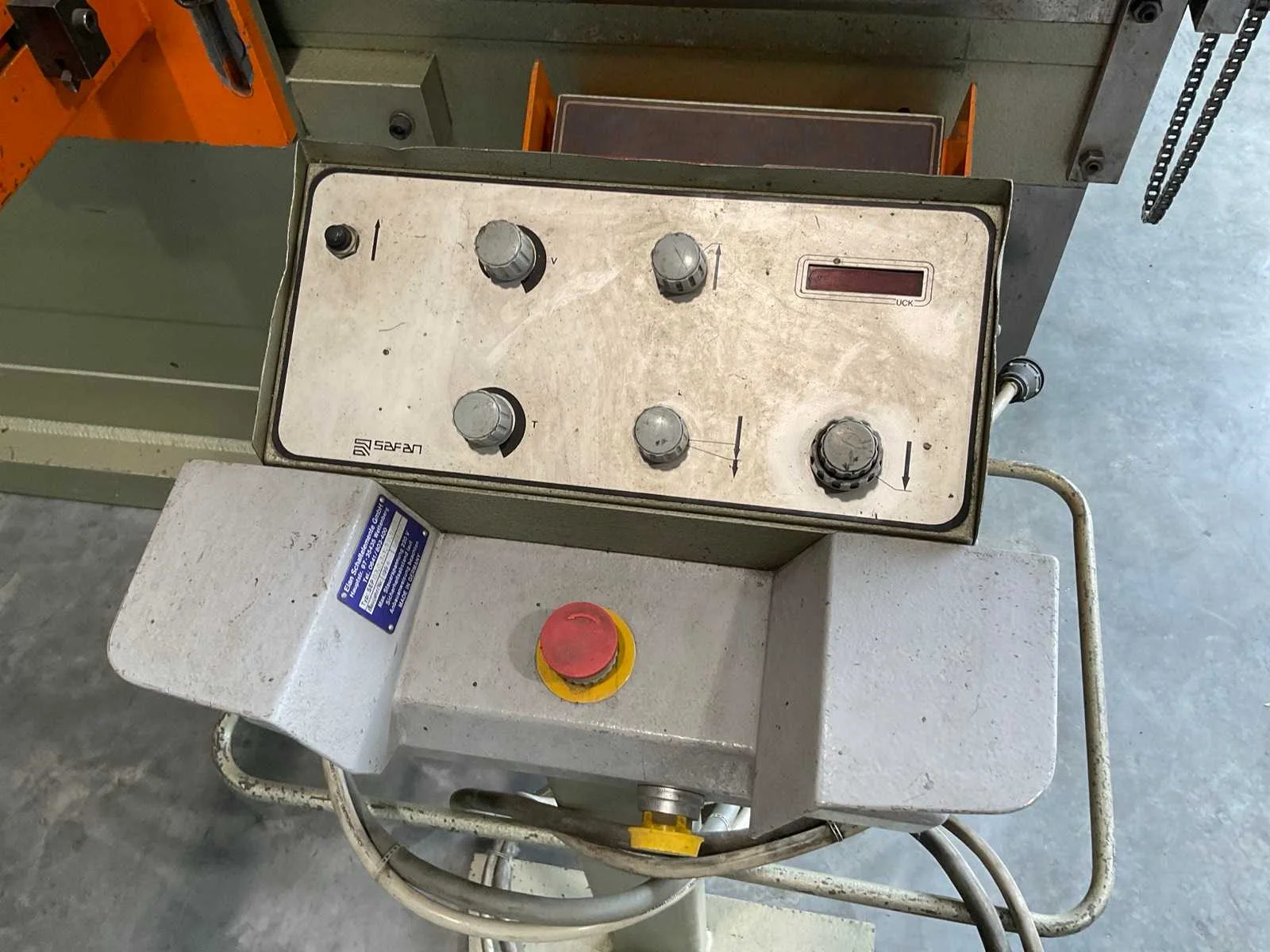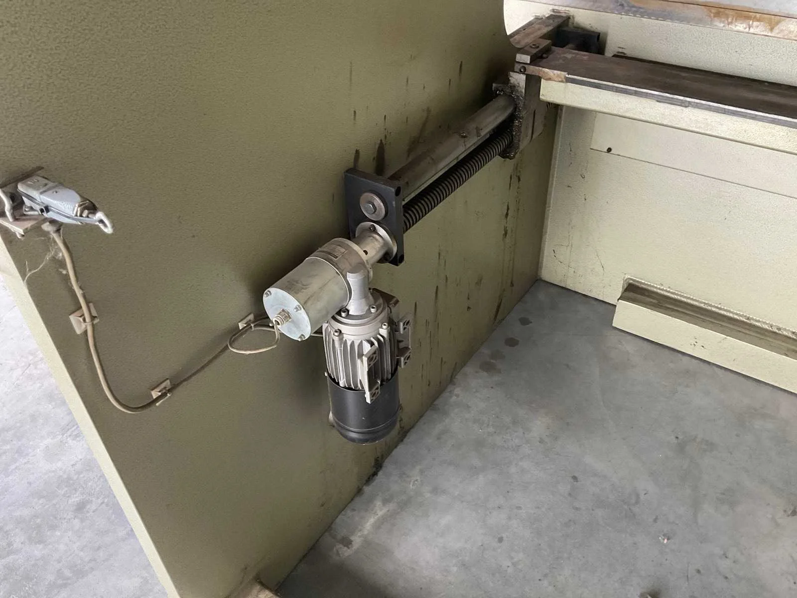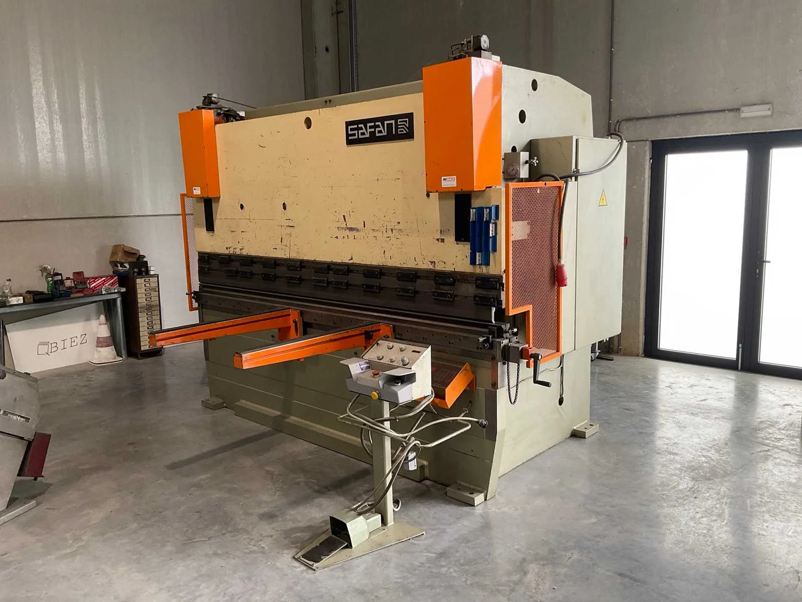 Plooibank , tot lengtes 3100mm dikte plooien 6mm. Werkende staat. Digitale uitlezing en elektrische achteraanslag : incl rechte messenset gemonteerd. Nee Merk: Safan Type: UCK110-3100 Bouwjaar: 1994 Capaciteit.: 110t Elektrisch aangedreven: true Motorvermogen (kW): 7.5kW Aansluiting: 330V Machinegewicht: 8kg Afmeting l: 1700mm Afmeting b: 3300mm Afmeting h: 2550mm Leveringsvoorwaarden: Transport zelf te voorzien , vrachtwagen met kraan .