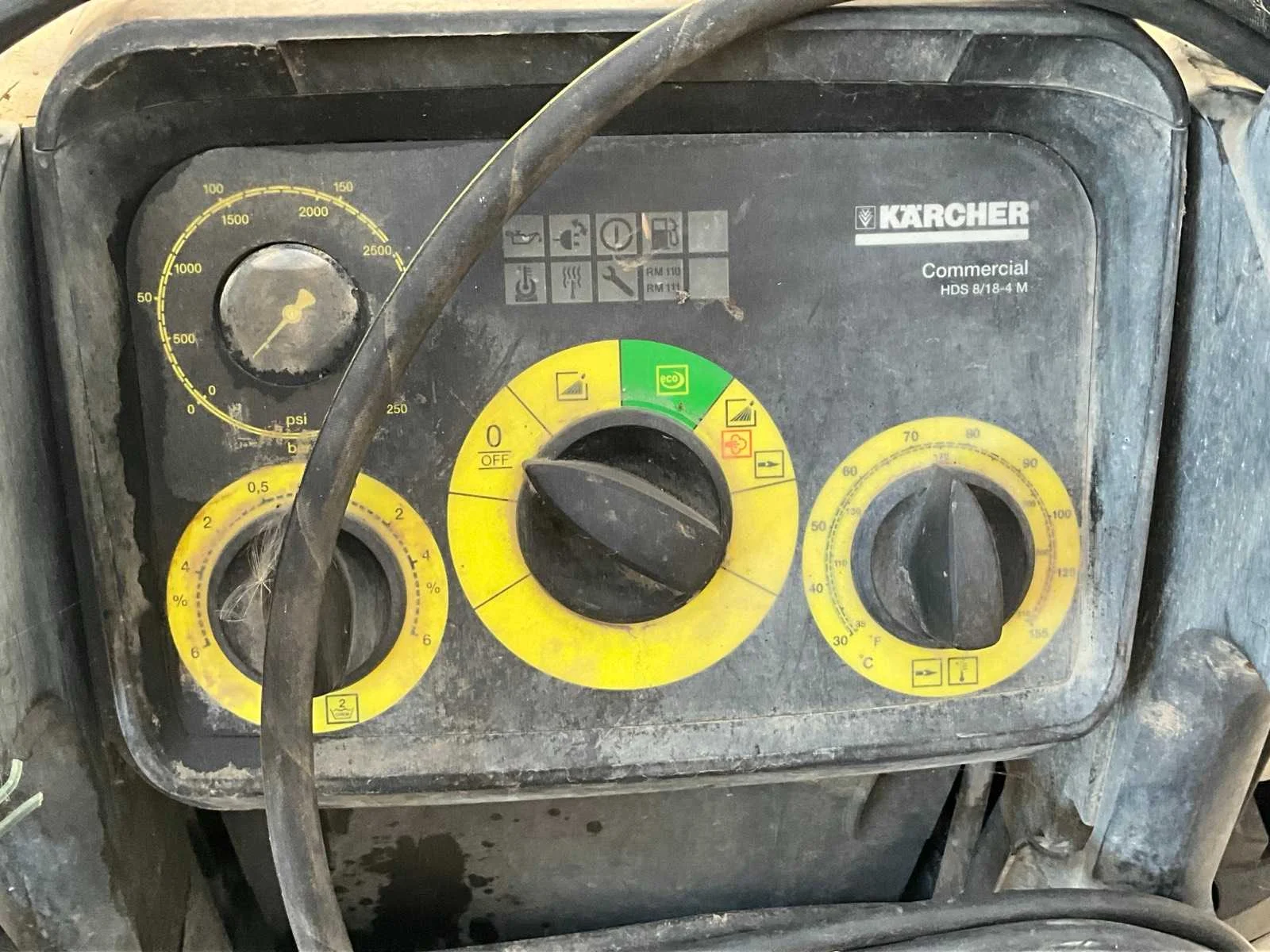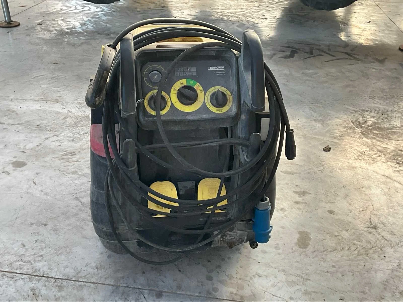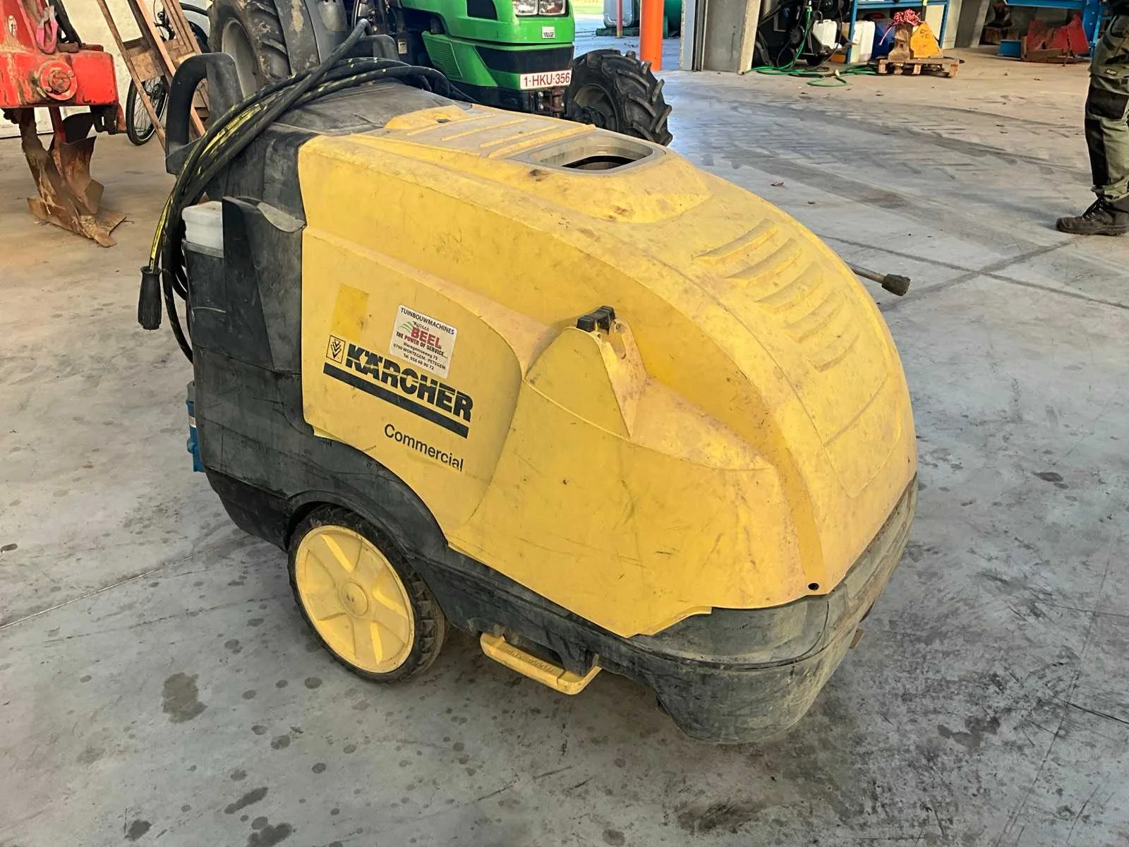 Aandrijving: Elektrisch (380V driefase, meestal bij deze modellen) Druk: 150 – 200 bar (afhankelijk van model) Wateropbrengst: ± 600 – 1.000 liter/uur Temperatuur: tot 80–90 °C (hete stoomfunctie vaak tot 150 °C) Brandstof: diesel of mazout voor de brander (water wordt opgewarmd door ingebouwde brander) Slang & pistool: hogedrukslang aanwezig (zichtbaar op foto), pistool niet volledig zichtbaar Besturing: draaischakelaars voor drukregeling, temperatuur en branderfunctie (foto voorzijde) Wielen: grote achterwielen en handgrepen → verrijdbaar Nee Merk: Kärcher Type: Commercial / Professional