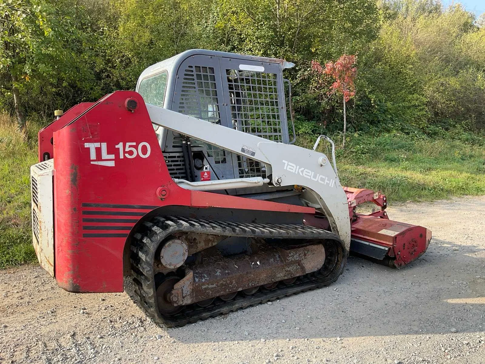 Takeuchi TL 150 Rupslader Inclusief klepelmaaier en grondbak 2m breed Voert alle functies uit ( zie video’s) Rupsen in goede staat Nee Merk: Takeuchi Type: TL150 Bouwjaar: 2003 Merk motor: Yanmar Motorvermogen (kW): 72kW Aantal cilinders: 4 Brandstof: Diesel Afgelezen urenstand: 2444 Eigen gewicht: 5000kg