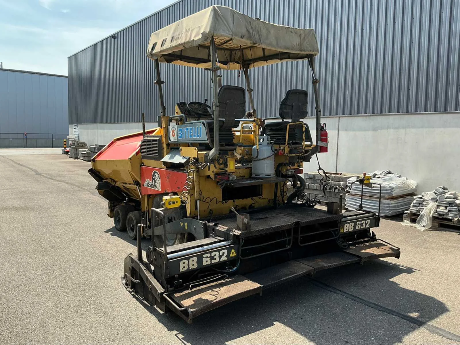 Goed werkende machine! Nee Merk: Bitelli Type: BB632 Bouwjaar: 2000 Serienummer: 000854 Asfalteringsbreedte: 4000mm Asfalteringssnelheid: 12m/min Vultrechtercapaciteit: 3.1m³ Merk motor: Deutz Motorvermogen (kW): 38kW Afgelezen urenstand: 6803 Eigen gewicht: 6150kg Totale afmeting L: 4700mm Totale afmeting Breedte: 2000mm Totale afmeting Hoogte: 2200mm
