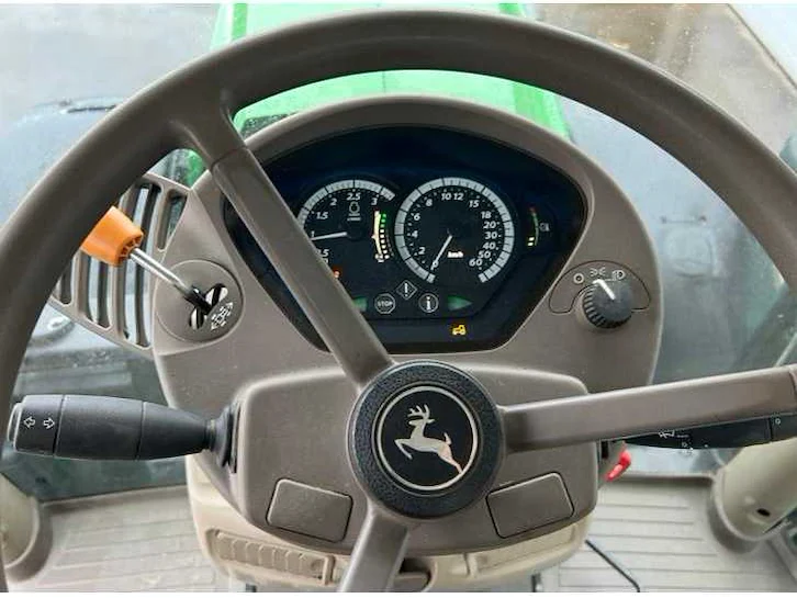 John Deere 6195 R Hefinrichting voor en achter met elektronische bediening PDF voor en achter Extra verdelers: 4DW (4 dubbelwerkend) Banden: Voorzijde: Trelleborg 540/65 R30 Achter: Trelleborg 650/65 R42 Geveerde cabine met verbeterd comfort Airconditioning en verwarming Comfortzitting met multifunctionele armleuning John Deere CommandCenter-display met ISOBUS en geleiding Verstelbaar stuurwiel en digitaal instrumentenpaneel Non Merk: John Deere Type: 6195R Bouwjaar: 2019 Serienummer: 1L06195RCKN939880 Motorvermogen (kW): 195kW Afgelezen urenstand: 7950 Versnellingsbaktype: Quad Fiets Aantal hydraulische ventielen achter: 4 Bandenmaat voor: 540/65 R30 Bandenmaat achter: Trelleborg 650/65 R42