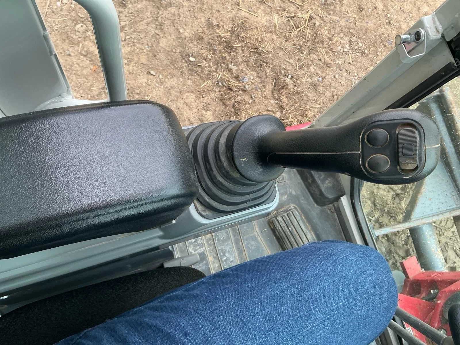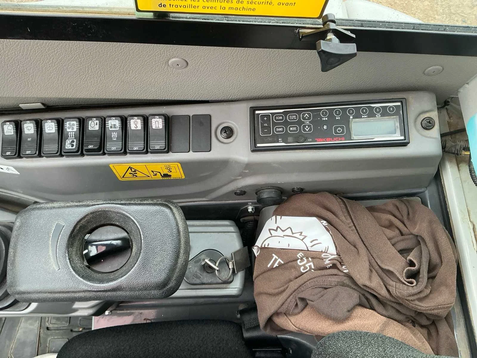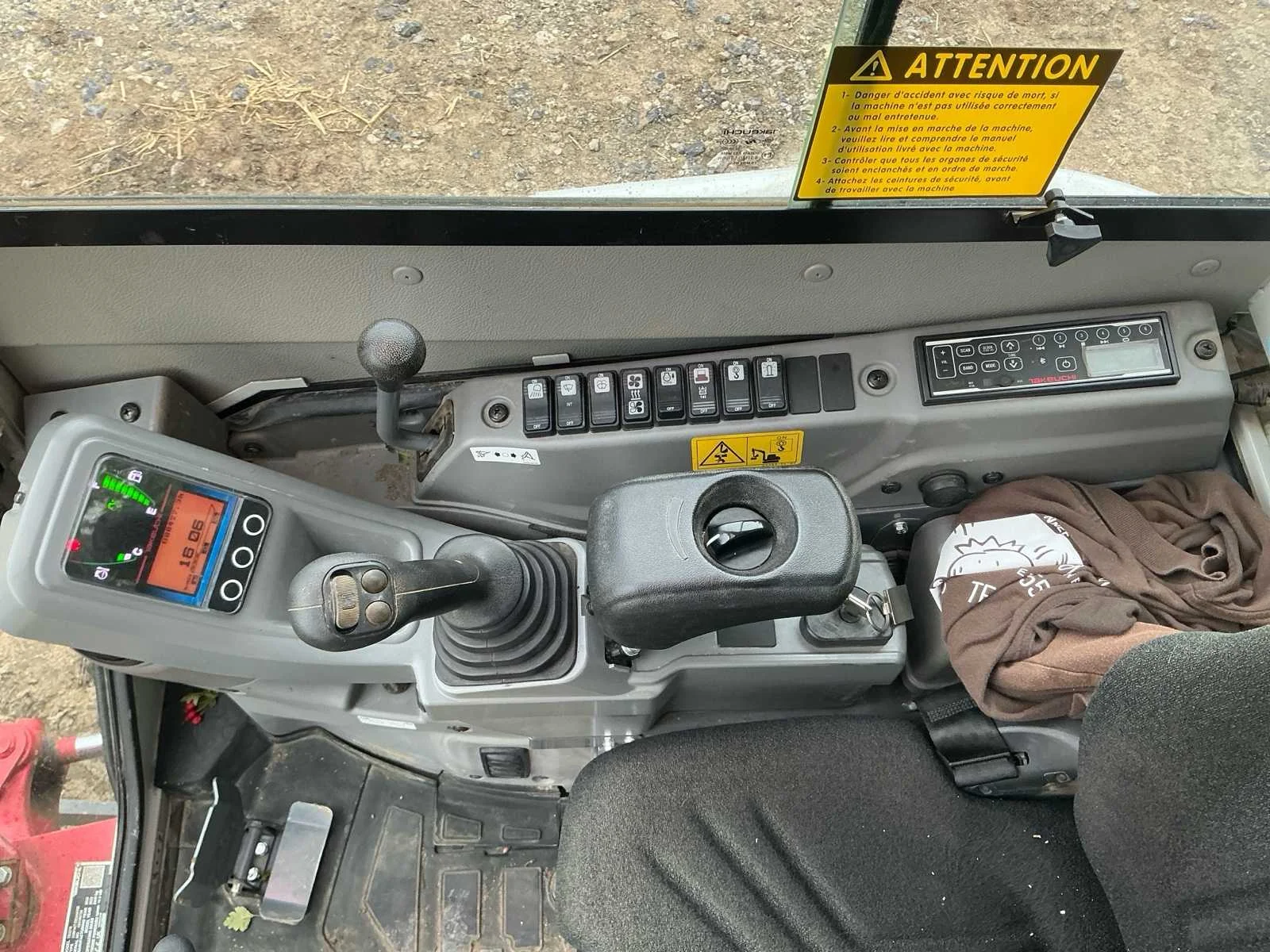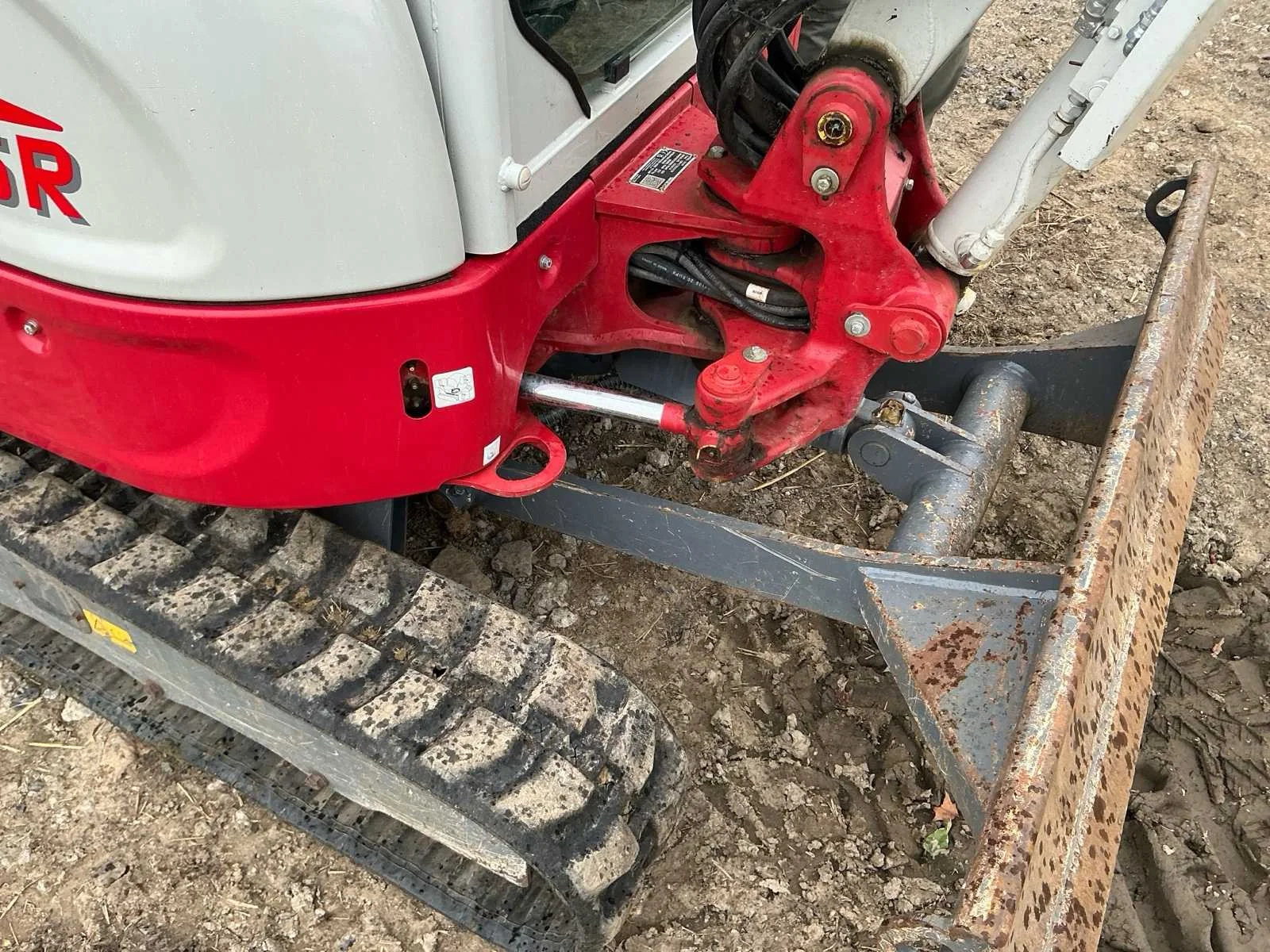 Takeuchi TB325R minigraver, bouwjaar 2022. Uitvoering met binnendraaier-ontwerp voor werken in beperkte ruimtes. Voorzien van: • Proportionele extra hydrauliek (meerdere circuits) • Slangbreukbeveiliging op hef- en armcilinder • Kantelbare voorruit met uitneembaar onderraam • Comfortabele cabine met verstelbare stoel en 3,5” display • Wrap-around contragewicht voor extra stabiliteit • Automatische brandstofontluchting en automatische motordeceleratie Het lot bevat ook de hydraulische boormotor (Auger drive) alsook meerdere graafbakken (Zie foto’s). No Merk: Takeuchi Type: TB325R Bouwjaar: 2022 Serienummer: 123100720 Merk motor: Yanmar 3TNV82A Motorvermogen (kW): 16kW Brandstof: Diesel Bedrijfsgewicht: 2440kg Gieklengte: 4475mm Max. graafdiepte: 2540mm Met graafbak: true Rups breedte: 250mm Cabine: true Afgelezen urenstand: 427 Eigen gewicht: 2440kg Totale afmeting L: 4020mm Totale afmeting Breedte: 1500mm Totale afmeting Hoogte: 2490mm