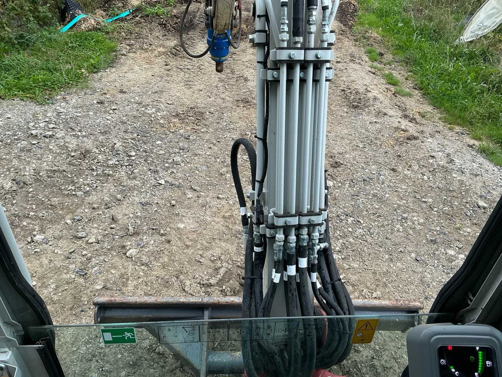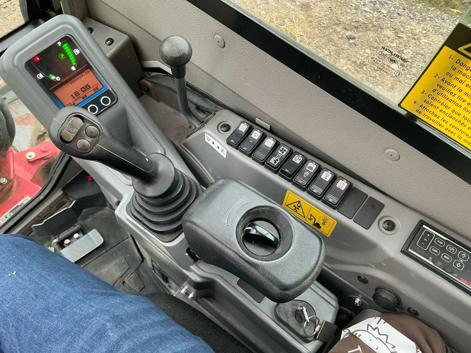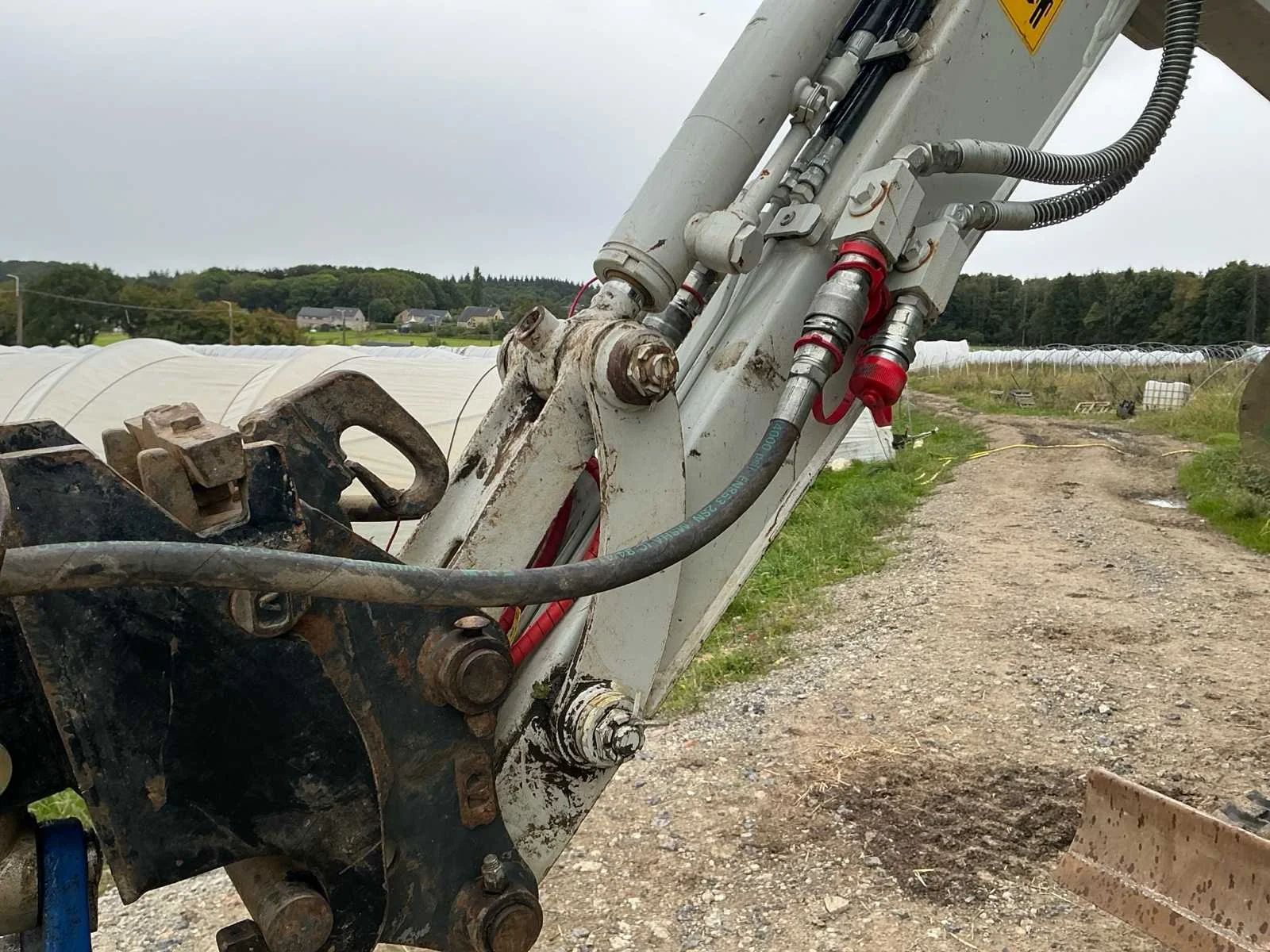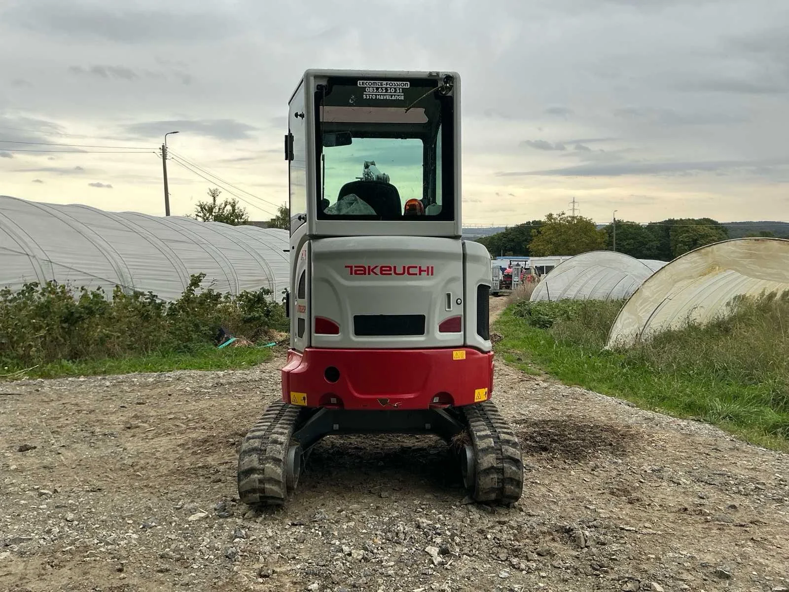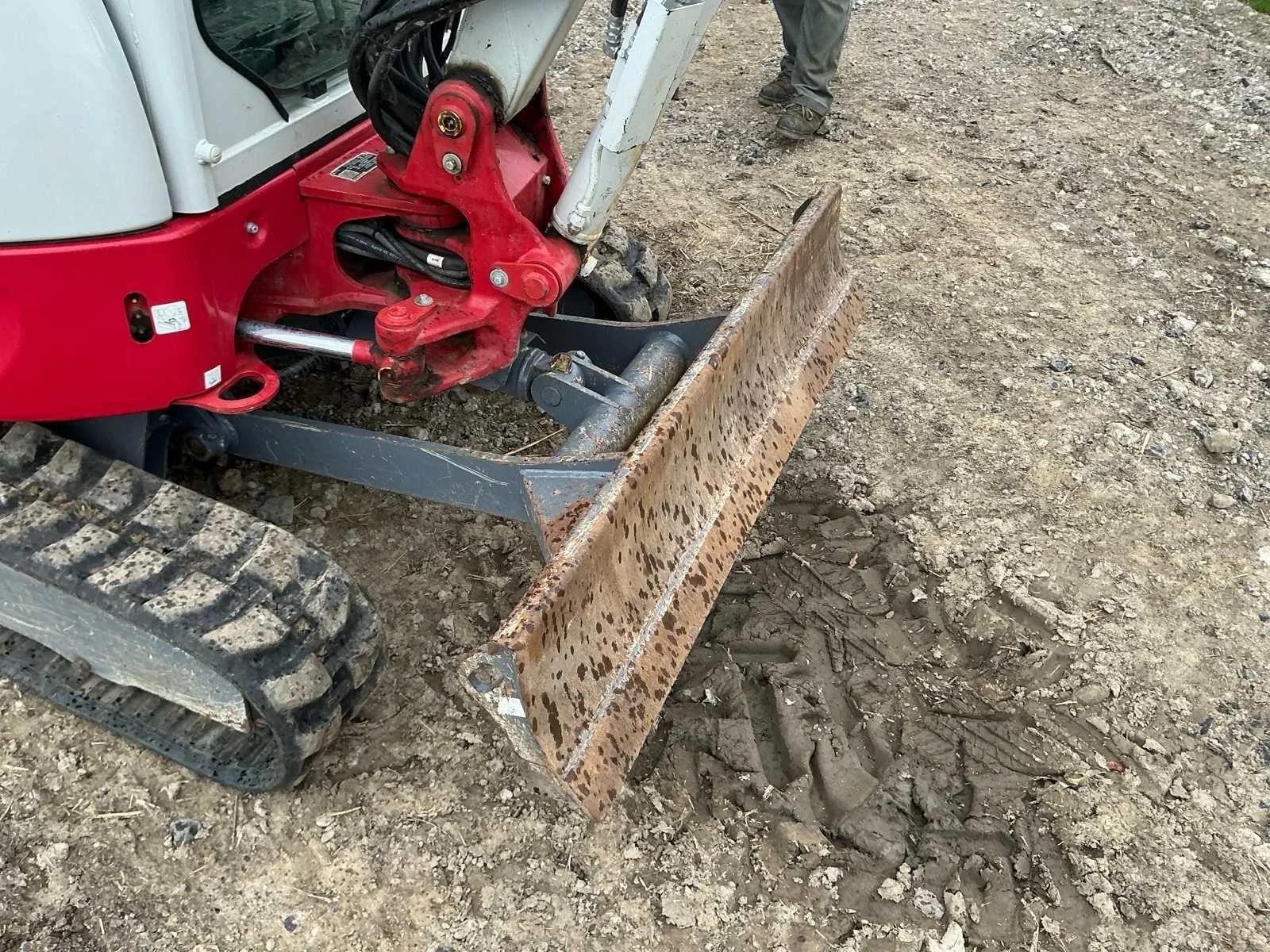 Takeuchi TB325R minigraver, bouwjaar 2022. Uitvoering met binnendraaier-ontwerp voor werken in beperkte ruimtes. Voorzien van: • Proportionele extra hydrauliek (meerdere circuits) • Slangbreukbeveiliging op hef- en armcilinder • Kantelbare voorruit met uitneembaar onderraam • Comfortabele cabine met verstelbare stoel en 3,5” display • Wrap-around contragewicht voor extra stabiliteit • Automatische brandstofontluchting en automatische motordeceleratie Het lot bevat ook de hydraulische boormotor (Auger drive) alsook meerdere graafbakken (Zie foto’s). No Merk: Takeuchi Type: TB325R Bouwjaar: 2022 Serienummer: 123100720 Merk motor: Yanmar 3TNV82A Motorvermogen (kW): 16kW Brandstof: Diesel Bedrijfsgewicht: 2440kg Gieklengte: 4475mm Max. graafdiepte: 2540mm Met graafbak: true Rups breedte: 250mm Cabine: true Afgelezen urenstand: 427 Eigen gewicht: 2440kg Totale afmeting L: 4020mm Totale afmeting Breedte: 1500mm Totale afmeting Hoogte: 2490mm
