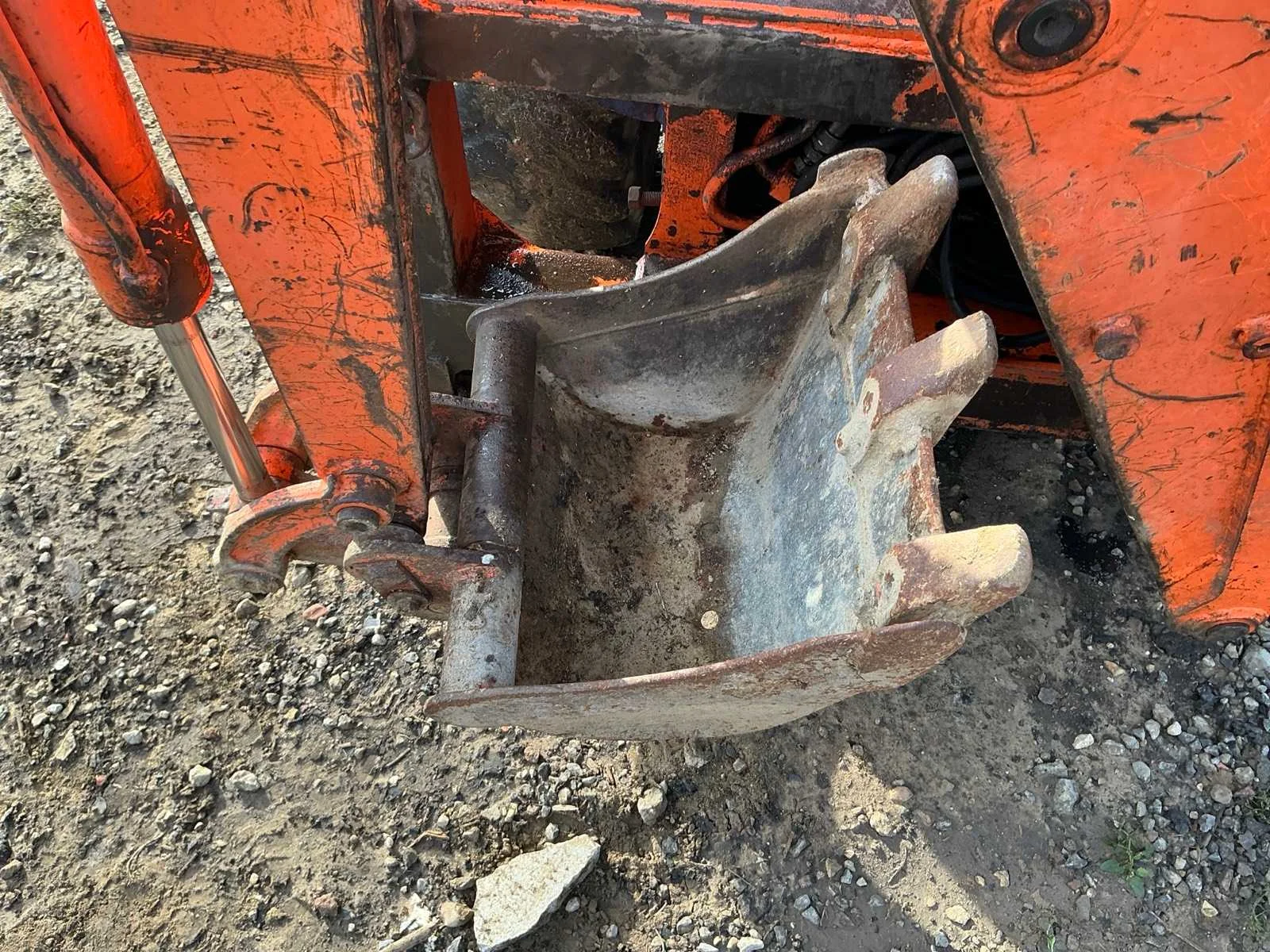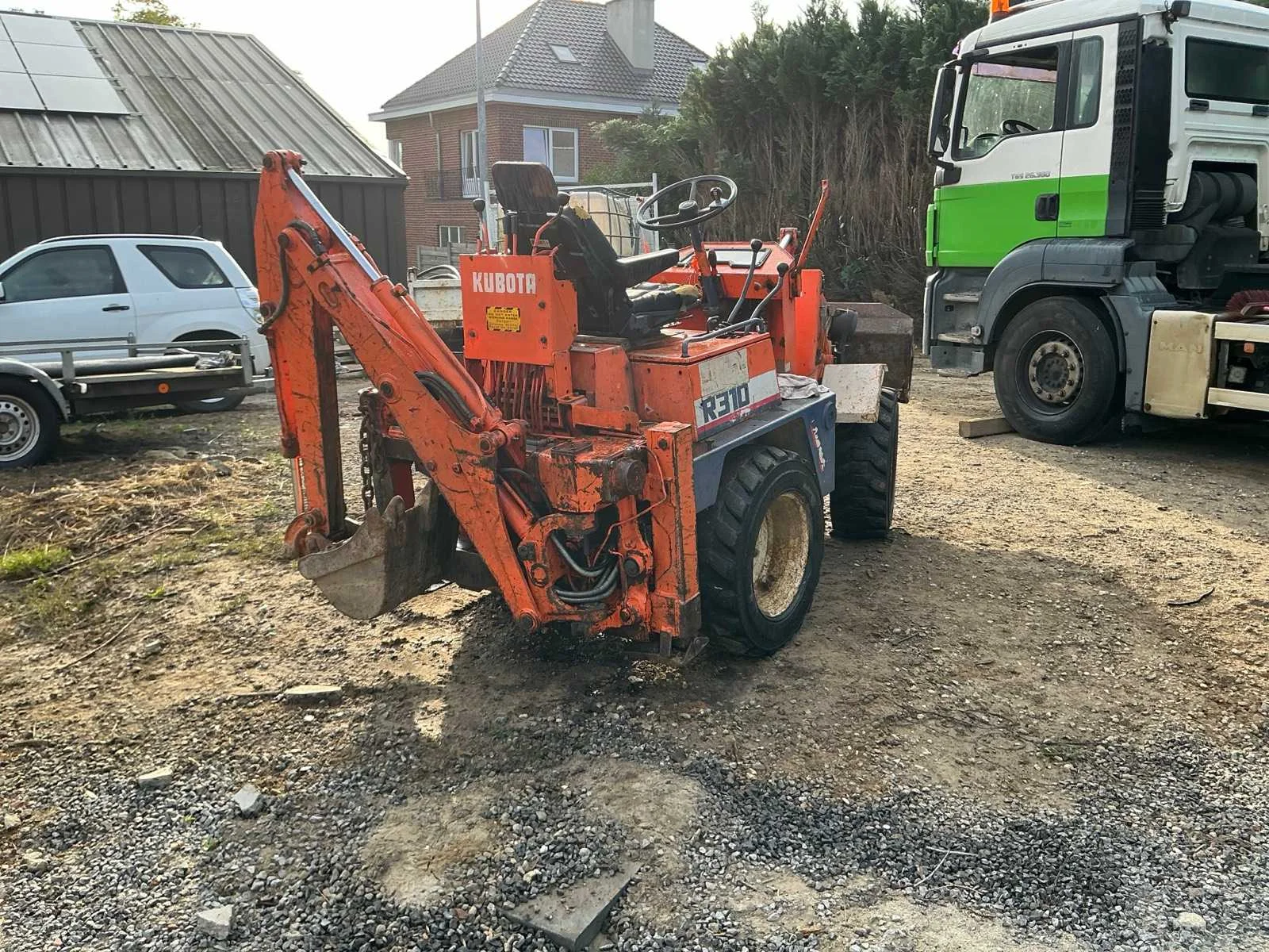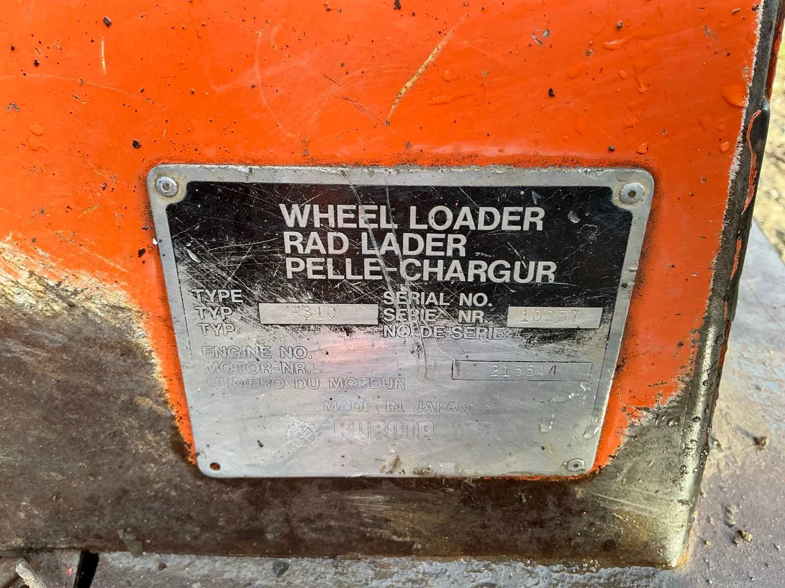 De wiellader bevindt zich in een gebruikte maar werkende staat. Bij deze wiellader zit ook een backhoe (kraan). Motor werd in het verleden vervangen. Hefvermogen voorlader: ca. 600–700 kg • Bakinhoud: ± 0,3 m³ • Hefhoogte (scharnierpunt): ± 2,3–2,5 m • Graafdiepte achterarm: ± 2,2–2,5 m • Transmissie: hydrostatisch, 4x4-aandrijving • Snelheid: tot ± 15 km/u • Afmetingen: lengte ± 3,5 m, breedte ± 1,5 m, hoogte ± 2,2 m De wiellader komt ook met een extra vork. Nee Merk: Kubota Type: R310 met backhoe Serienummer: 10257 Brandstof: Diesel Afgelezen urenstand: 3212 Eigen gewicht: 3000kg Totale afmeting Breedte: 1500mm Totale afmeting Hoogte: 2200mm