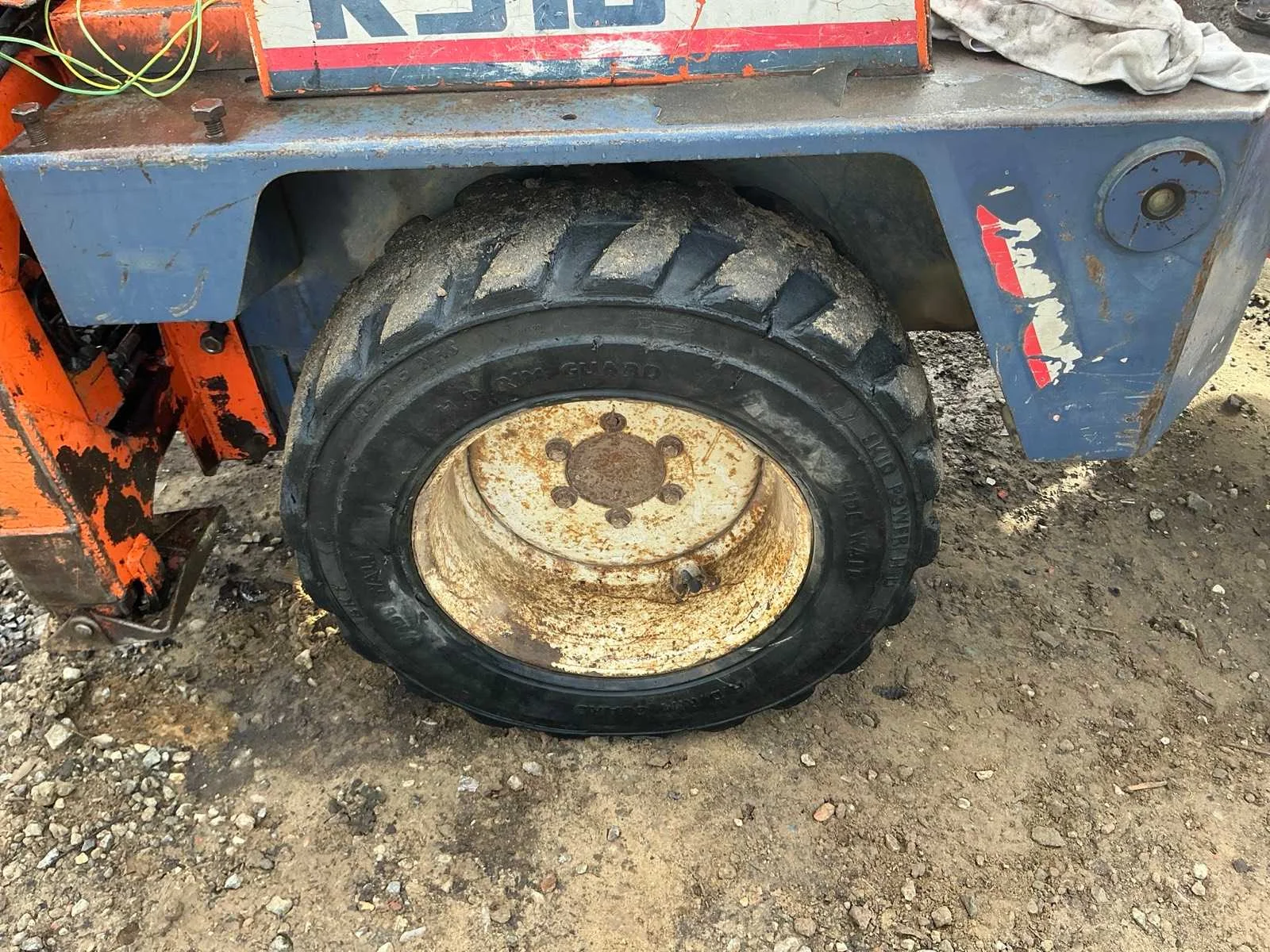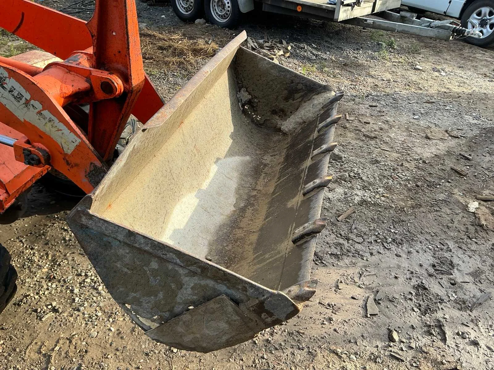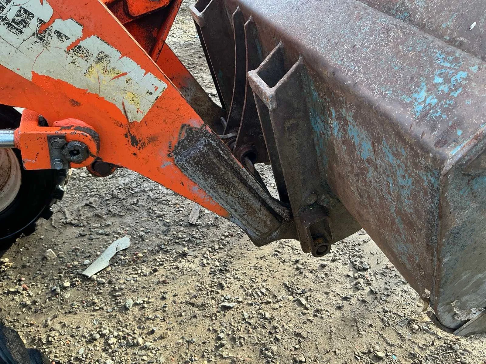 De wiellader bevindt zich in een gebruikte maar werkende staat. Bij deze wiellader zit ook een backhoe (kraan). Motor werd in het verleden vervangen. Hefvermogen voorlader: ca. 600–700 kg • Bakinhoud: ± 0,3 m³ • Hefhoogte (scharnierpunt): ± 2,3–2,5 m • Graafdiepte achterarm: ± 2,2–2,5 m • Transmissie: hydrostatisch, 4x4-aandrijving • Snelheid: tot ± 15 km/u • Afmetingen: lengte ± 3,5 m, breedte ± 1,5 m, hoogte ± 2,2 m De wiellader komt ook met een extra vork. Nee Merk: Kubota Type: R310 met backhoe Serienummer: 10257 Brandstof: Diesel Afgelezen urenstand: 3212 Eigen gewicht: 3000kg Totale afmeting Breedte: 1500mm Totale afmeting Hoogte: 2200mm