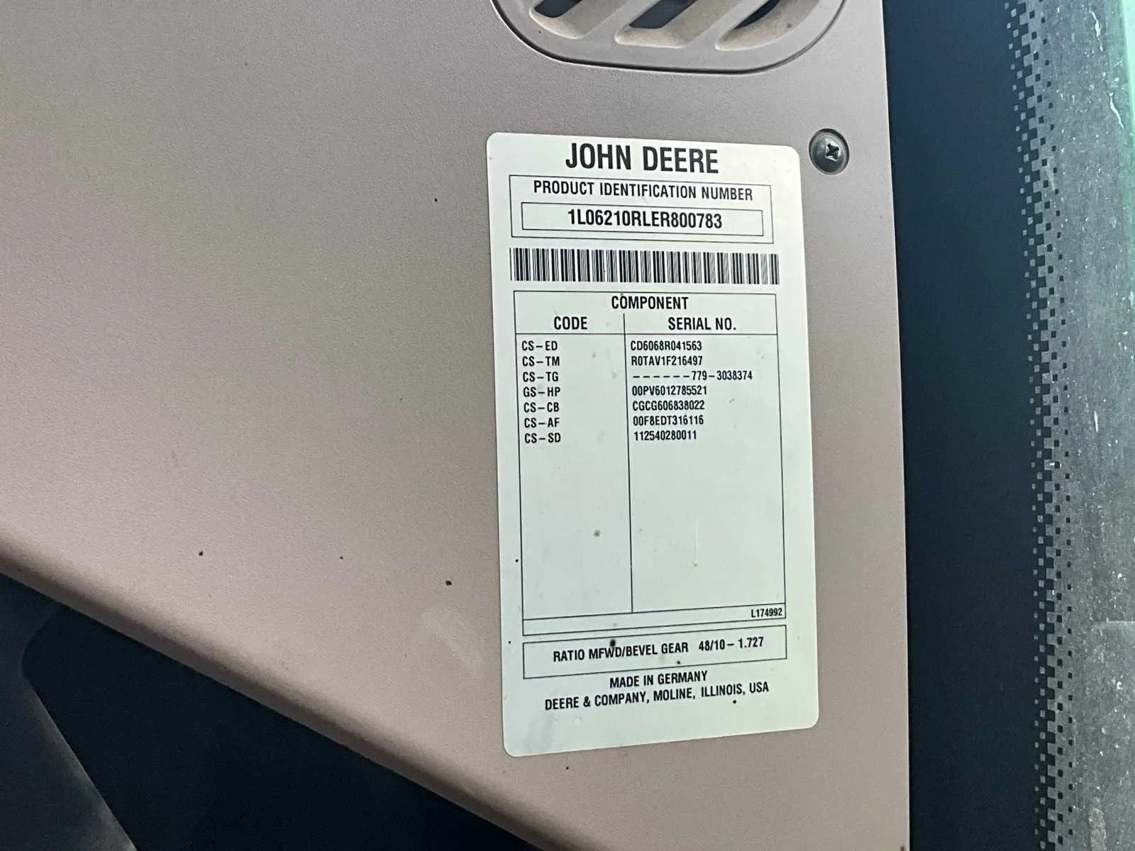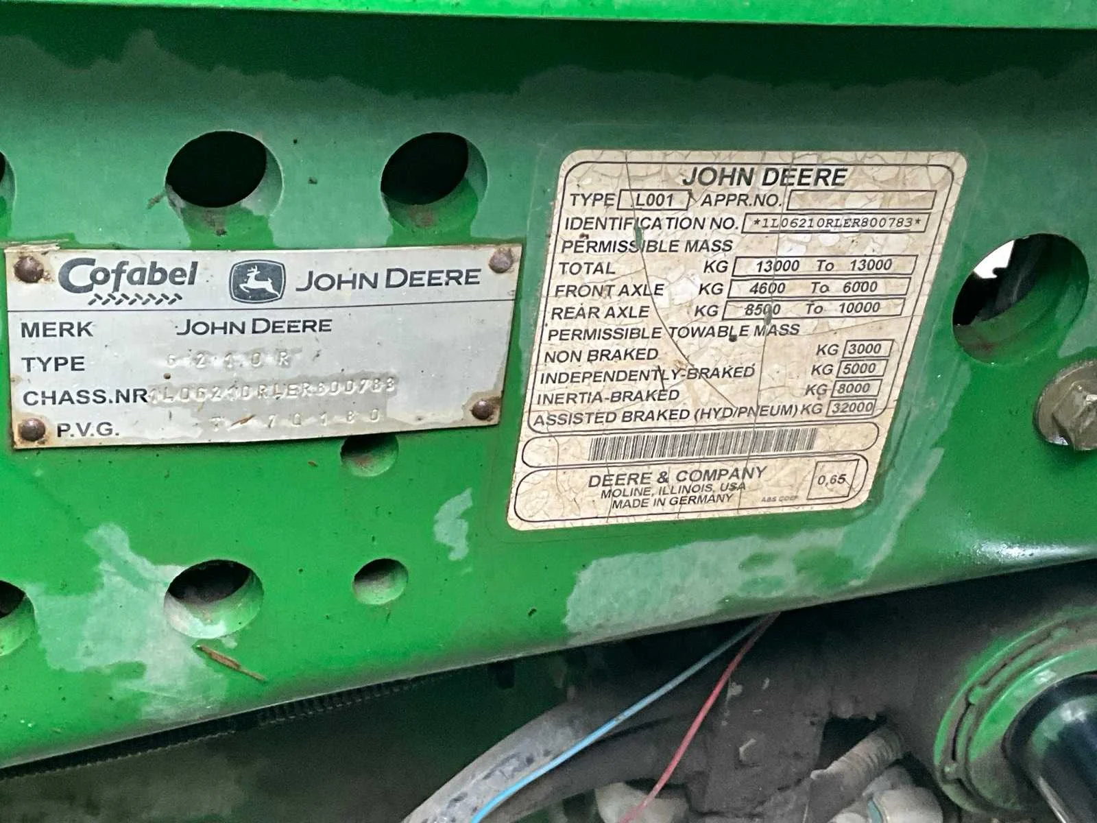 Volledig onderhoud uitgevoerd om 9359 uur Nieuwe turbo gewijzigd naar 9600 uur Autotrakrediet SFE Greenstar3000 Isobus Belasting afhankelijk Elektro-hydraulische regelventielen Rechtstreekse telefoontjes Non Merk: John Deere Type: 6210r Bouwjaar: 2014 Serienummer: 1L06210RLER800783 Motorvermogen (kW): 154kW Afgelezen urenstand: 9742 Versnellingsbaktype: Automatisch vermogen 50 km/u Fronthefinrichting: true Frontaftakas: true Cabine: true Luchtgeveerde stoel: true Eigen gewicht: 13000kg Kentekenpapieren compleet?: true Chassisnummer: 1L06210RLER800783