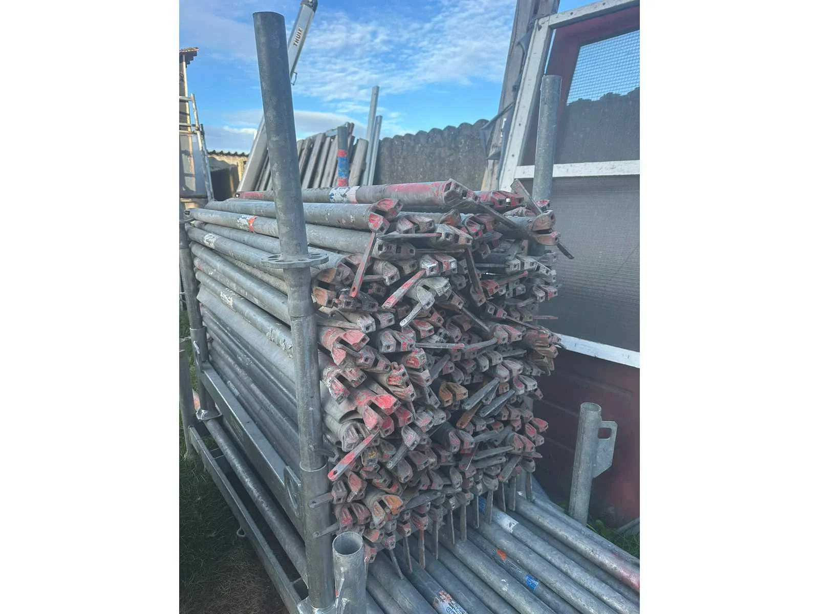Partij van circa 190 gebruikte stalen liggers van het merk Altrad, geschikt voor het Layher-compatibele steigersysteem. Lengte van elke ligger is ca. 1,40 meter. De liggers zijn voorzien van klauwkoppen met rozetvergrendeling. Ideaal voor uitbreiding of aanvulling van bestaande steigerinstallaties. Specificaties: Type: Ligger met rozetkop (Layher-compatibel) Merk: Altrad Aantal: ca. 190 stuks Lengte: ca. 1,40 meter per stuk Materiaal: Verzinkt staal Staat: Gebruikt, met zichtbare gebruikssporen en verfresten, functioneel bruikbaar. Nee Merk: Altrad