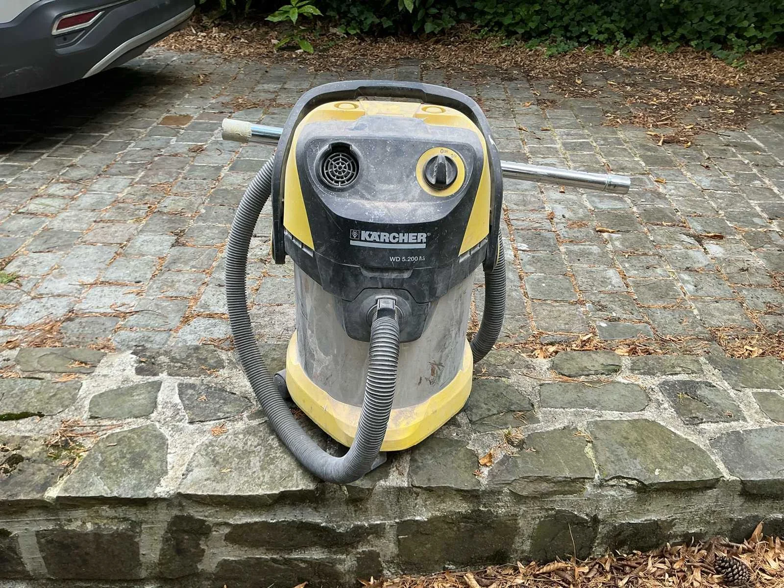 Industriële stofzuiger in gebruikte staat Werking te controleren. 220V No Merk: Karcher Model: WD 5200M Kleur: Geel